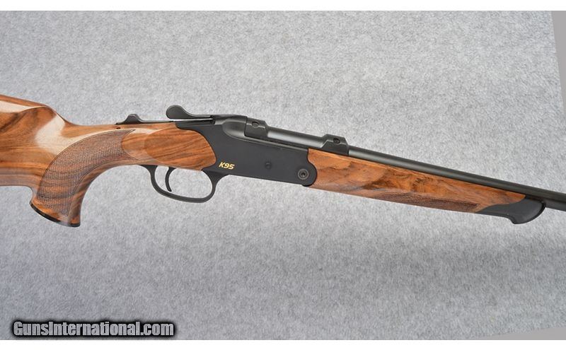 Description: Factory New with Makers Case. K95 SINGLE SHOT RIFLE Your target: one shot Elegant, huntable, accurate Blaser's K95 single shot rifle has proven itself in demanding hunting situations for decades. Then, as now, it embodies hunting in its most elemental form. Its harmonious design and compact shape make it a particular pleasure to use wherever you are hunting. ACCURATE Blaser precision trigger Its excellent crisp quality is a prerequisite for an accurate shot. MANUAL COCKING SYSTEM Regarded as one of the best cocking systems in the world, no conventional safety catch can offer the level of safety guaranteed by an uncocked firing pin. The K95 is manually cocked just before the shot is taken. If no shot is fired, the firing pin spring is decocked by pulling back the cocking lever. LIGHT AND EASY TO HANDLE As compact as possible, the K95 is the perfect rifle for physically demanding hunting. It is ready to fire in seconds and extremely accurate. K95 exchangeable barrels are available in numerous calibers and different versions so that it is easy to set up this versatile rifle for a wide variety of challenges. Once zeroed, every barrel fits and allows you to hit your target effortlessly. .308 Winchester SOLD Metal Condition: Matte Blue Finish Wood Condition: "Capped Pistol Grip w/ Bavarian Cheek, Grade 4 Wood Barrels: 24 Inch Stock Dimensions: 14 3/8" LOP Fore End: Schnabel Butt Pad: Blaser Recoil Pad Weight: 6 lbs. 1 oz. Sights: "No Sights, 30 mm Rings with Quick-Detach Mounts"" Item Location: Buda, TX |