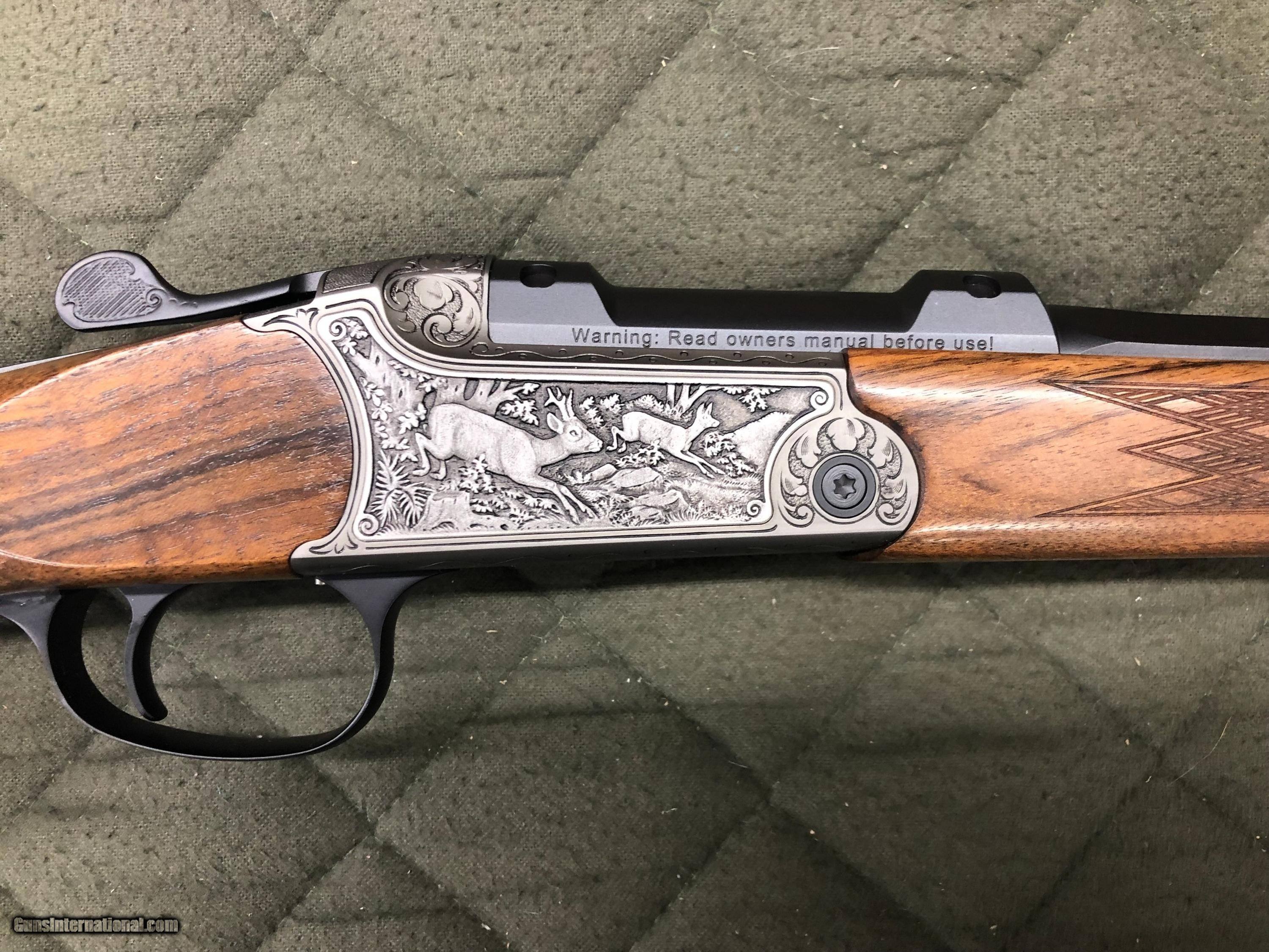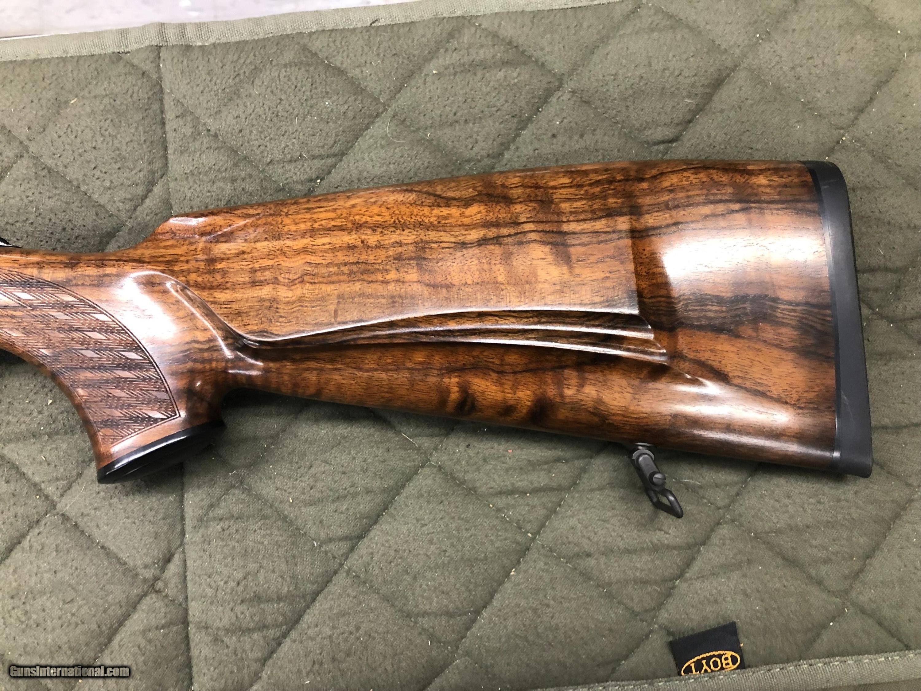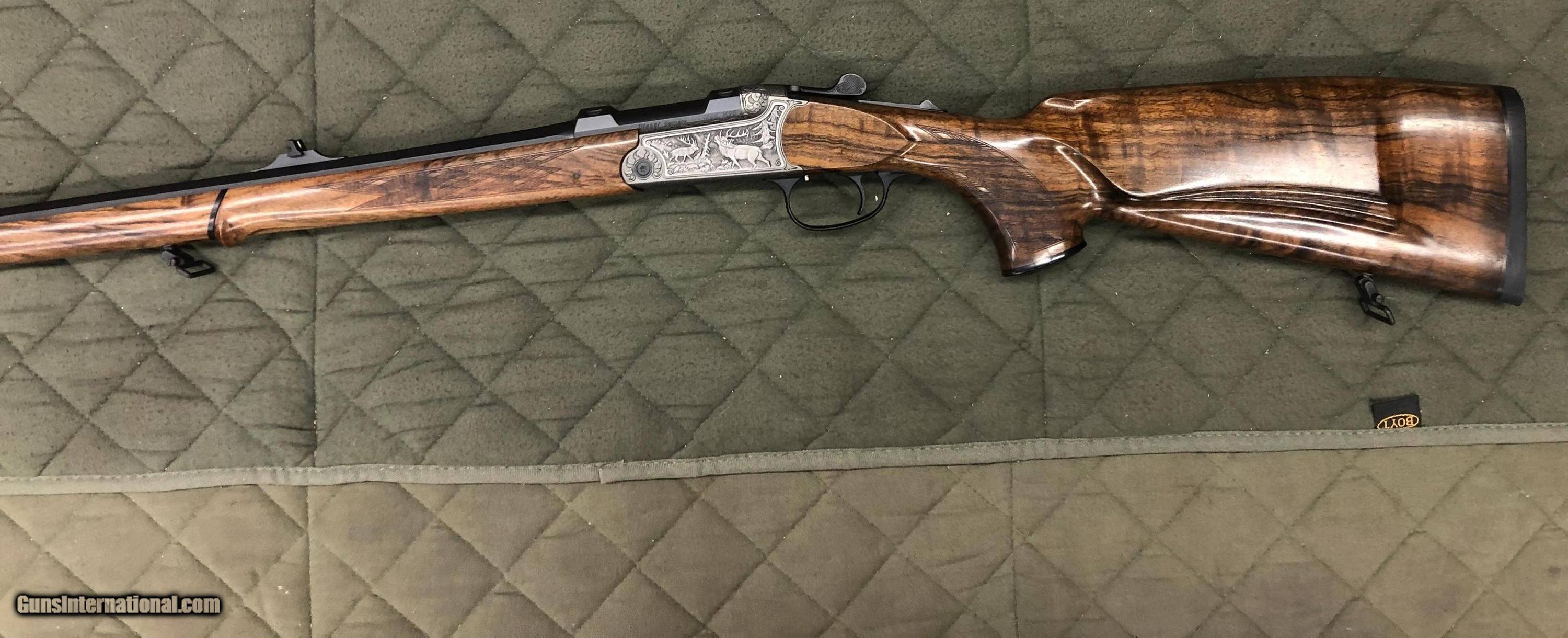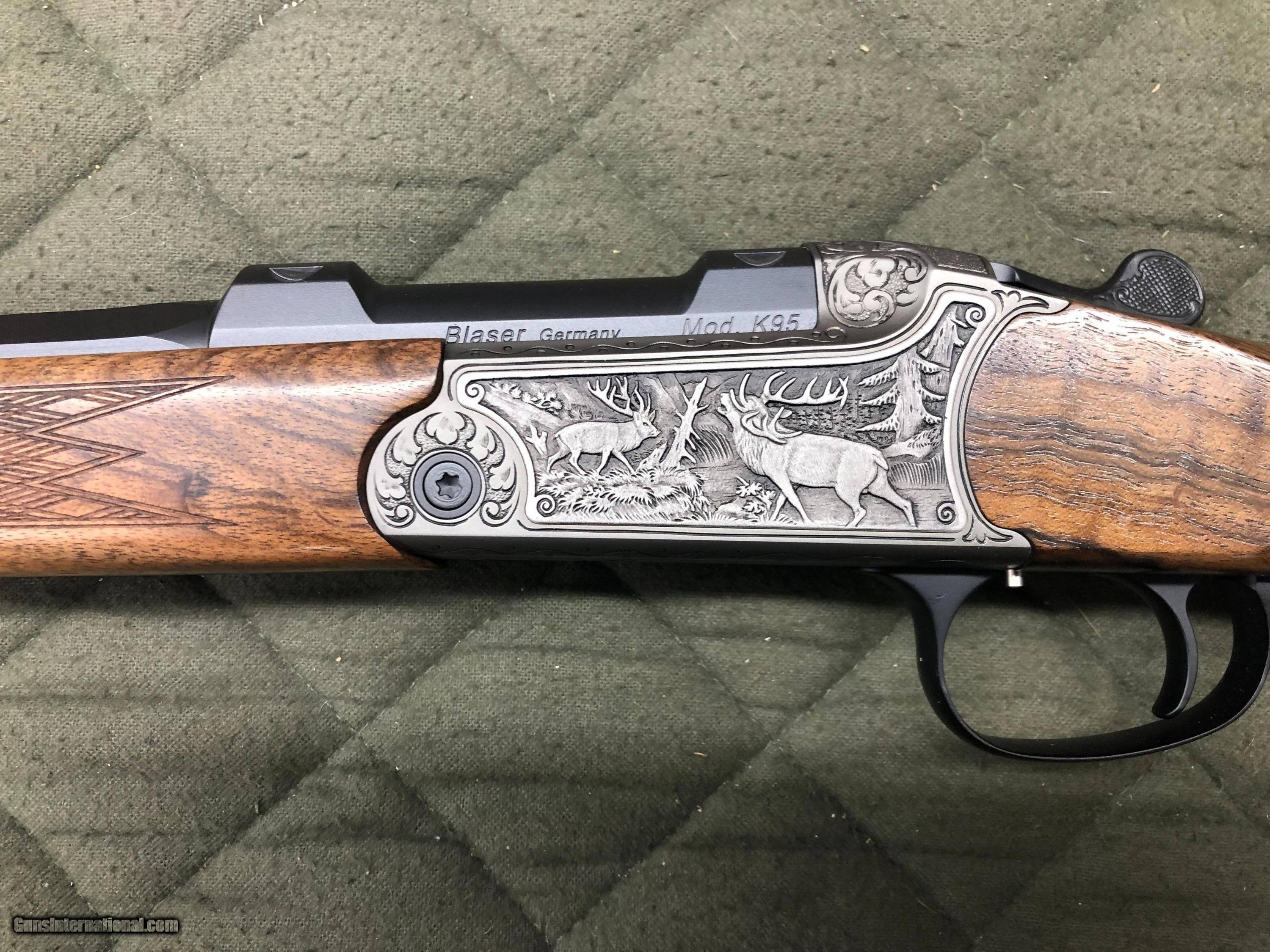 Description: Unfired Blaser K95 Stutzen 270 win,engraved side plates with Elk and Roe Deer,beautiful wood,cheek piece,sling swivels,octagon 20"bbl with sights,rubber butt pad.1" scope mount included SOLD Rifle Caliber: .270 Winchester Manufacturer: Blaser Model: K95 Barrel Length: 20 |