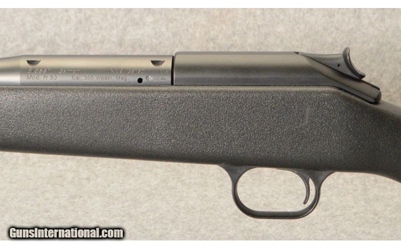 Description: Straight-Pull Action ! SOLD Manufacturer: 2006 Caliber Info: .300 Weatherby Magnum Chambers: 3-round blind magazine Metal Condition: Excellent Bore Condition: Excellent Barrels: 25 Triggers: Factory Stock: Composite pistol grip Stock Dimensions: 14" LOP Fore End: Schnabel Butt Pad: Decelerator recoil pad Weight: 7 lb Sights: None, integrated scope mounting points Extras: No Box. Made in Germany. Item Location: Garner, NC |