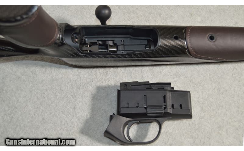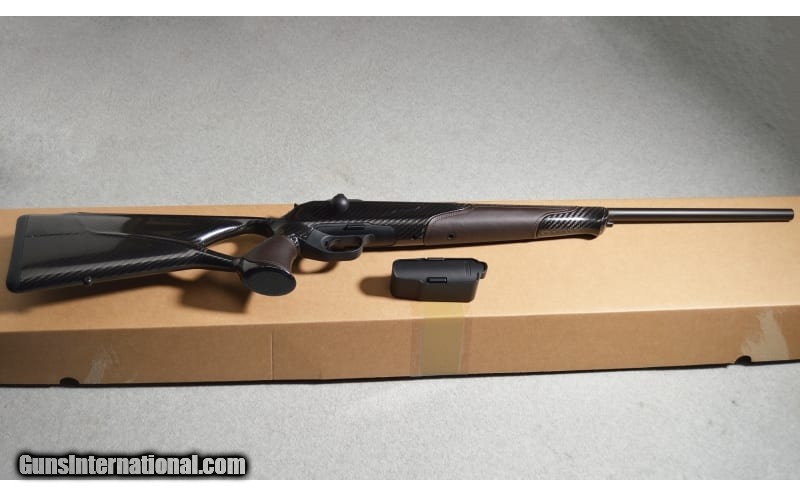 Description: NEW with BOX Blaser R8 Carbon SUCCESS straight pull rifle in .223 Remington. Composed of carbon fiber and accented with walnut brown leather, the thumbhole stock makes for a lively pointer. In the interest of the utmost safety, the trigger assembly and magazine are combined in one, easily removable unit. Removal of the magazine, thereby, renders the R8 mechanically unable of discharge. .223 Remington SOLD Metal Condition: Factory New Wood Condition: Factory New Bore Condition: Factory New Barrels: 23 Inches Triggers: Smooth Face Stock Dimensions: 14.75" LOP Fore End: Carbon Fiber stock with Porsche leather accents Butt Pad: Rubber recoil pad Weight: 7 lbs Sights: None Item Location: Fort Worth, TX |