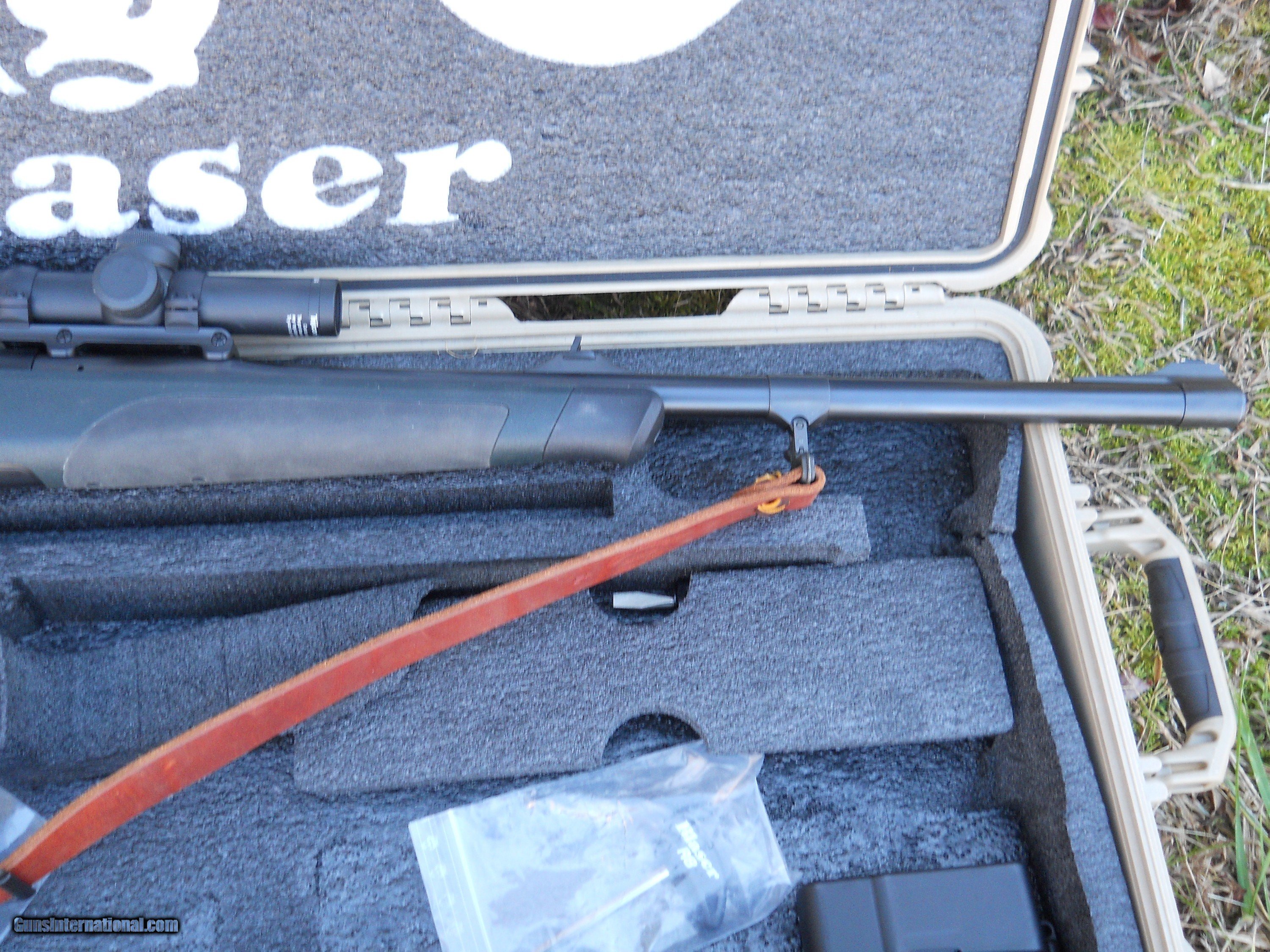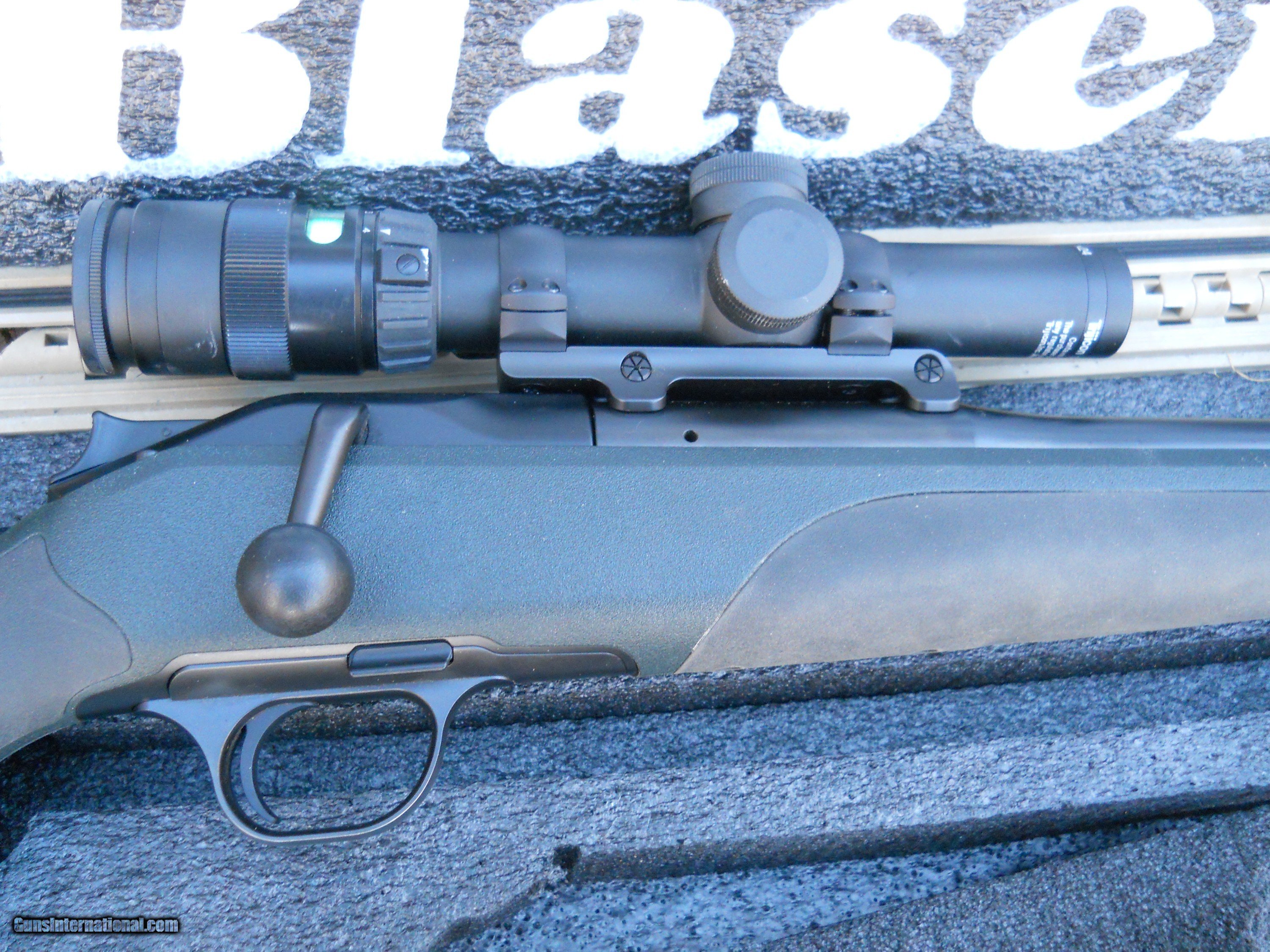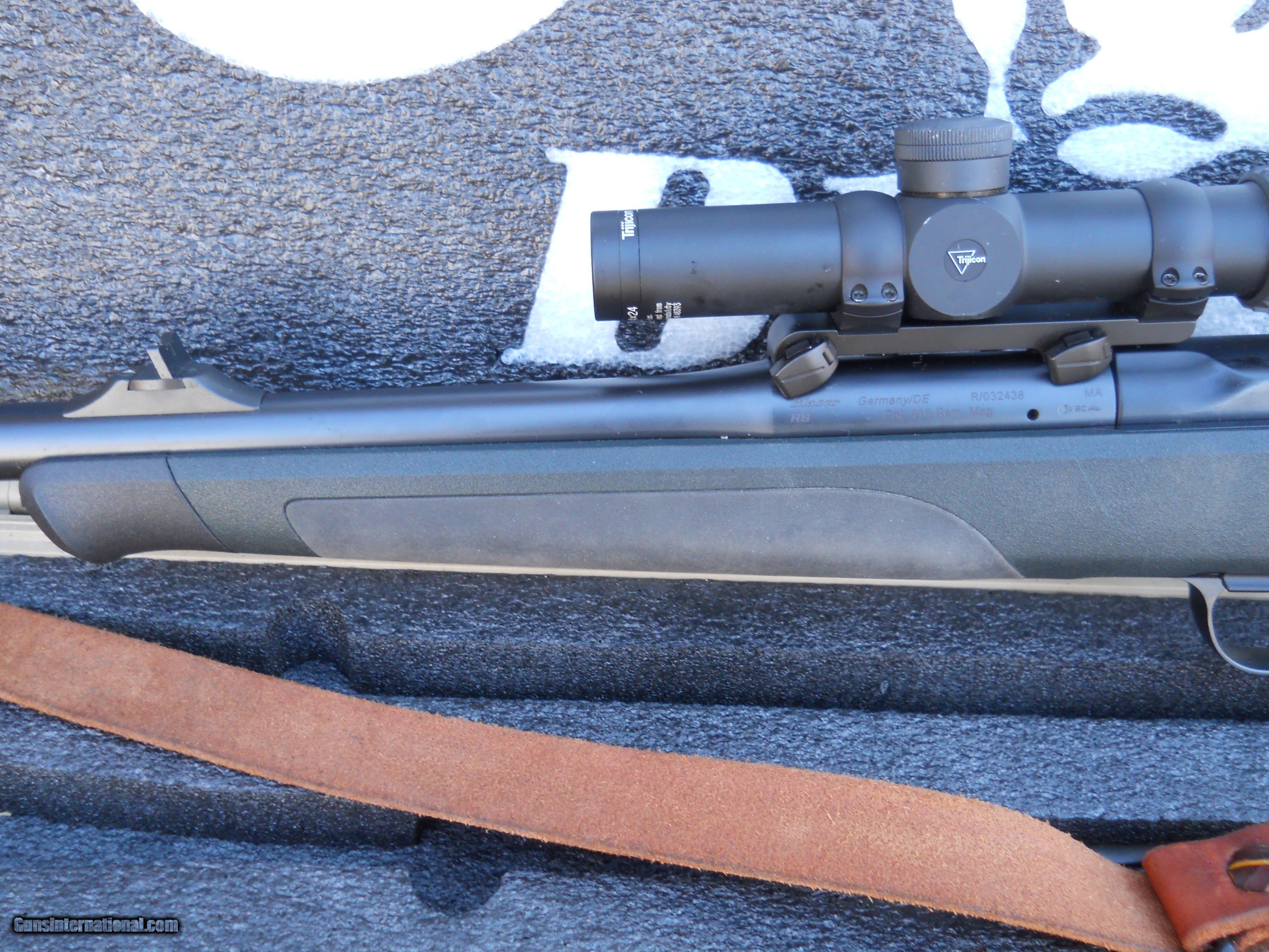 Description: Blaser 416 Remington Magnum. It comes with a Trijicon, 1-4x24 30 mm scope, with Europtic rings and base. This also includes a Pelicon (Blaser) hard case. This rifle is used with very minimal handling marks. If you are interested in 416 ammo, I have several boxes that would be seperate from the rifle price. ( $70.00 shipping charge) New lower price....$6,000.00 SOLD |