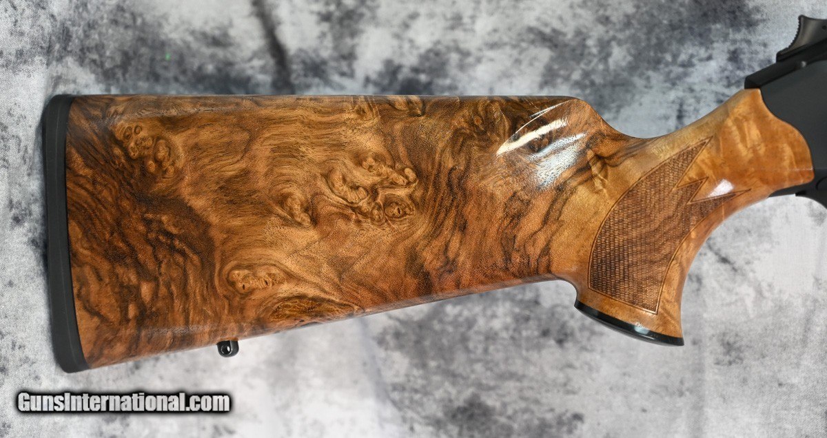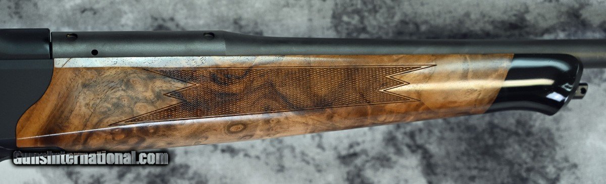 Description: New Blaser R8 Jaeger 30.06 Springfield. Features standard taper 23" barrel with Blaser B2 2.5-15x56 IC S scope and scope mounts. Barrels are interchangeable with other R8 models. Straight pull bolt action with standard bolt head and removable trigger. Outstanding upgraded right handed Pistol grip stock with Schnabel black tip forend and leather rifle sling. Come in factory leather trim 2 barrel case (Rifle Case C). Pacific Sporting Arms is the largest dealer in high grade shotguns in the world. SOLD Rifle Caliber: .30-06 Springfield |