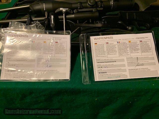 Description: Blaser R8 Professional Savannah - Left hand action, barrels with open sight, 3006 cal. and 6.5 x 55 Sweedish. Both barrels shot 20 rounds only. Factory case with all accessories. 80 round norma ammunition. Accu Power trijicon 4-16x50 red illuminator Leupold VX6 2-12x42 fire dot duplex. Everything new. $5700.00 plus shipping. For more information call Rick at 973-478-5066. SOLD |