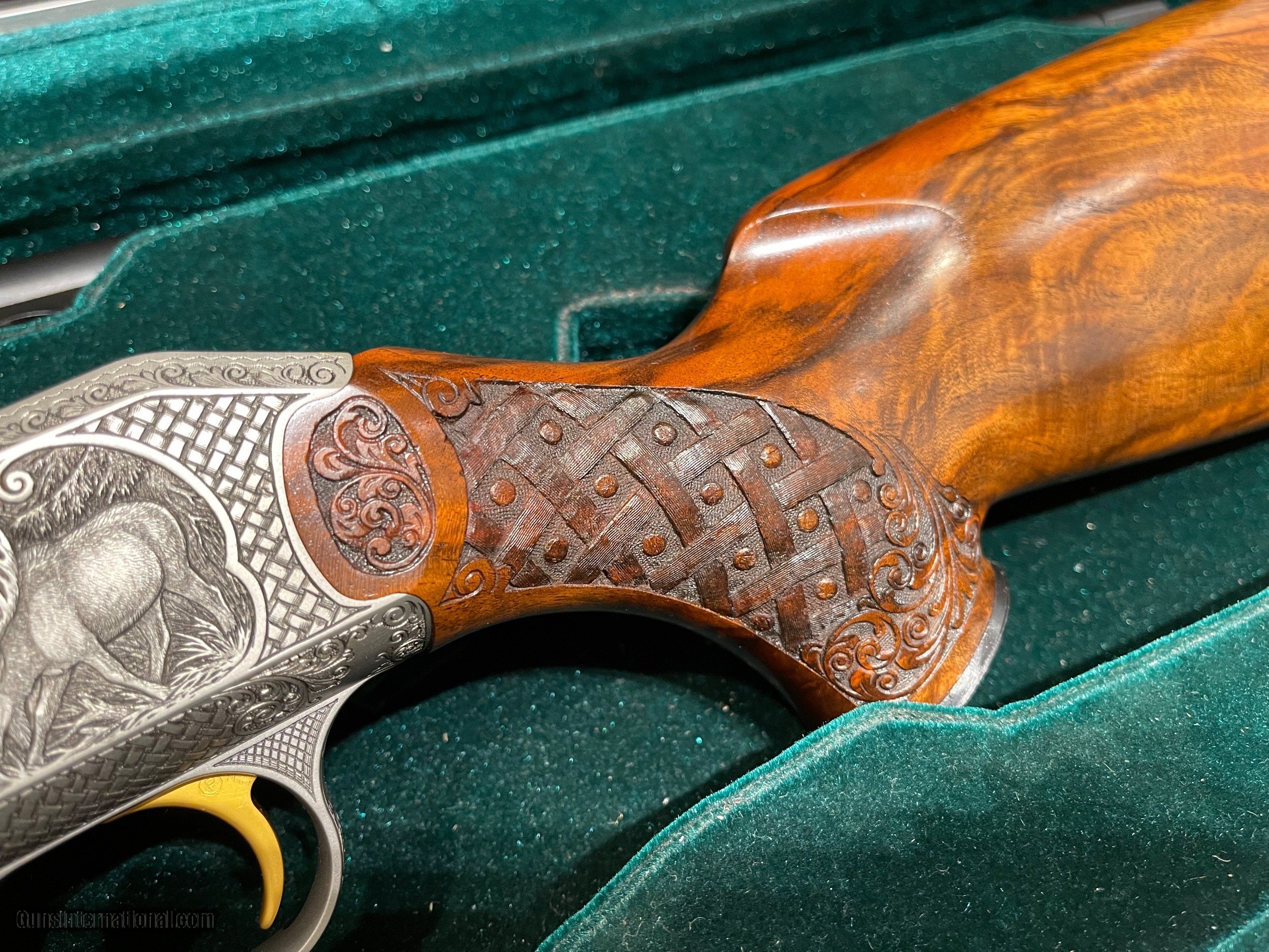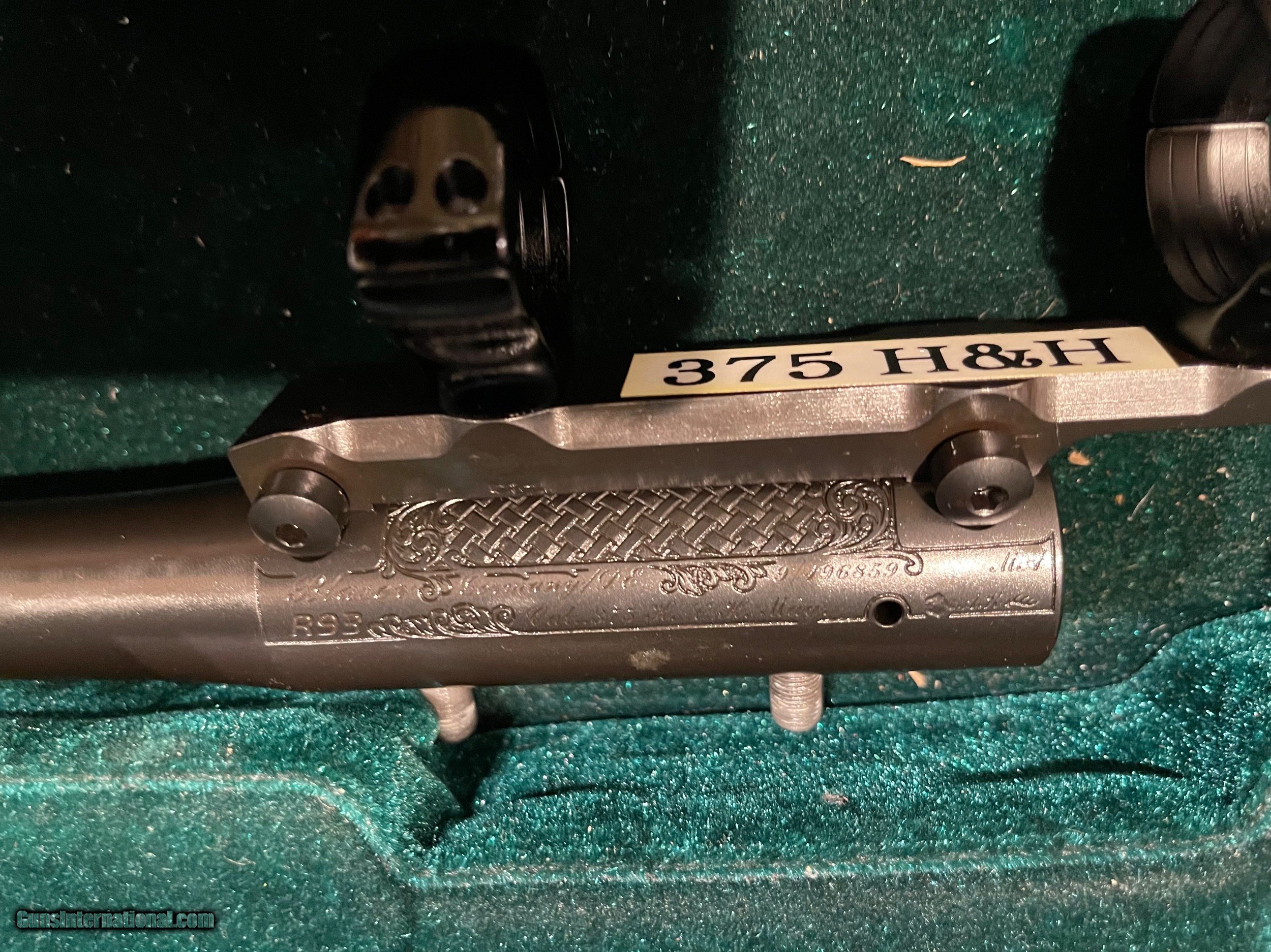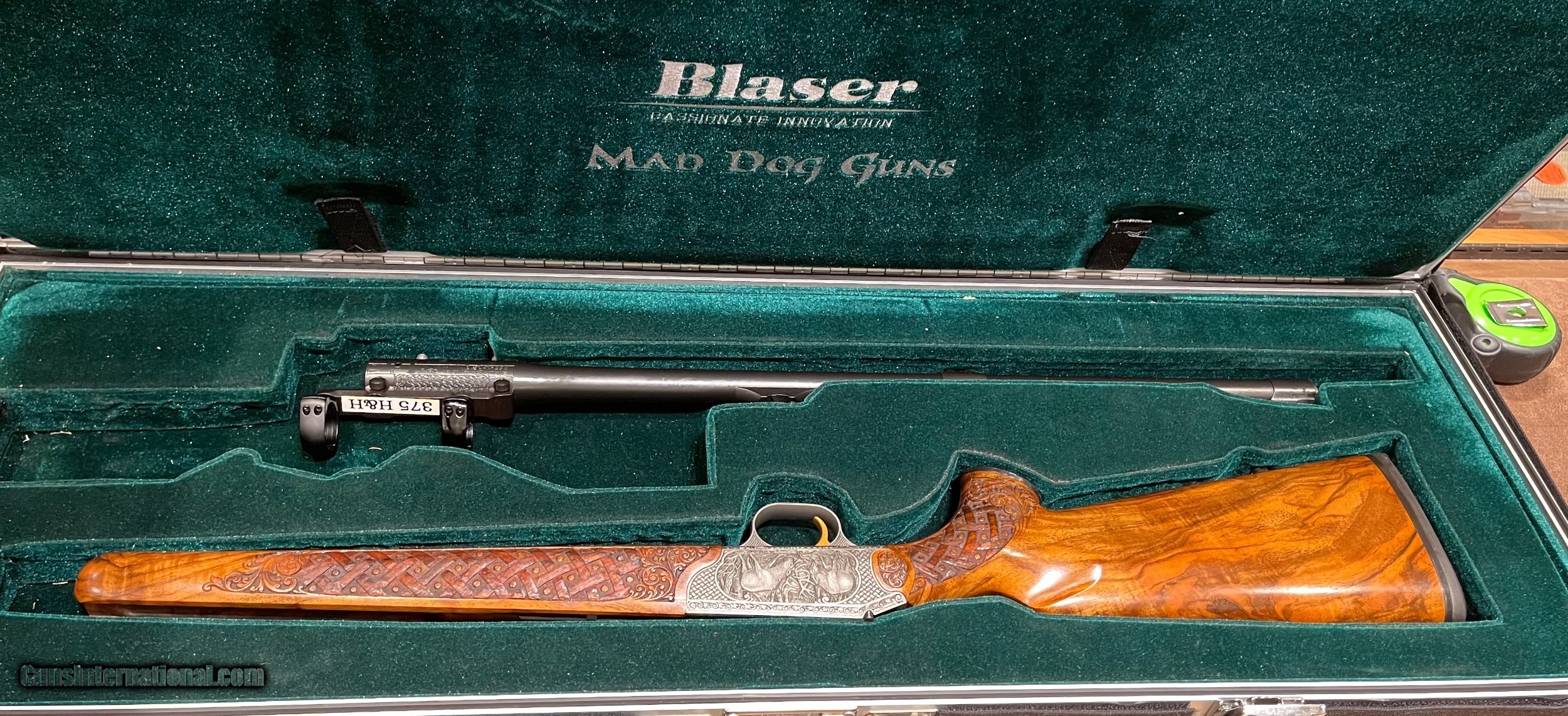 Description: We have a beautiful / unique Blaser R93 Custom Shop 3 barrel set in 375 H&H, 300 win mag, 270 win. Top of barrels are engraved to match the basket weave pattern on the stock. Game scene engraving done by R. Schmidt. With a gold inlay grip cap, nothing was left out in this design. Heavy duty custom Mad Dog Guns TSA travel case. This set is priced to move. No out of state taxes. Money order / wire transfer is greatly appreciated. SOLD Rifle Caliber: .270 Winchester, .300 Winchester Magnum, .375 H&H Magnum |