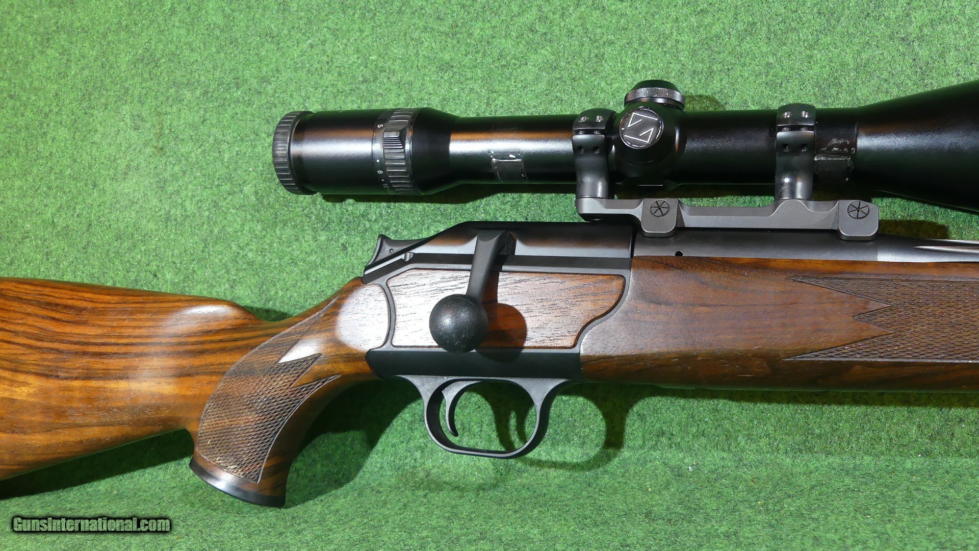 Description: Welcome to T & G German Gun Imports! Tobi and George love traditional European hunting weapons. These valuable guns were manufactured in the 1950s through the 1990’s, when high volumes were produced in Germany and Austria. Reputable companies include Sauer & Sohn, Krieghoff, Merkel, Heym, and Ferlach. Tobi, a gunsmith and dealer located in the scenic Saurlands Region of central Germany, is a former airborne weapons specialist and officer honorably discharged in 2011 from the German Army. George is a native of Mobile, Alabama and avid outdoorsman who fell in love with German hunting traditions while serving in Heidelberg, Germany as a US Army Physician during the early 1980’s. In 2017 their unlikely connection was made and the seeds of their future partnership were planted. Restrictive gun laws in Germany and a lack of demand had sent Tobi looking for a partner willing to import these weapons into the United States, where demand is high. Unlicensed inheritors of these guns are required by law to turn them over to police unless a licensed buyer is found in a specified time. Times vary from two weeks to two months depending on the laws of each German state. Once in police custody they are melted down and destroyed. George had inherited his great, great grandfathers drilling and could not find an American gunsmith able to repair and restore it. Tobi placed a Zeiss scope with a detachable pivot mount and a 30/30 Winchester insert in his right shotgun barrel, completely refurbishing and restoring George's 1902 Hollenbeck drilling. They founded T & G German Gun Imports in 2018. Since then they have made it their mission to save these guns and give them a new life in the United States. This includes drillings with scopes, over under rifle shotgun combinations with scopes, and side by side shotguns. Since many of these weapons are in metric calibres, T & G also stocks ammuntion that can be purchased directly. They provide full service repairs for all their weapons and have a large stock of spare parts and accessories. Guns are owned by us but are still in Germany,expected to arrive in roughly 2 months, each will be engraved with 1/16 inch letters as is required by the ATF, in a visible location. In addition to the purchase price there will be an $85 fee per gun for shipping 11% excise tax, you have a full 30 days to decide if you would like a full refund excluding the shipment costs within the United States. You are permitted to shoot the weapon as well as examine the action internally, provided this is done by a qualified gunsmith. Obviously if the gun is returned and damaged, the amount of the refund would be negotiable. We have ample Metric ammunition for these weapons that can be purchased as well and shipped, we use Sellier & Bellot and typicallyThe ammunition is in the $16-$20 plus shipping,per 20 round box ,If later you need repairs to your guns we have a qualified German gunsmith and a supply of spare parts. Please visit our webpage german-gun-Imports for a narrative of our story. “save the guns “ SOLD Manufacturer: Blaser Model: R93 Serial Number: 9/229680 Caliber Info: 300WinMag Barrel Type: MATCH |