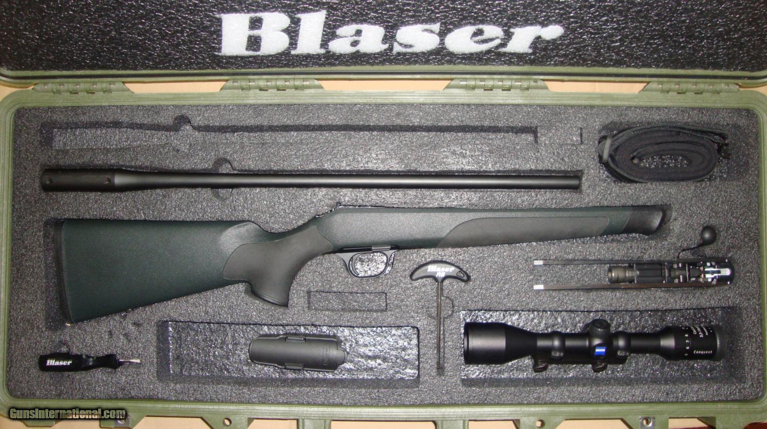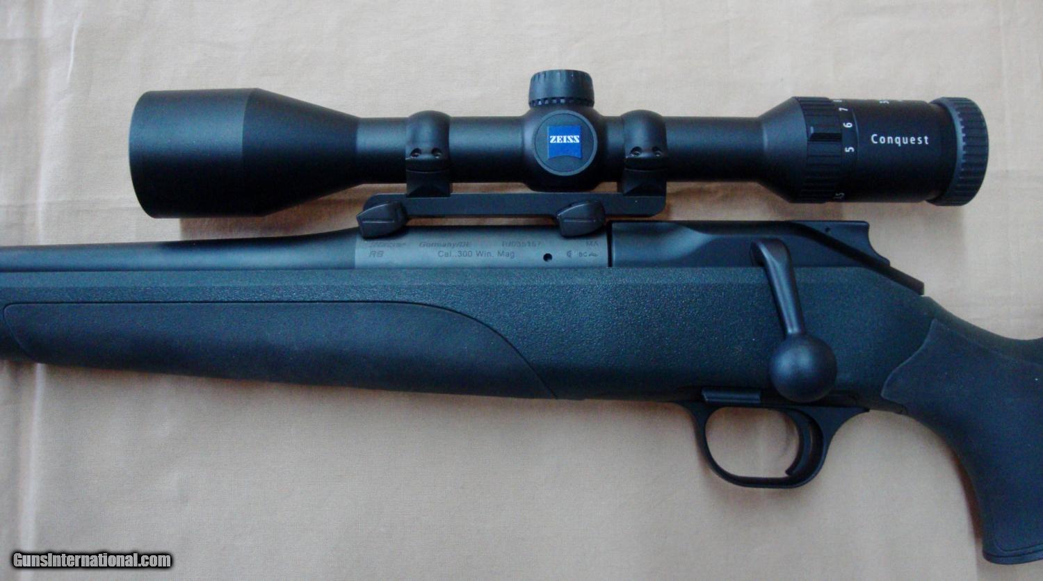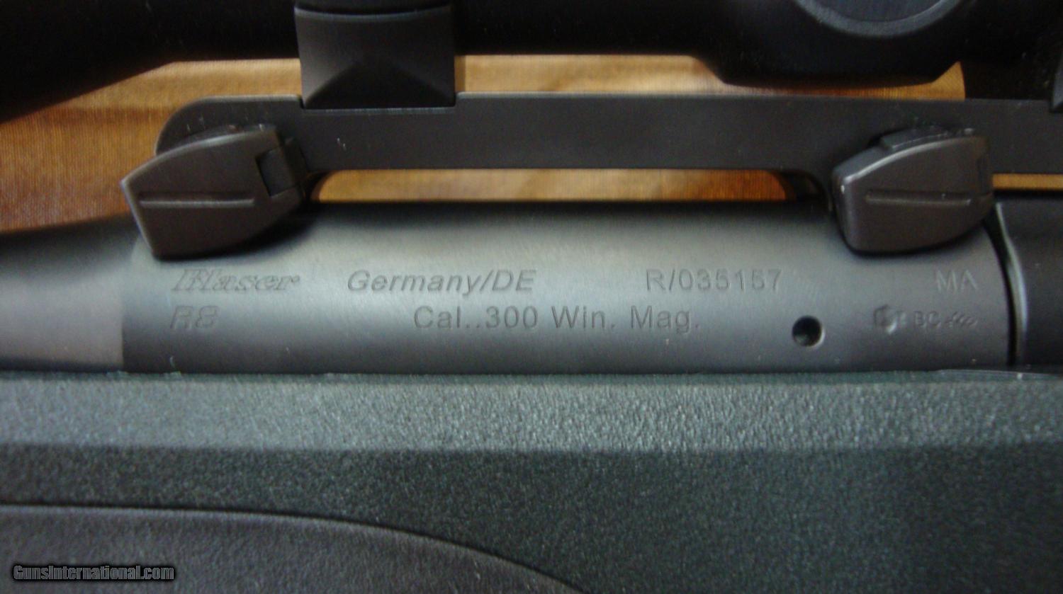 Description: Left-handed Blaser R8 .300 Winchester Magnum Professional Package 25" barrel Synthetic stock in dark green Black Blaser Neoprene Pro Sling with integrated cartridge holder Blaser Saddle Mount ZEISS Conquest 3.5-10x44 rifle scope (plex reticle) Pelican Travel Case with custom fit foam and additional barrel cut-out SOLD |