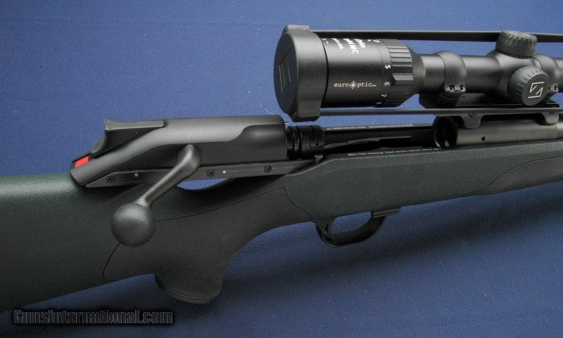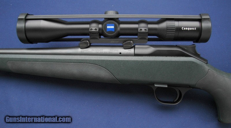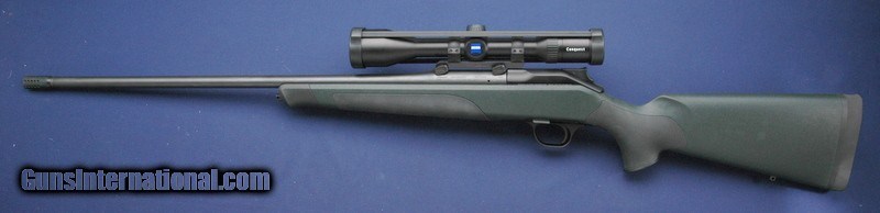 Description: Here is a wonderful high end bolt action rifle chambered in 300 Win Mag. The Blaser R8. This one has only been fired a few times, doesn't show a hint of wear anywhere. It wears a Carl Zeiss Conquest 3.5-10x44 optic, with a simple heavy duplex reticle on factory Blaser QD mounts. It has a custom muzzle brake mounted to the 24" barrel, giving a total barrel length of 26" with a mint bore. The Blaser has a wonderful straight pull bolt action and a superb light, crisp trigger. The magazine is a one piece unit with the trigger guard, it all comes out with just a snap. 3 round capacity. Dark green polymer stock with integral sling mounts. It comes in a fitted Pelican case. Top of the line here! $125 shipping to the lower 48. 3% surcharge if you pay with a CC. If you pay with a personal check, you can expect us to hold the item for up to 10 days to make sure the check clears. SOLD |