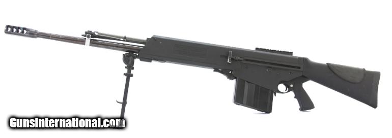 Description: The Dieckmann .50 BMG caliber custom semi automatic rifle. The rifle was designed and manufactured by Ralf E. Dieckmann in the time period of 1993 to 1994 in Phoenix and Prescott, Arizona. The rifle was designed along the lines of a typical Assault Rifle scaled up to accommodate the .50 caliber Browning cartridge. The breech mechanism consists of a vertically locking and horizontally reciprocating wedge type breech block. It is driven by a novel “floating” gas system and returns to battery by dual extension springs. The rifle utilizes a 10-shot Barrett magazine. The overall length is 56 ¼ inches. The barrel length is 29 inches. The rifle weighs 35 pounds, unloaded, with the M-14 bipod installed and without optics. The rifle has been fired enough times to establish that it is safe to shoot. Due to the high cost of .50 caliber ammunition, it has not been endurance tested to establish its long-term reliability. For that reason, the rifle is offered for sale as a ONE OF A KIND prototype/collector’s item only. What is not included in the sale is any intellectual property which may reside in the mechanism of the rifle. Ralf E. Dieckmann, the designer, would be happy to work with any manufacturer interested in further developing this prototype rifle for retail sales. The sale includes the rifle, one magazine, an M-14 bipod and a Pelican case (not pictured). SOLD |