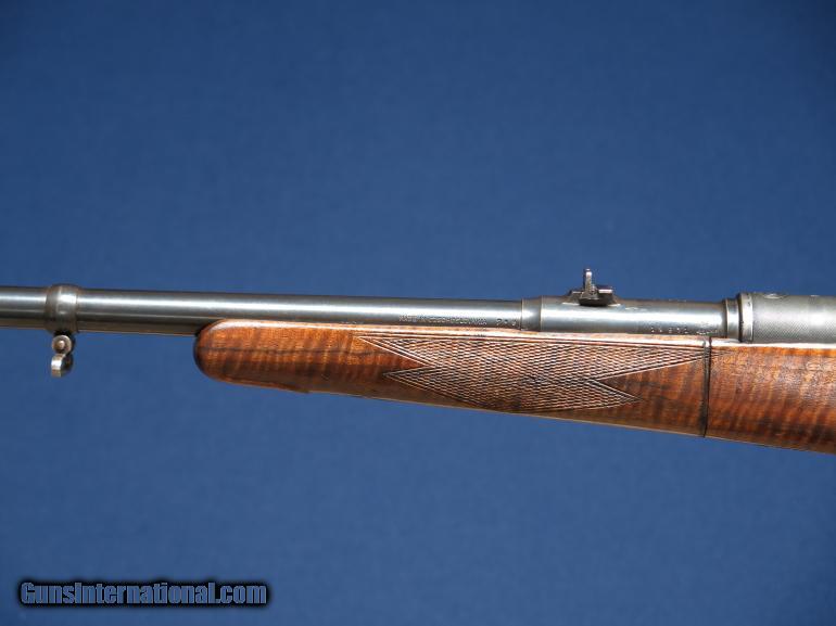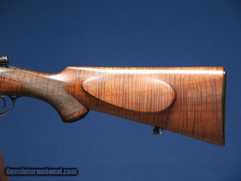 Description: Brno 21-H 8x57S. Double set triggers. Two piece stock. 24" barrel. 1 fold down & 1 standing rear sight. Tapped for scope. 1948 mfg. 95-96%. Excellent bore. SOLD |