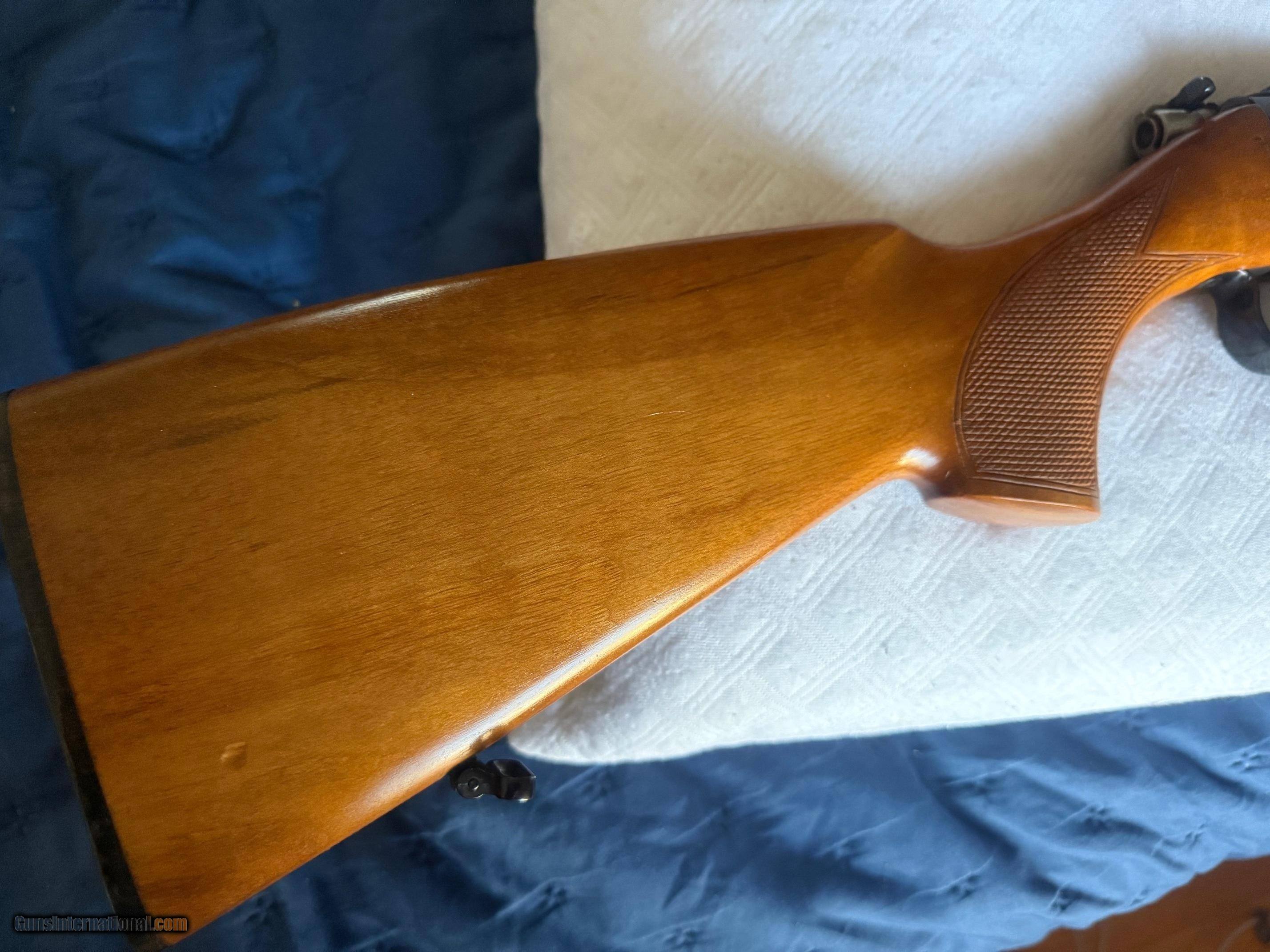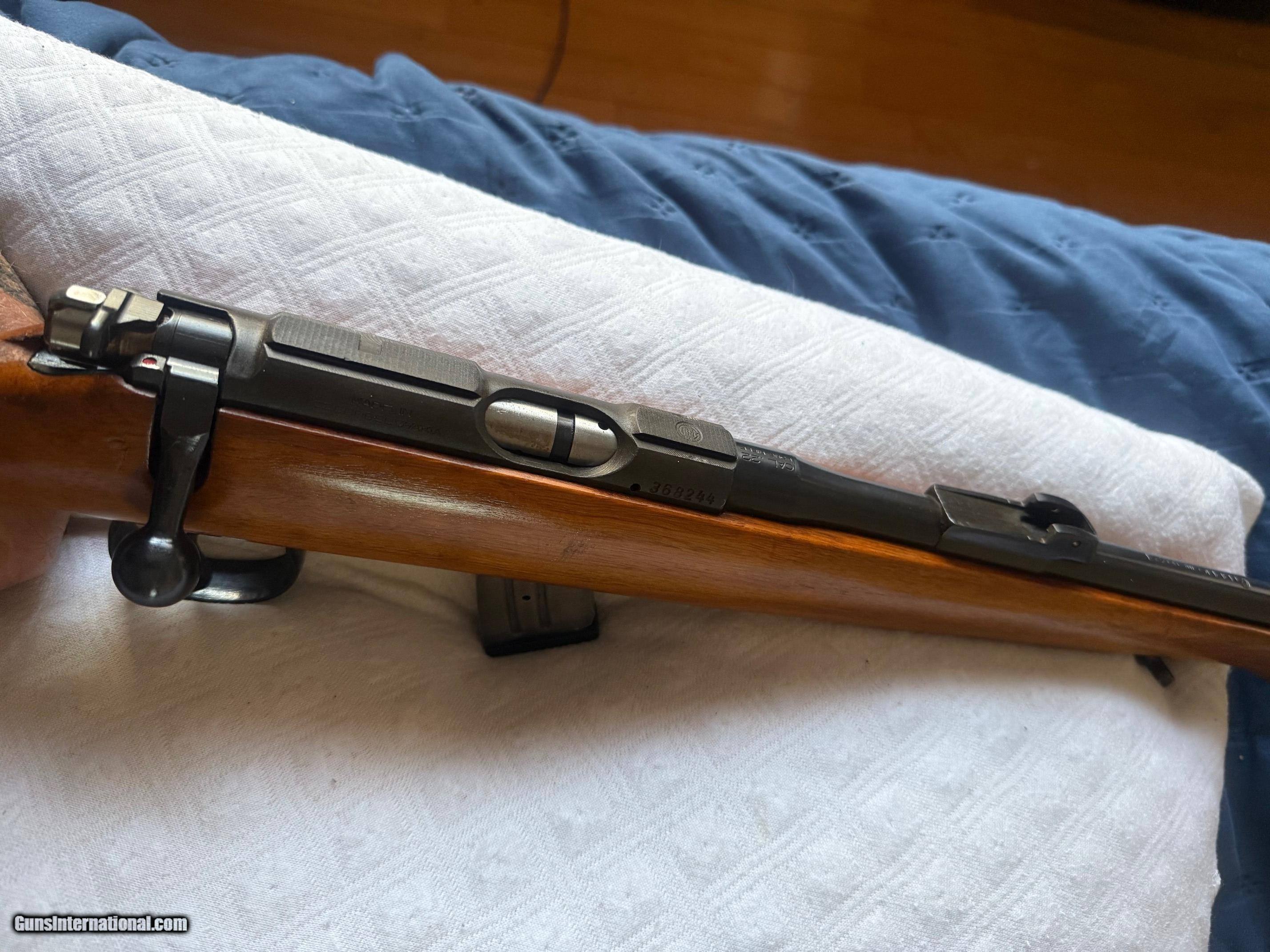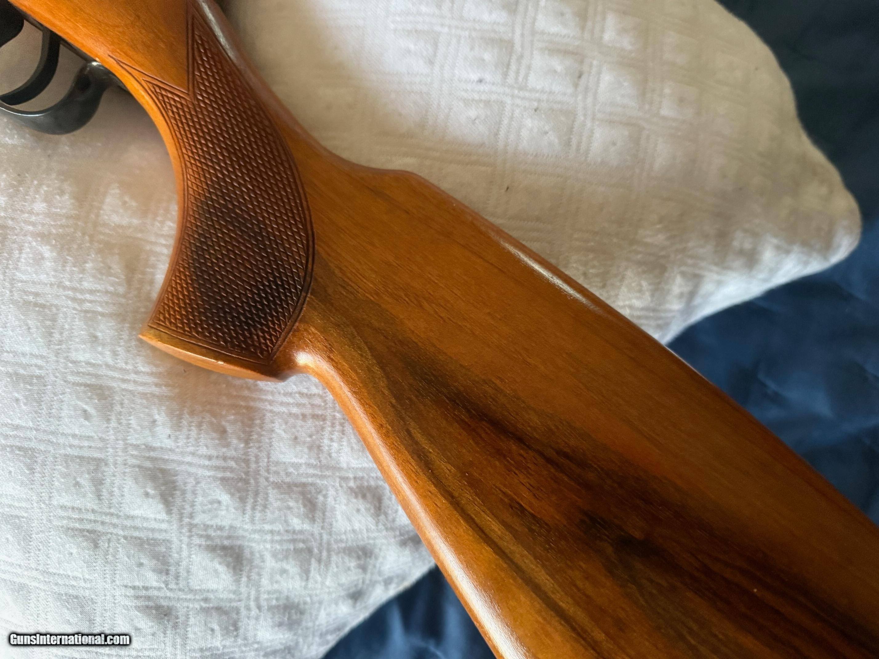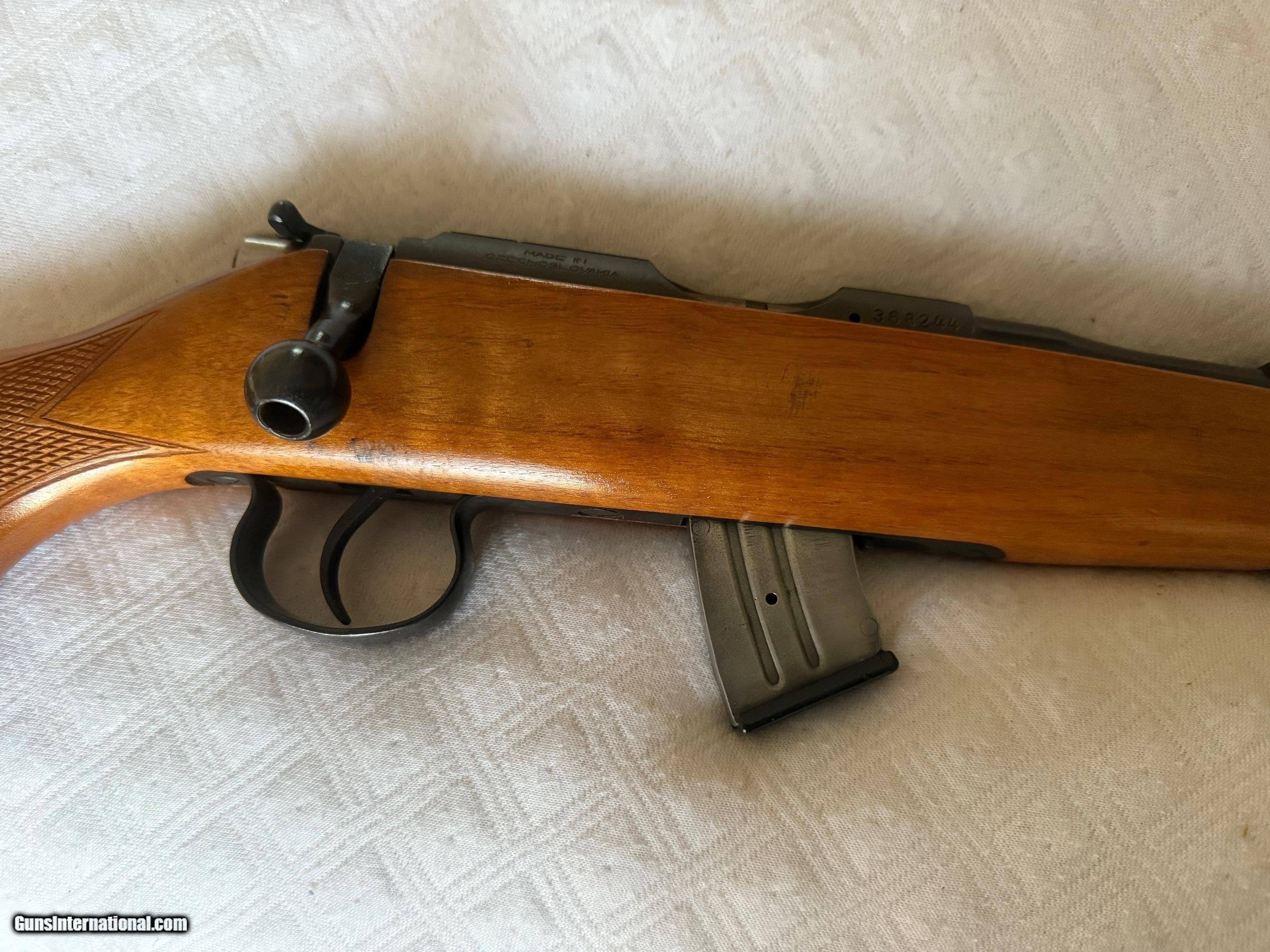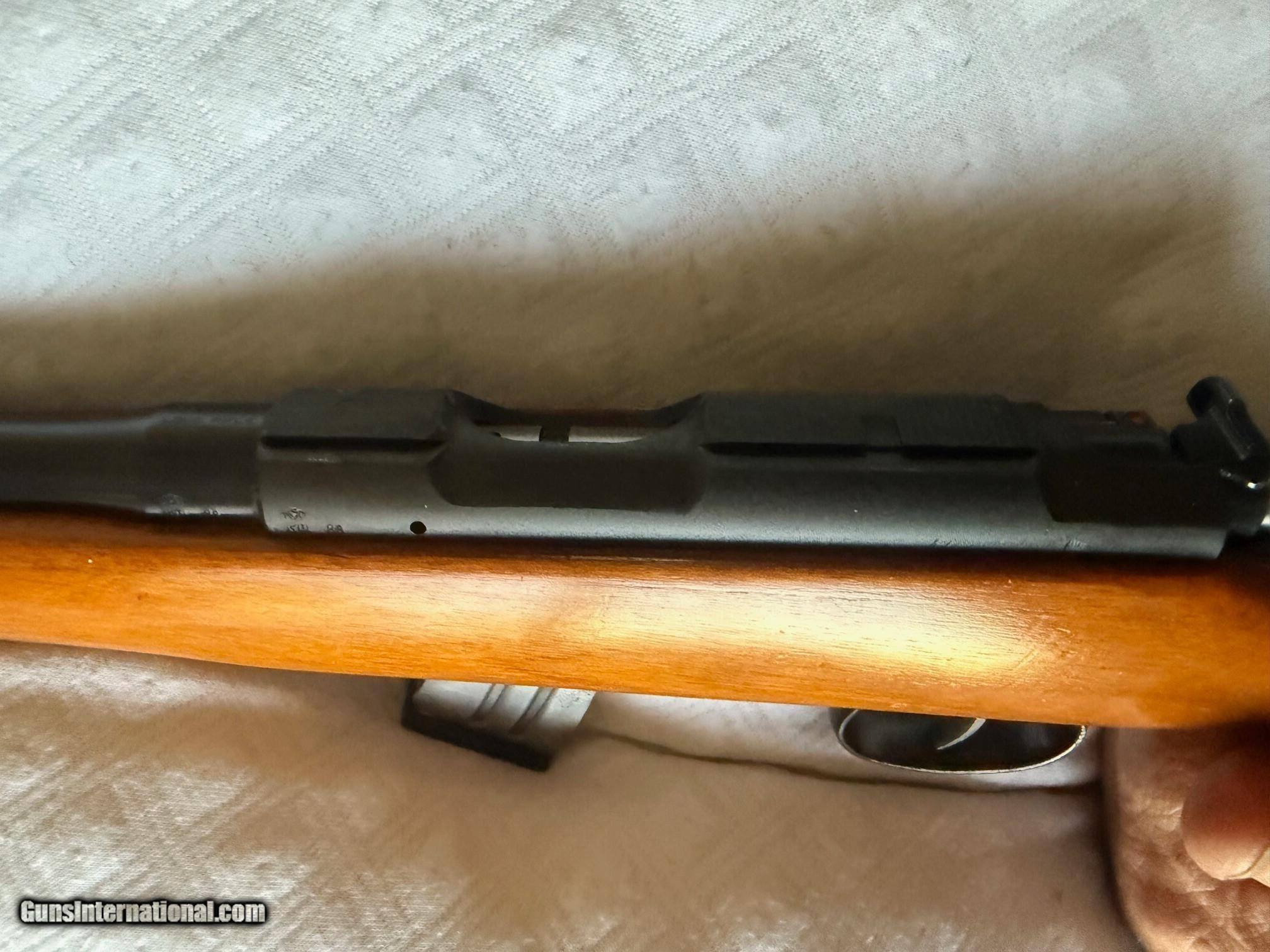 Almost impossible to find one in this excellent condition. The 2E has a 24.8" barrel and great wood. It has a hooded front sight, and the blade on the front sight has been removed to facilitate a scope. The metal is in fine shape, and the barrel has been threaded and comes with a thread protector. It comes with the appropriate rings with bases, and has sling rings and studs. These are some of the most accurate 22 rifles made.