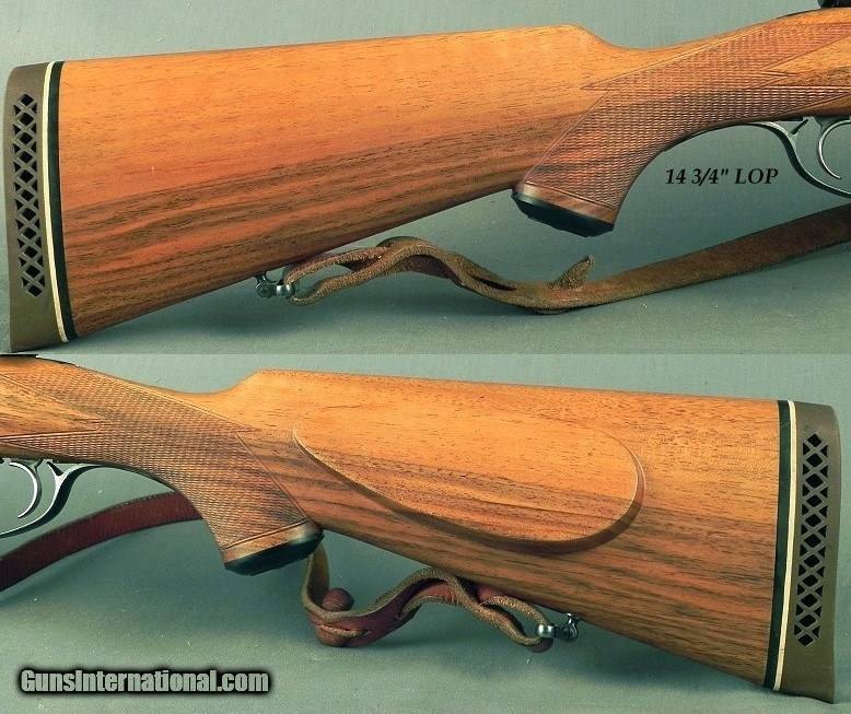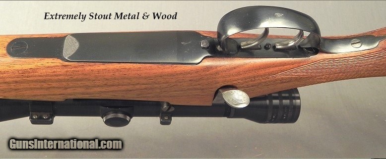 Description: #20707, Brno 8 x 57JS, Model 22F, Made in 1948 in Czechoslovakia on their great Small Ring Mauser Action, 20 1/2" barrel with a full length Mannlicher style stock, Factory 1 standing & 1 folding rear sight, Barrel band sling swivel, Butter knife bolt handle, Double set triggers, Bolt sleeve safety on the left side of the sleeve, Detachable floorplate but not hinged, Matted receiver ring, Redfield 1 piece scope base with early post-war 1" Redfield rings, A period 4X Redfield Bear Cub scope, Sling swivels with a period leather sling, European style cheekpiece, 14 3/4" LOP over a 1" pad, 7 lbs. 12 oz. with the Redfield scope, The original blue remains at 96%, The stock with original finish remains at 95%, The checkering at 100%. The bore remains in excellent plus condition. These early post-war Czech Mausers were the best systems offered during this time period. The 8 x 57S handles the true .323" diameter bullets and Hornady, RWS, Norma and Sellier & Bellot offer ammo for this very efficient cartridge. You can buy a current bolt rifle for less money but when you compare quality it won't win any contests or even get in the race. The difference in liking a gun or loving a gun is in the details. The difference between a Socialist and a Communist is that the Socialist doesn't have all the guns yet. SOLD Curio/Relic: Yes Rifle Caliber: 8x57mm JS |