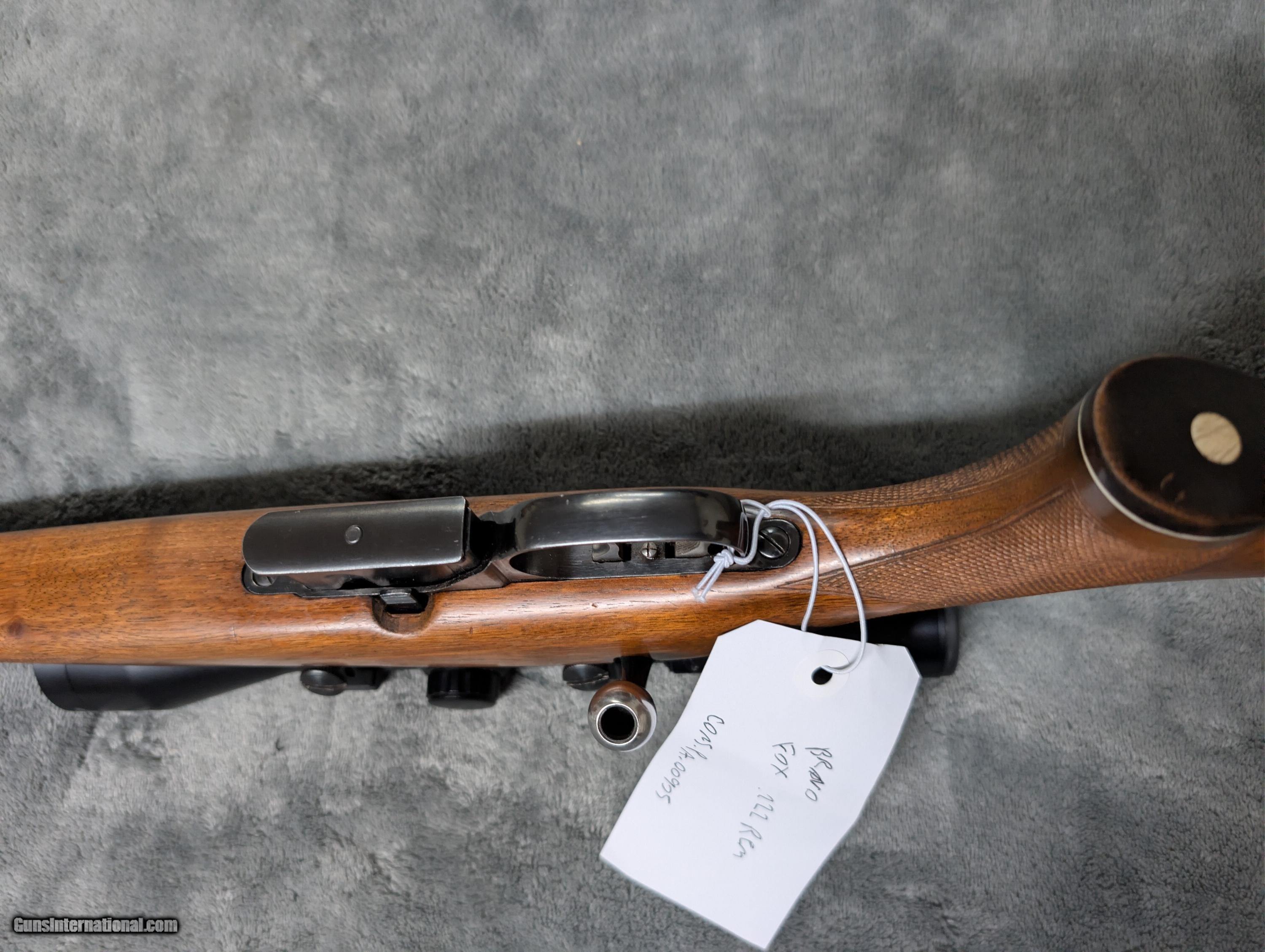 Description: CONSIGNED This Brno Arms fox model in .222 Remington remains in very good condition. It has double set triggers and a 23.5" barrel, it has a Redfield 3-12x44 scope. The Bore is excellent. It has the majority of its original bluing present. The Stock does have a few small dings / dents present, but nothing major. Please see pictures. Rifle Caliber: .222 Remington Manufacturer: BRNO ARMS Model: FOX Serial Number: 12572 Barrel Length: 23.5 Condition: VERY GOOD Metal Condition: VERY GOOD Wood Condition: VERY GOOD, SOME SMALL DINGS AND DENTS Bore Condition: EXCELLENT Triggers: DOUBLE SET LOP: 14.25" TO FRONT TRIGGER Manufacture Date: 1973 Item Location: 49253 Optic: REDFIELD 3-12X44 SCOPE Price: $945.00 Contact Seller |