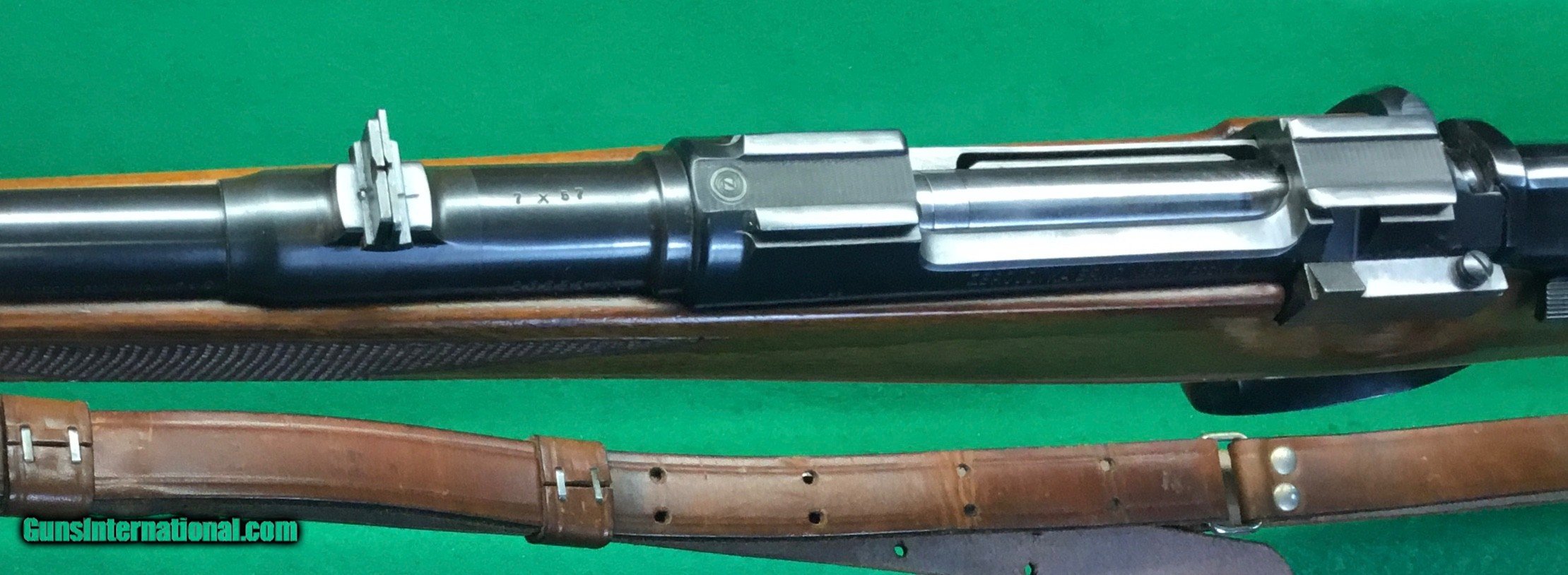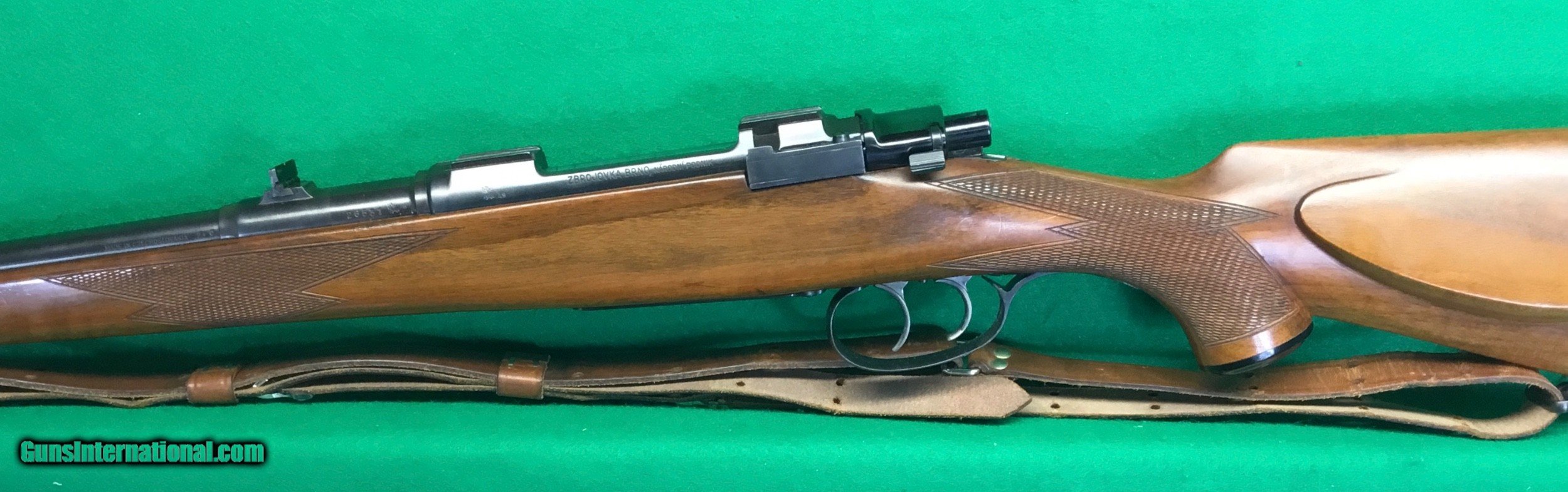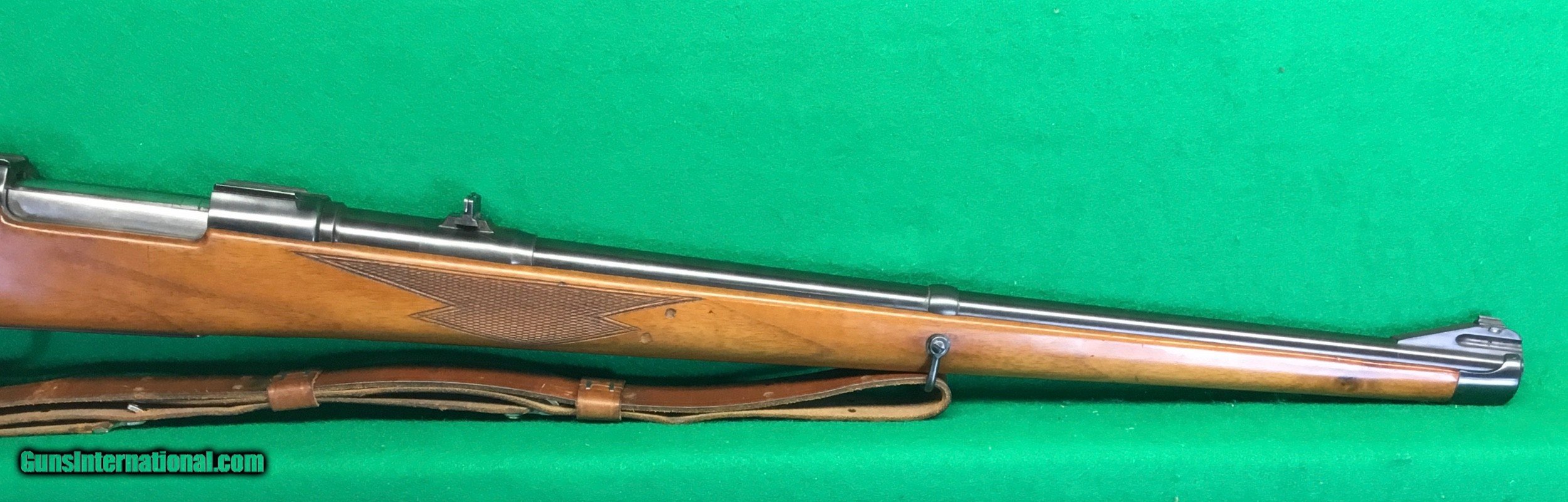 Description: Sold, awaiting payment, no longer available // I believe this to be a 22F model. It is a 1949 Brno 7X57 full stocked carbine with DST and spoon bolt handle. Added pad for a 14 7/8 inch pull to front trigger. Barrel measures 20 1/2 inch. Excellent condition with a couple small dings in the forearm. Nice sling included. $1498 plus $50 insured shipping in hard case. Layaway available. No credit cards and no trades. C&R ok. SOLD Curio/Relic: Yes |