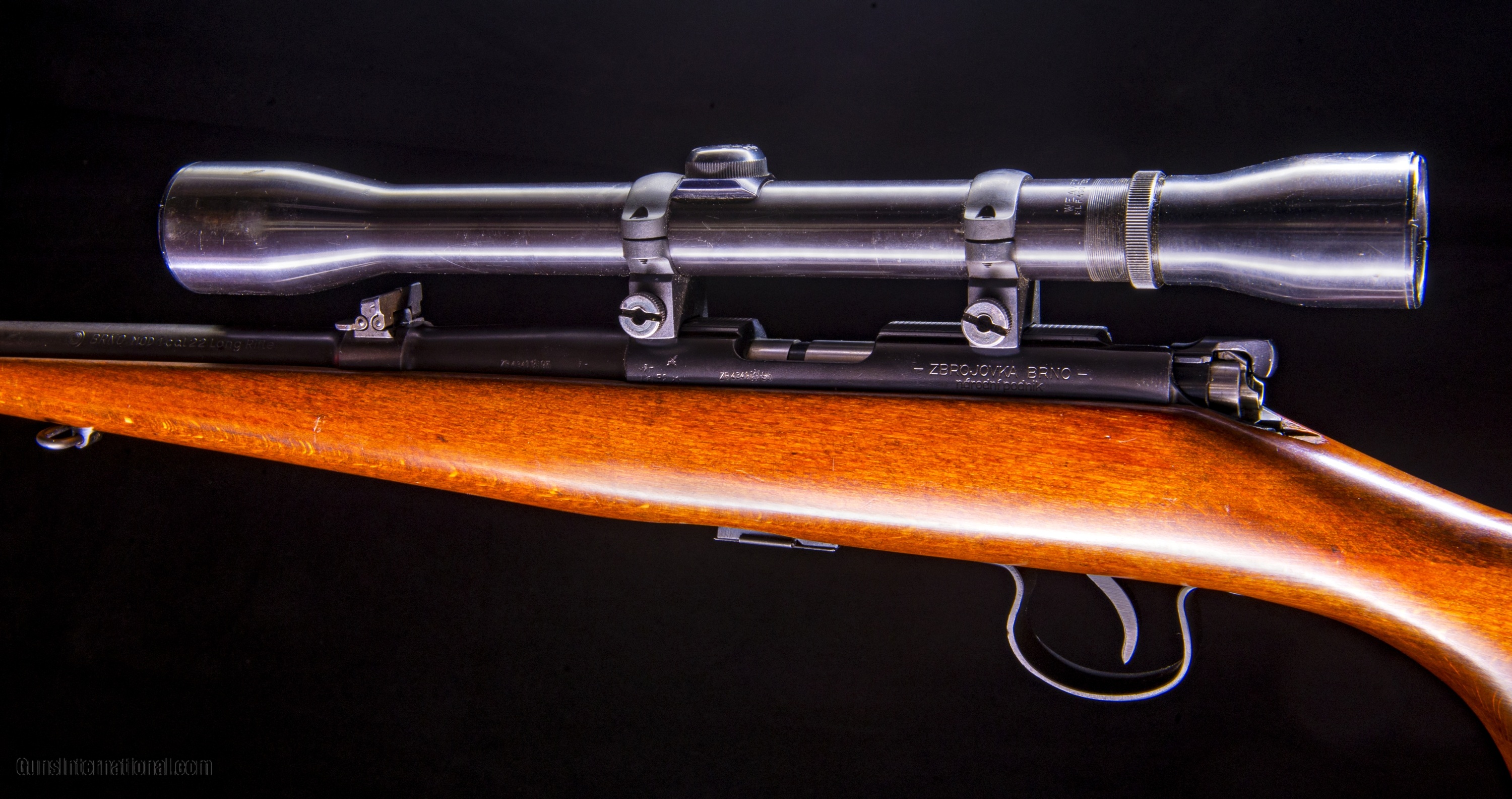 Description: Drillings, Double Rifles, and Rifles - Comes with a clean Weaver K6 scope *** Note: To see this gun with high resolution photos and a zoom-in feature, go to the vintagedoubles main site and search for the gun ID: 5415 or browse the main site to see our full gun collection. SOLD Manufacturer: BRNO Mod 1 .22LR with scope and excellent bore Model: One Serial Number: 101867 Caliber Info: .22 Ejectors: Yes Barrels: 22 Barrel Type: Steel Action: Bolt ejector Gauge Info: Caliber LOP: 13 3/4" with or Weight: 7 lbs with scope, ba Choke Left: NA Proof:Nitro: .22 Minimum Wall Thickness Left: NA |