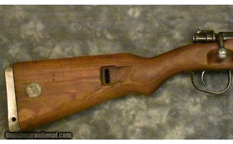 Description: Here is an interesting example of a Czech produced 98K Mauser, chambered in 8mm Mauser. It was produced by the Brno factory, and is a post-war example, which is quickly identified by the winter trigger guard, as they did not use that part during German occupation. After the war, the Czechs continued to produce these rifles using German ordnance codes for export to rebuild their economy. This example was made for Ethiopia, as indicated by the "St. George" coin embedded on the right side of the butt-stock. It is missing the cleaning rod and front sight hood. There is a discreet import mark under the barrel. 8mm Mauser SOLD Metal Condition: Good Wood Condition: Good Bore Condition: Good Barrels: 23.25 Weight: 8.6 lbs Item Location: Harrisburg, PA |