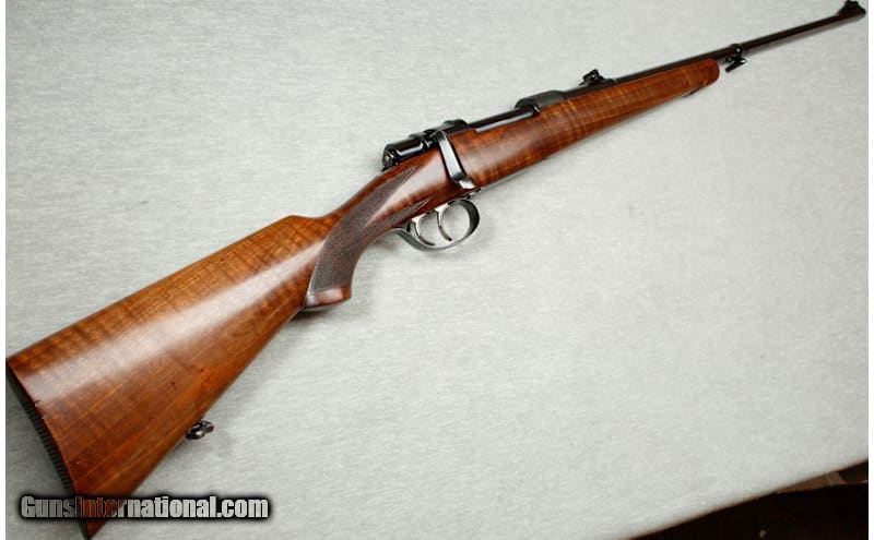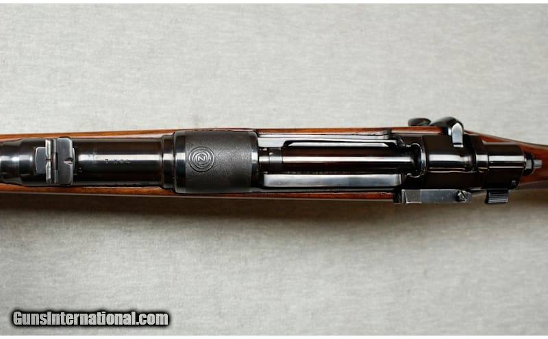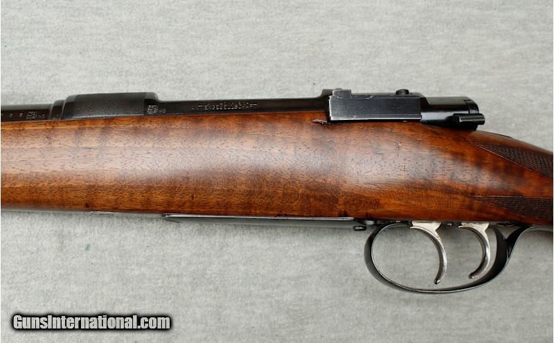 Description: WWII ERA ZBROJOVKA BRNO MODEL 21 BOLT ACTION RIFLE. Cal. 7x64. S# 4738. Barrel 23.6" with "43" dated Czech proofs & swivel on barrel band. Ramp mounted blade front sight & 2 leaf rear sight. Small ring receiver with control feed claw extractor action with butterknife bolt handle. Double set triggers. Receiver ring is matted with Zbrojovka logo, left side of receiver stamped "WAFFENWERKE BRUNN / AKTIENGESELLSCHAFT". Hinged floorplate has checkering at top & checkered release button. Walnut stock with small schnabel tip, checkered pistol grip, Bavarian cheekpiece & sling swivel. LOP: 14" to grooved butt. CONDITION: very good metal & wood finish with light handling marks. Very good bore with strong rifling. 7x64 SOLD Metal Condition: good Wood Condition: good Bore Condition: bright Barrels: 23.6" barrel Triggers: double set trigger Stock Dimensions: 14 Fore End: smooth wood Weight: 6 lb - 8 oz. Sights: factory sights Item Location: La Vista, NE |