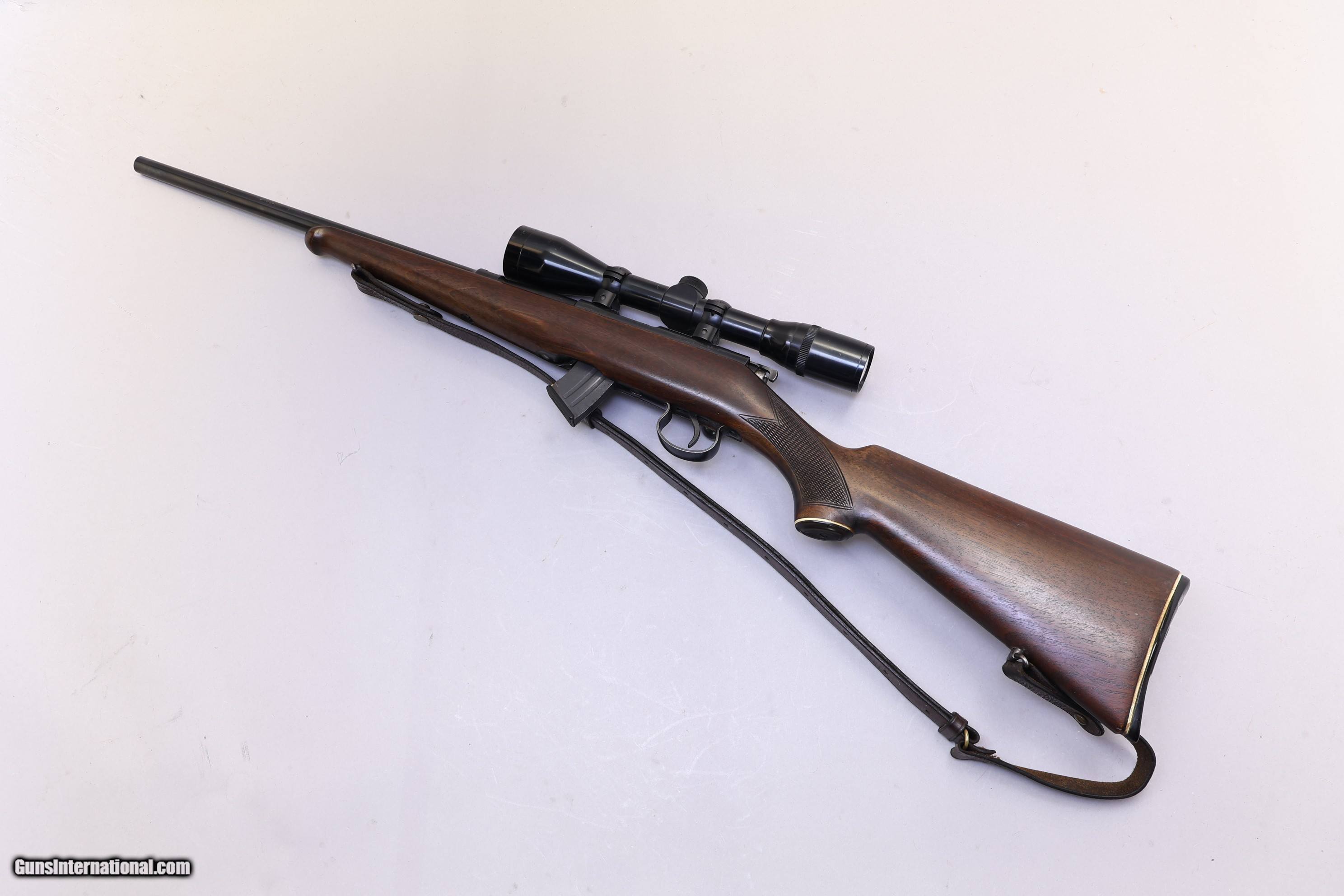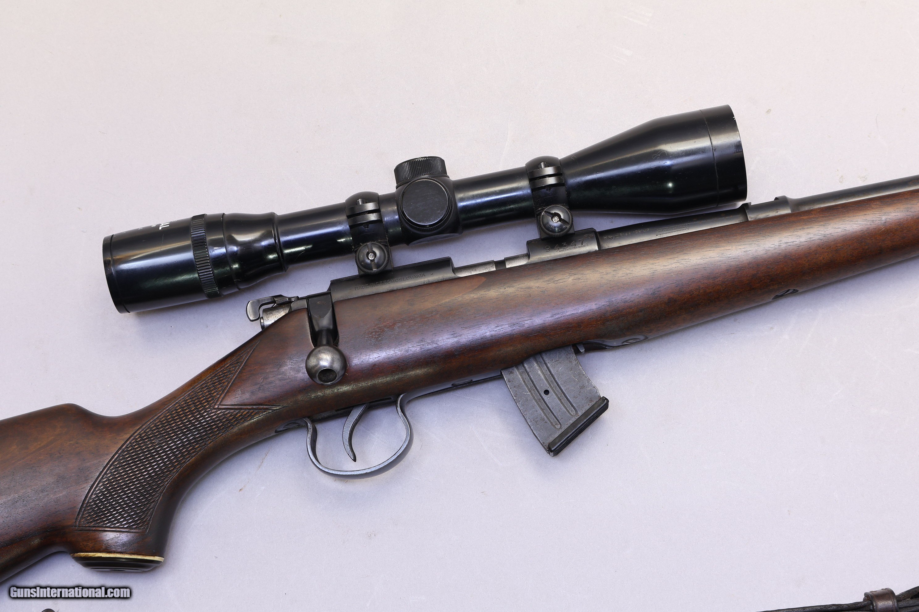 Description: Overall Length 36 1/2" | Good Condition The BRNO Mod 1 is a classic Czech-made bolt-action rimfire rifle built for dependable performance and simple operation. This .22 LR model offers smooth cycling and solid construction that has made these rifles popular with shooters for many years. This rifle is in clean shape with wood that remains nearly pristine, showing only light surface grime from handling. It comes fitted with an Original Model 12 4×40 scope for accurate shooting and includes a detachable magazine and a leather sling. The barrel is in good condition with only a few small cosmetic rust patches, and the rifle is well-suited for both precise target use and small-game shooting.