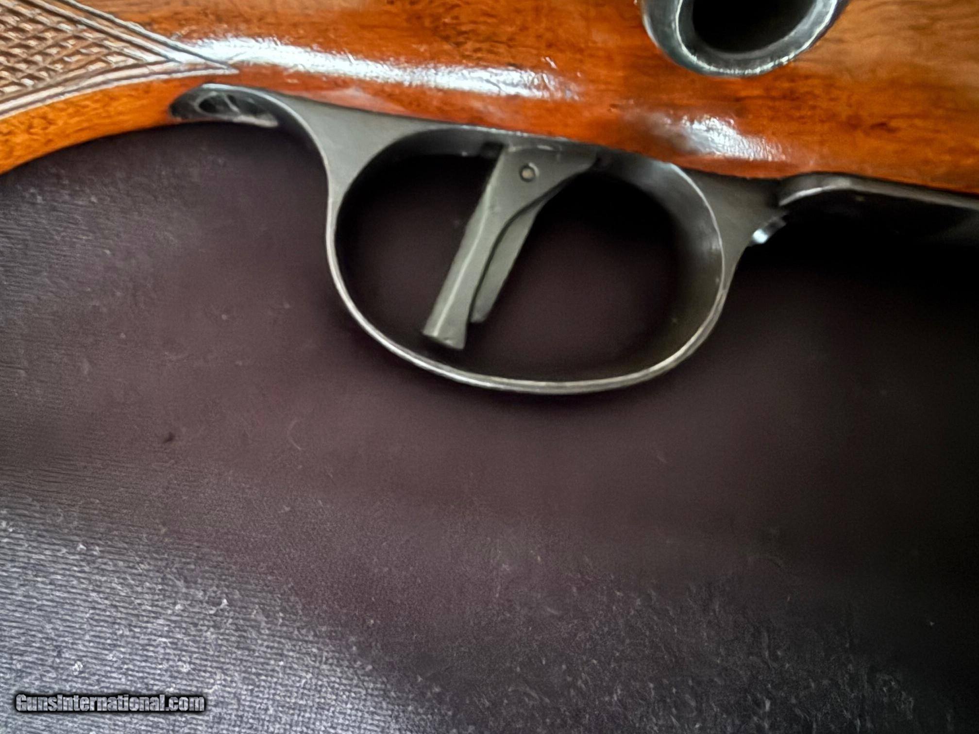 Description: Checkered walnut pistol grip stock. Folding leaf rear sight, blade front sight. Receiver grooved for scope mount. Set-trigger. Metal surfaces are in excellent condition—beautiful figured wood. The furniture has some small handling marks in VG+ condition. Highly sought after and extremely accurate with any ammo you feed it. The ZKKs are difficult to find, especially in this fine condition and great caliber. This is a used item. While we do not test-fire our used firearms, we perform an inspection and function check to ensure that they are fully functional to the best of our ability. Layaway: 1/3 down, 90 days Shipping $65 Insurance is an extra that must be requested and paid for by the buyer 3-day inspection period for non-firing or disassembly Payment: Personal Check, Money Order, Cert. Check, or Zelle New shipping hard case $20 upon request 20% restocking fee on all returned items randywine2000yahoo (703) 858-2881 Curio/Relic: Yes Rifle Caliber: .270 Winchester Manufacturer: BRNO Model: ZKK-601 Serial Number: 46982 Barrel Length: 24.5 Bore Info: Bright Condition: Excellent Metal Condition: Excellent Wood Condition: VG+ Bore Condition: Excellent Barrel Type: Sporter Action: Bolt Stock: Walnut Stock Comb: Monte Carlo Butt Pad: Factory Plate LOP: 13.5 Finish: Oil Sights: Metal Manufacture Date: 1960 Grips: Checkered Pistol Optic: Grooved Receiver Price: $1,199.00 Buy Now Contact Seller |