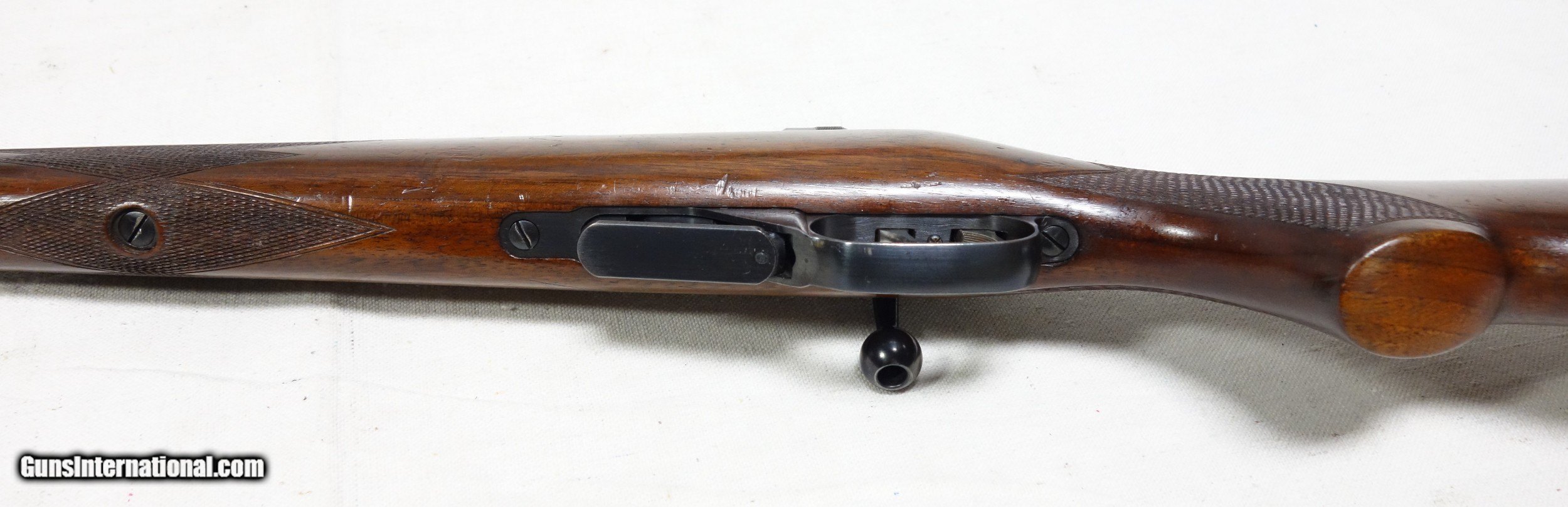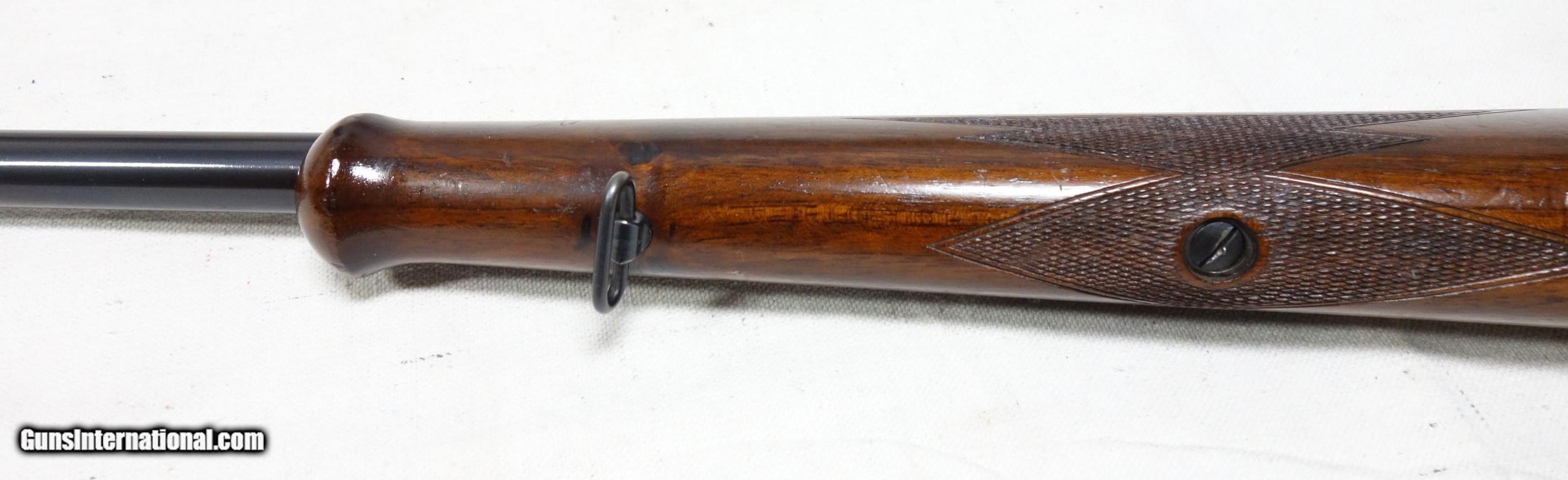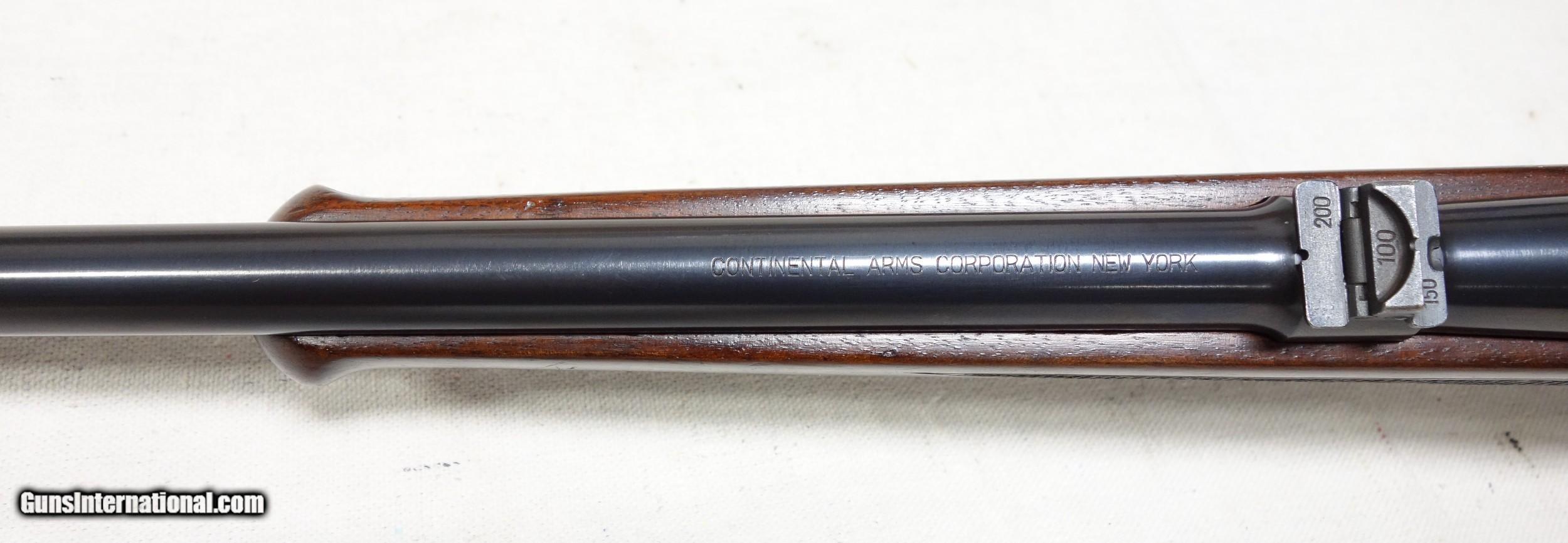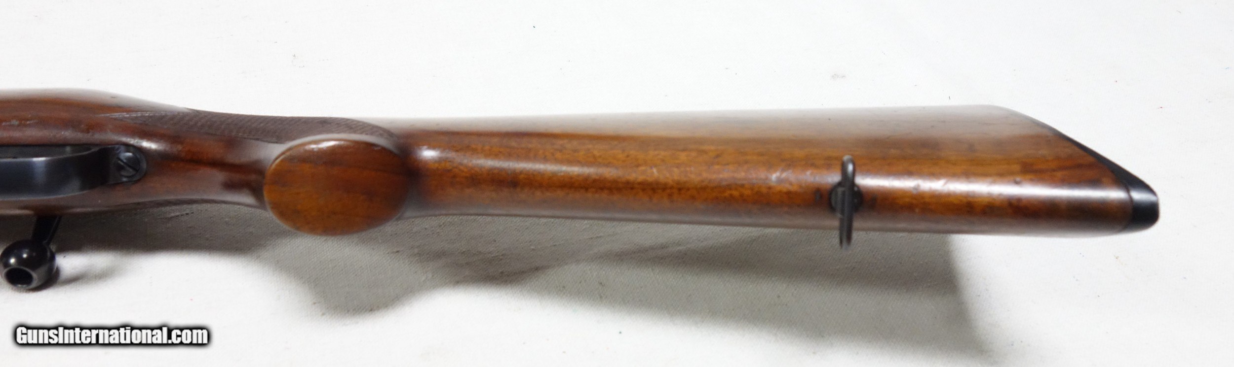 Description: The BRNO ZKW 65 22 Hornet...For me, the finest 22 Hornet sporting rifle ever produced when factoring style, grace, and quality of construction. These rifles are simply incredible and a joy to behold and use. S/N 16490 with matching component #s produced in 1949 and imported by Continental Arms Corporation of New York. This rifle is completely original and has never been altered, drilled on, refinished, etc. The condition is excellent showing 97% Blue and wood finish in the lower 90's% due to some light-moderate handling marks but no cracks or deep gouges. The mechanical function and bore condition are excellent. The chamber has never been reamed to K. Special features of this unique rifle include beautiful stock lines and feel with a sculpted schnable foreend tip, 3 leaf express rear sight for 100,150, 200 yds., double set precision hair trigger, double square bridge receiver with integral dovetails for claw mounts, and original 5 shot magazine. A VERY difficult to find rifle in any condition and this one remains quite nice and ready to go to work! SOLD Curio/Relic: Yes |