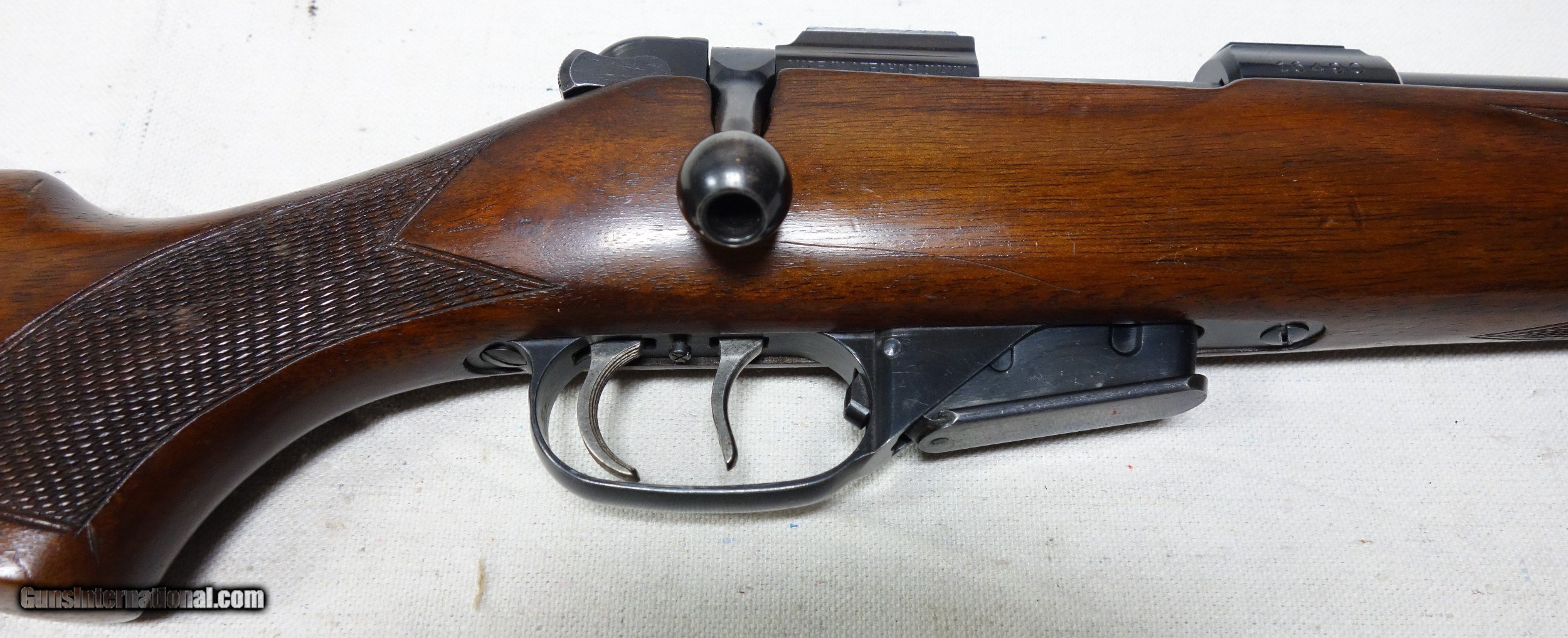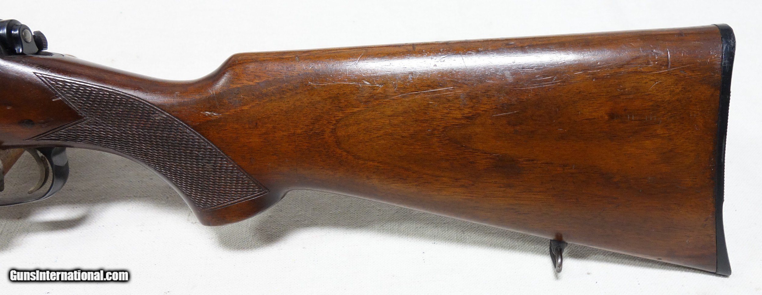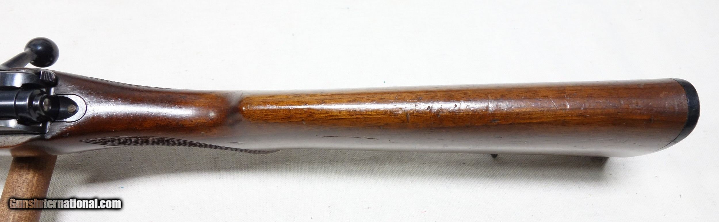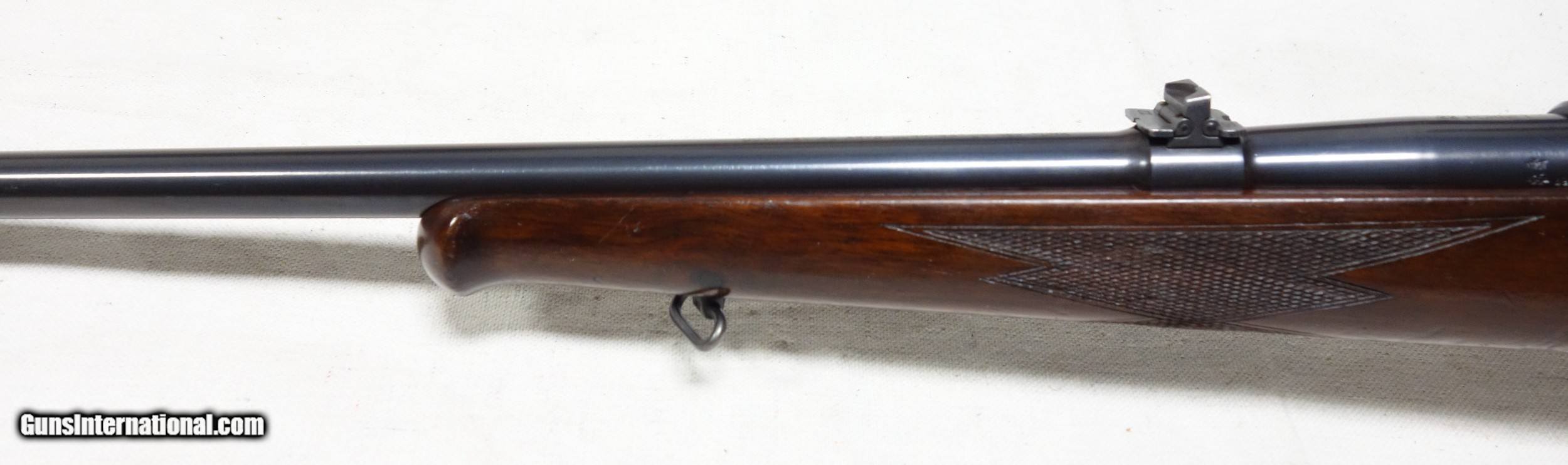 Description: The BRNO ZKW 65 22 Hornet...For me, the finest 22 Hornet sporting rifle ever produced when factoring style, grace, and quality of construction. These rifles are simply incredible and a joy to behold and use. S/N 16490 with matching component #s produced in 1949 and imported by Continental Arms Corporation of New York. This rifle is completely original and has never been altered, drilled on, refinished, etc. The condition is excellent showing 97% Blue and wood finish in the lower 90's% due to some light-moderate handling marks but no cracks or deep gouges. The mechanical function and bore condition are excellent. The chamber has never been reamed to K. Special features of this unique rifle include beautiful stock lines and feel with a sculpted schnable foreend tip, 3 leaf express rear sight for 100,150, 200 yds., double set precision hair trigger, double square bridge receiver with integral dovetails for claw mounts, and original 5 shot magazine. A VERY difficult to find rifle in any condition and this one remains quite nice and ready to go to work! SOLD Curio/Relic: Yes |
