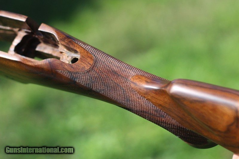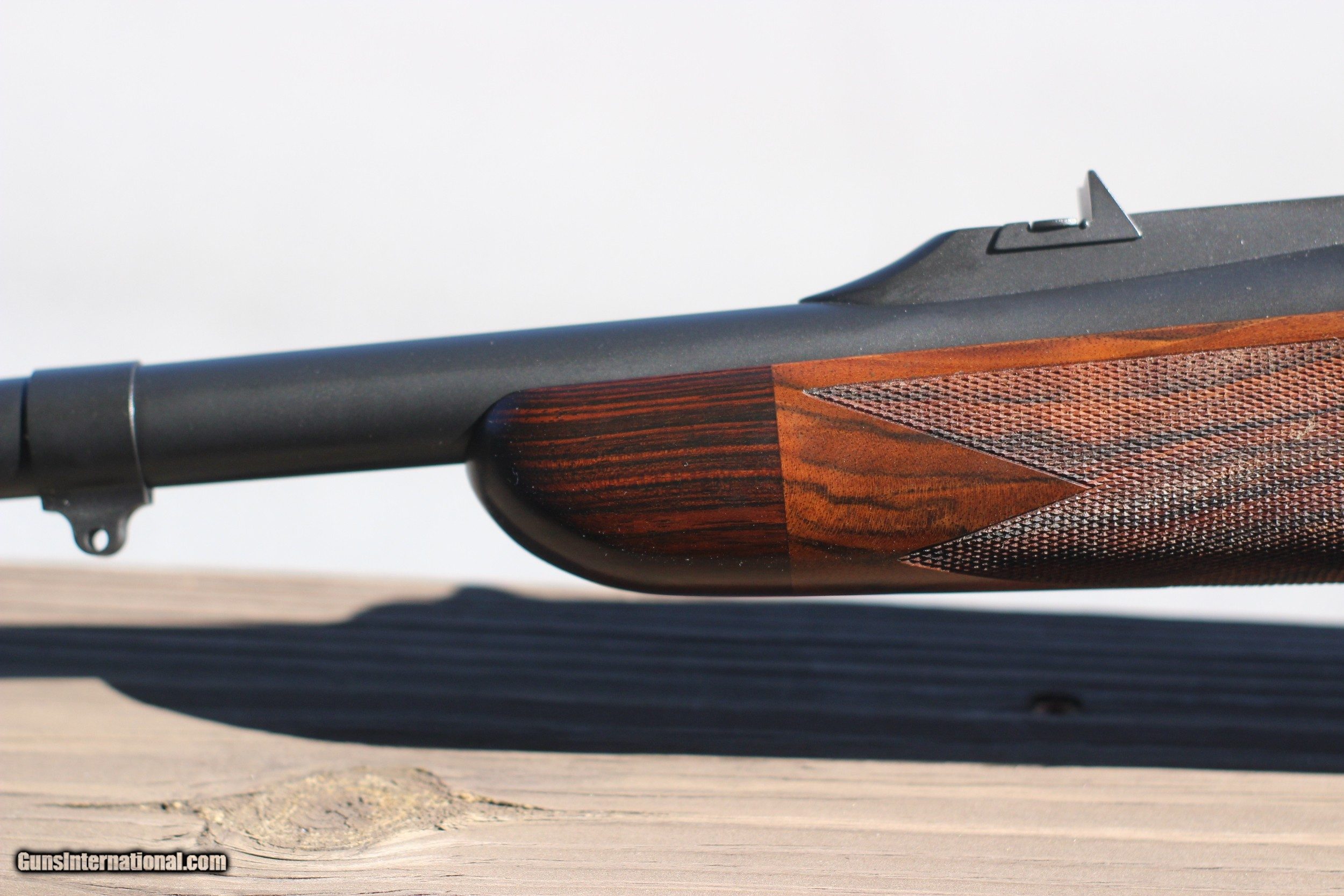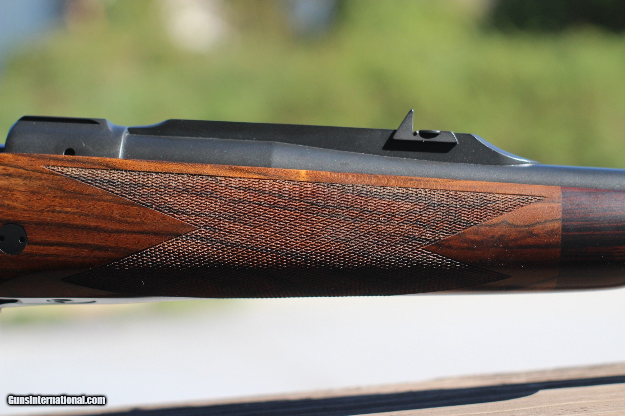 Description: Bolt action by AHR (American Hunting Rifle) 26 " medium taper round barrel with quarter rib Banded express front sight & 1 standing , and 1 folding Custom 5 shot drop box Reworked doublesquare bridge CZ action Qberndorf style bolt knob and 3 position model 70 safety Well figured strong English walnut stock in the classic British style , with layered back grip ,& short forend with rosewood tip Double crossbolted 2nd recoil lug on barrel Stocked to the irons or low mount scope Well balanced safari rifle in near NEW condition 9 lbs 6 oz. 13 3/4 LOP over decelerator Qver $8500 replacement value $ 5995 SOLD |