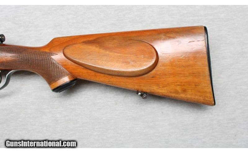 Description: CZ-Brno Model 21h chambered in 8x57s Mauser. This bolt action rifle has the import mark on the left side of the barrel reads "MADE IN CZECHOSLOVAKIA / 7.9". The top of the barrel shank is marked "8 x 57S". The barrel Length is 24 inches. The front sight is a beaded blade atop a ramped base. The base is checkered to reduce glare. The 2-leaf rear sight is dovetailed to a base that is set atop the barrel. The hardwood stock has a pistol grip, plastic grip base, raised cheek piece, Schnabel style forend, checkering on the grip & forearm, sling loop under the butt and a hard plastic buttplate. The stock has many minor marks and there are no chips or cracks on the stock. The LOP measures 14 ½ inches from the face of the front trigger and 13 ¾ inches from the face of the rear trigger to the back of the buttplate. The bore is bright, and the rifling is deep. There is no erosion. The action functions correctly. This BRNO Arms Model 21H is chambered in the hard-hitting 8x57S cartridge. It has double set triggers and a butter knife bolt handle. 8x57mm Mauser SOLD Metal Condition: Execellent Wood Condition: Good Bore Condition: Bright Barrels: 24 Inches Triggers: Double set trigger Stock Dimensions: 14 1/2 Inches Fore End: Checkered walnut Butt Pad: Plastic pad Sights: The front sight is a beaded blade atop a ramped base. The base is checkered to reduce glare. The 2-leaf rear sight is dovetailed to a base that is set atop the barrel. Item Location: La Vista, NE |