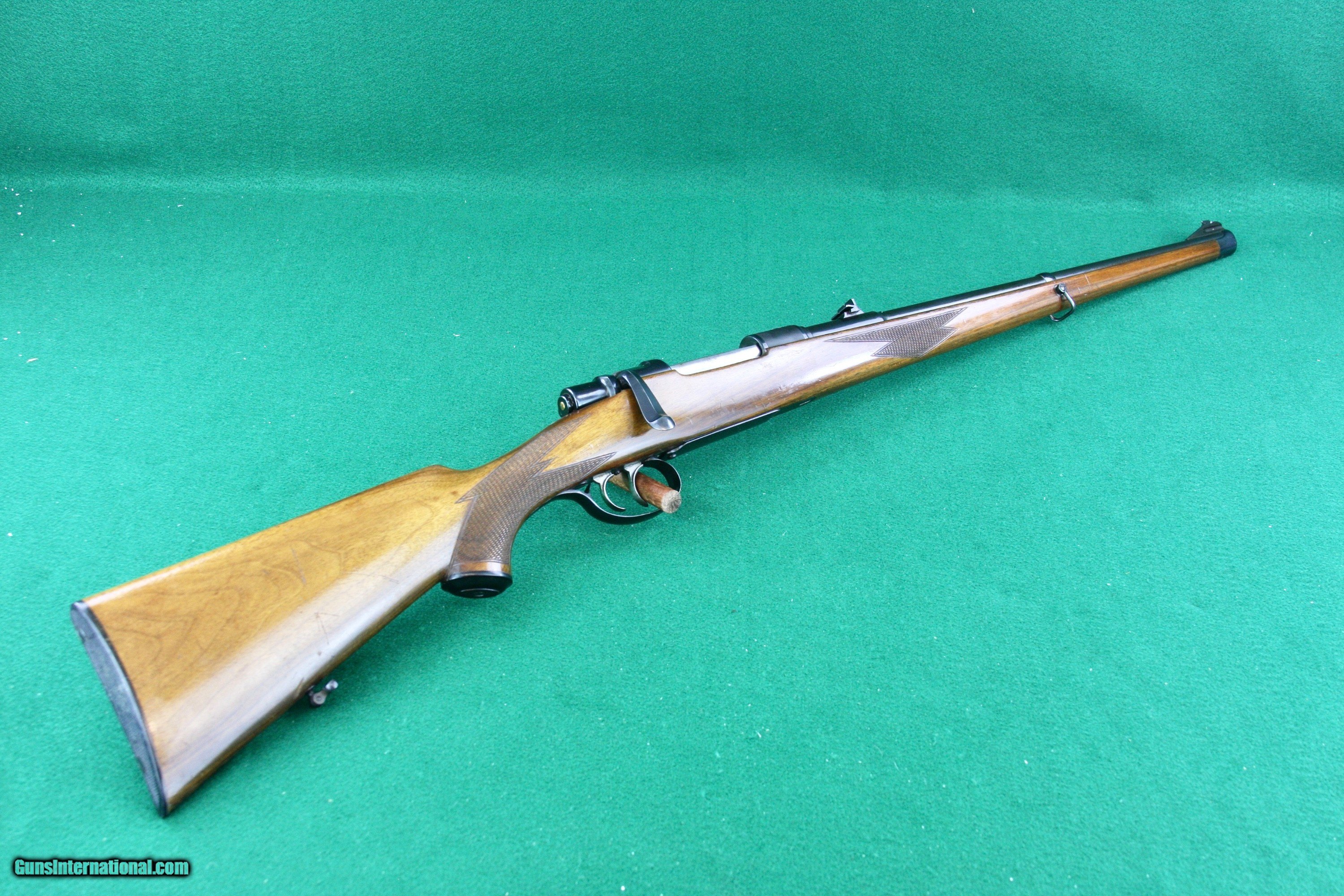 Description: Here is an uncommon, clean BRNO, not drilled, and all original. These BRNO’s are true classics, known for quality, great handling and superior accuracy. Features include butter knife bolt handle, double set triggers, folding two leaf rear sight, steel fore end cap and the very desirable 7 X 57 cartridge. Has some very light handling indentations which show in reflected light as seen in the photos. Appears to have been shot little, as indicated by the bolt face and general condition. Manufactured 1948. Matching bolt. Hard to find in this condition. See the pictures for condition. Happy to talk, text or email any time. Let me know if you have any questions. Thanks for looking! 8111468 BKCE 2H If your preference is Walnut & Blue, check out my other listings for quality Traditional and Custom Firearms. SOLD Rifle Caliber: 7x57mm Mauser Manufacturer: CZ BRNO Model: 22F Serial Number: 18774 Barrel Length: 21 Condition: EXCELLENT W/minor handling marks Metal Condition: EXCELLENT Wood Condition: Excellent w/minor handling marks Bore Condition: EXCELLENT Action: BOLT Action Triggers: DOUBLE SET Stock: CHeckered Walnut - MANNLICHER Butt Pad: FACTORY CHECKERED PLASTIC LOP: 13-1/2";- 14-1/2 Finish: Satin Stock/deep blue metal Weight: 6 LBS 9 OZ Sights: DOUBLE FOLDING LEAF REAR/RAMP BEAD FRONT Manufacture Date: 1948 |