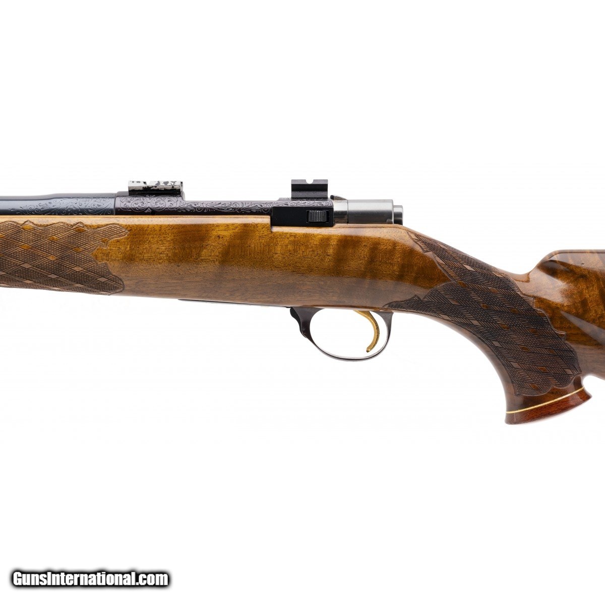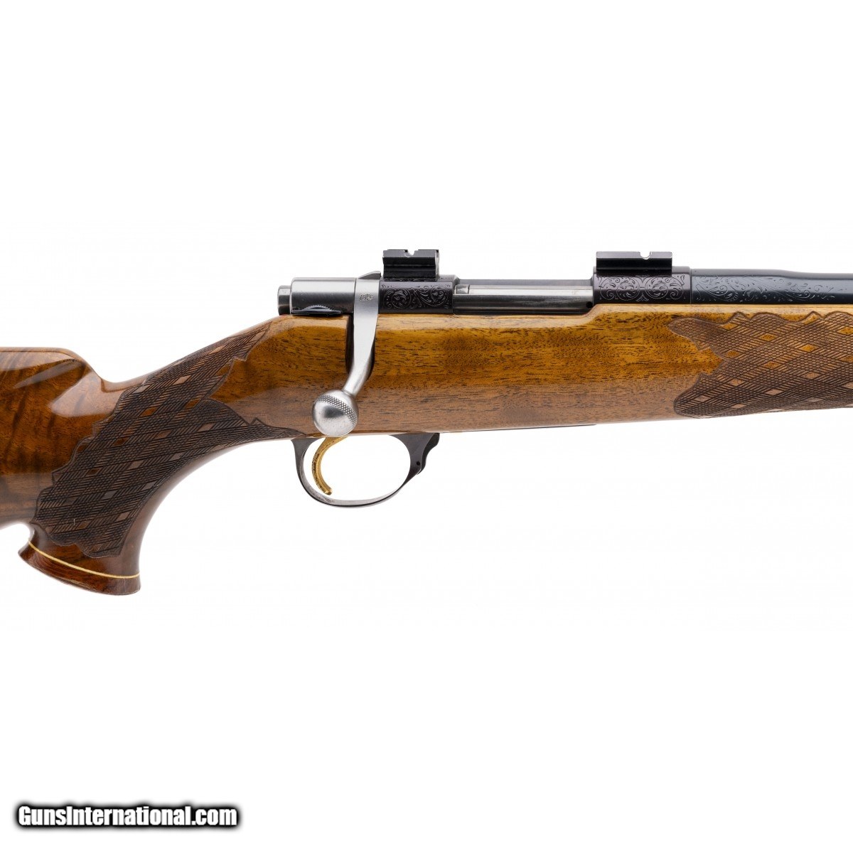 Description: " SN: 5783A7. Made in 1967. .222 Rem mag with a 24"" barrel. Bore is in very good condition. Belgian made deluxe bolt action Medallion grade rifle with Mauser action. Finish and deluxe wood stock are in very good condition with light handle wear. Overall condition is very good. CONSIGNMENT SOLD Curio/Relic: Yes |