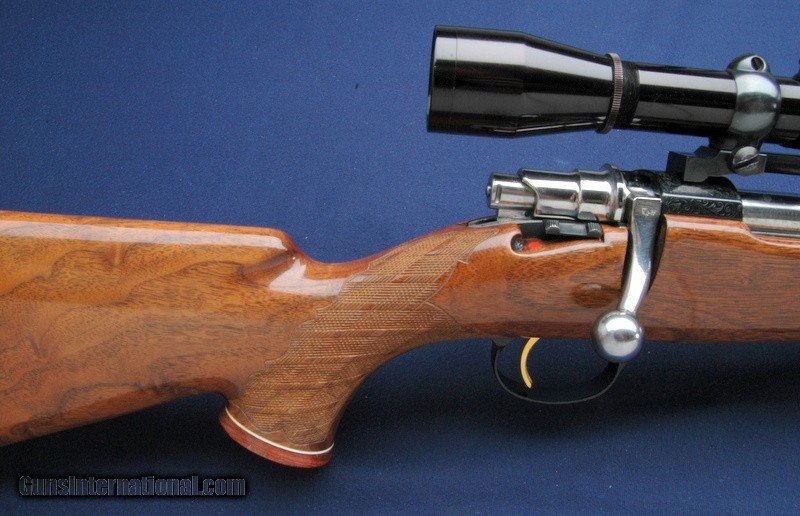 Description: Lovely rifle recently brought in by one of our best customers, this lightly used Browning Medallion is a sweetheart. 7mm Rem Mag caliber, 24" barrel, superb trigger, maybe a touch over 2 lbs. It wears a Leupold M8 7.5x optic in Buehler mounts with a simple crosshair reticle. Made in Belgium of course, the serial number leads with 3X 21xxx. Mint bore. It has been hunter, there a a number of small digns and dents overall on the stock, also some high edge wear around the trigger guard. Original blue, nicely engraved. In order to protect your investment, all long guns over $500 must be shipped in a hard case. Minimum shipping at this level is $55 and includes the hard case. Shipping cost could increase depending on value or weight of the firearm. For long guns less than $500, we still recommend the purchase of a hard case, again to protect your investment. These numbers are for shipping to the lower 48. There is also a 3% surcharge for customers using a credit card on internet sales. If you choose to pay with a personal check, we will hold the item for up to 10 days to ensure that it clears. We will hold an item on your word for 5 days. Thank you! SOLD |