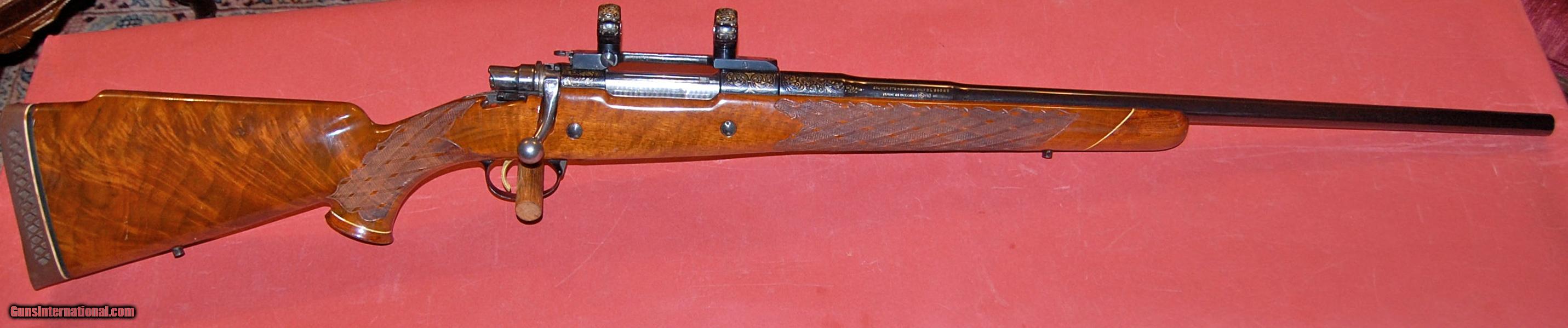 Description: Belgian Browning Medallion grade in 375 Holland and Holland.Built in 1966,this rifle has the long claw extractor.It retains 98% of the original blue and 95% of the original wood finish.The barrel is clean with no sights from the factory.It has a one piece Redfield base and engraved rings installed.The bore is bright and clean with no rust or pitting.The highly figured wood has a few light handling marks,but is sound with no cracks or damage.The rifle is guaranteed to be salt free.C&R eligible. SOLD Curio/Relic: Yes Manufacturer: Browning (FN) Model: Medallion Serial Number: 6x36588 Caliber Info: 375 H&H Metal Condition: excellent Wood Condition: excellent Bore Condition: excellent Action: bolt Manufacture Date: 1966 |