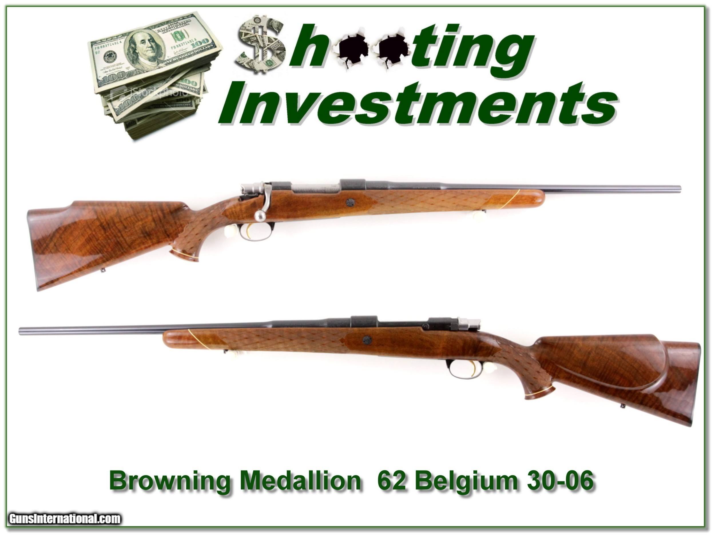 Description: Collectors and high-end hunters, this is a beautiful Browning Medallion Grade made in Belgium in 1962. It is of course well before any saltwood issues. This one has outstanding wood (even nicer than my pictures show). This one is as new and I believe unfired. It will make a fine addition to your collection. Shipping with insurance is $49. Please email me with any questions or larger pictures. (Consign your quality firearms with Shooting Investments for only 12%! Let me know if you have any you would like to sell!) 19-1032 Payment: Payment is by Money Order, Cashiers Check or Personal Check. I can now also accept Credit Cards (MasterCard, Visa, Discover & American Express) with a 3% convenience fee. PayPal can be used for some items but never for firearms. Shipping: The shipping charge will be listed in each description. It is $39 for most firearms. Some heavy guns or those insured for over $2000 will be higher. Shipments to Alaska and Hawaii are higher because air shipment is required. Most firearms are shipped on Tuesday and Thursday and usually in 5 days of receipt of payment. We package all shipments carefully and insure them. Optics are shipped Priority Mail and most other non-firearm shipments are shipped First Class. Returns: Our return policy is simple. If for any reason you are not pleased with your purchase, you may return your item for a full refund of purchase price. Ammunition cannot be returned. It is important to us that you are happy. Guns cannot be fired or dissembled before returning them and they must be returned in the same condition as received. Notification of a return must occur with-in 3 days of receipt at your dealer. Shipping, convenience and dealer fees are not refundable and are the responsibility of the buyer. Lay-a-way: If needed, we offer a 60 day lay-a-way option on most firearms. It is 1/3 now, 1/3 in 30 days and 1/3 in 60 days. Lay-a-way firearm sales are final and if not completed the first payment cannot be returned. Consigning your firearms with Shooting Investments: We will help you get top dollar for your firearms. While most local guns shops charge 20% or more, our fee is only 12% with a minimum of $75. At your local gun shop it might take months to sell. Selling on-line provides instant access to thousands of interested buyers. You won’t find any other on-line dealer willing to sell your firearms for only 12% or listing every gun on 3 separate s. Selling through an House typically costs the seller 15% and the buyer an addition 15% (so 30%) and you have to wait several months to sell and longer to receive funds. If properly priced, we will sell your firearms in a few weeks. Send us an email or give us a call and we’ll explain how easy it is for you to get top dollar. Trading: Trading for use is really just buying your gun to re-sell. If you have a gun you want to trade, please email a picture and we will let you know what we can give or it. You will always get more if we sell it for you on consignment. Help for California Buyers: We are happy to ship to California. It is the buyer’s responsibility to make sure any item you buy is legal in your state. We are also happy to help with your purchase of a firearm from someone other than us. If you see a gun you would like to buy but the seller can’t or won’t ship to California they can ship to use and we’ll then ship it to your California dealer. The cost for this service is only $30 + shipping. Let us know if we can help! SOLD |