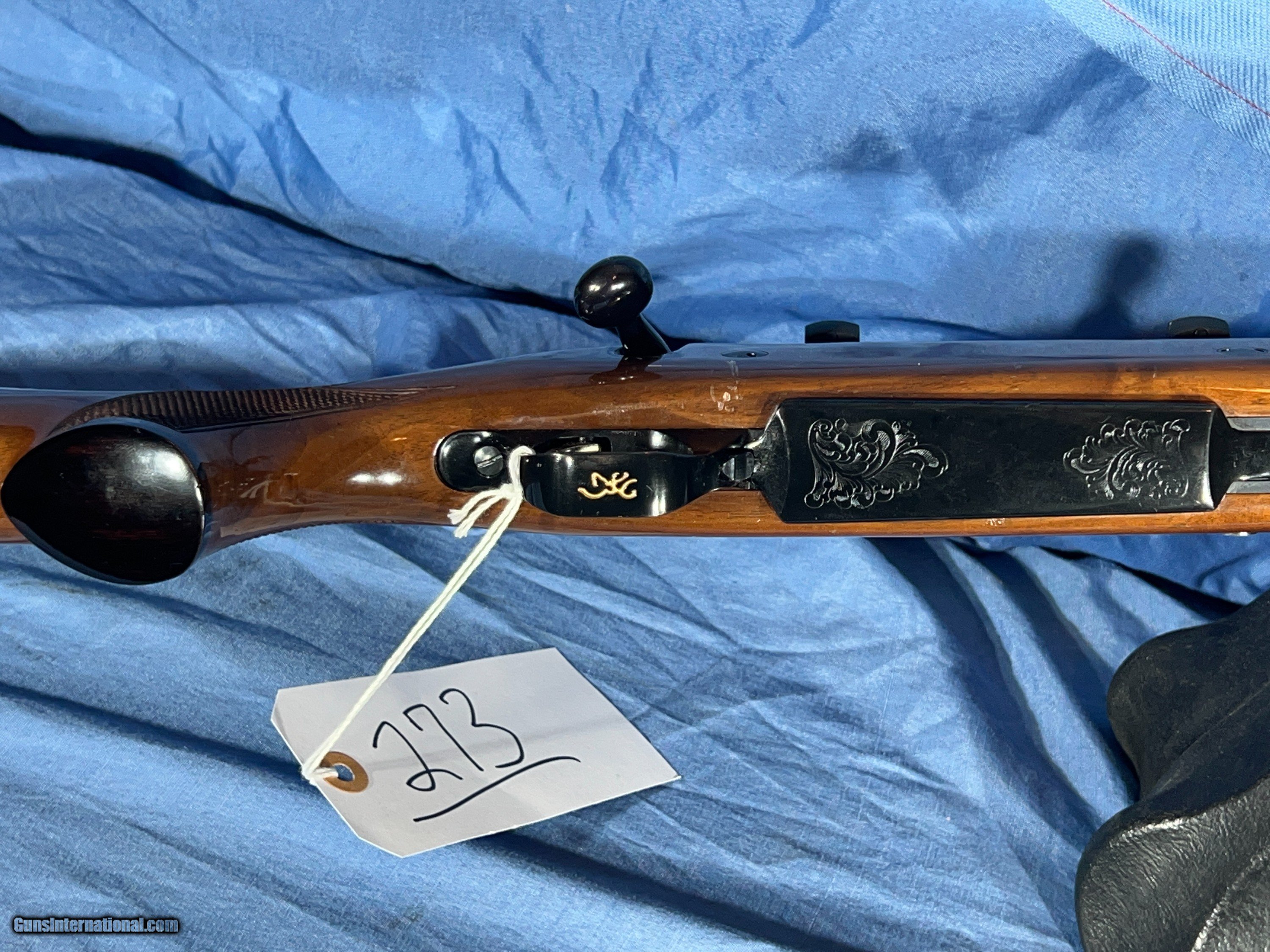 Description: FOR SALE IS A BROWNING A BOLT MEDALLION RIFLE CHAMBERED FOR THE .375 HOLLAND & HOLLAND MAGNUM CARTRIDGE. THE BROWNING A BOLT FEATURES A 26 INCH MEDIUM/HEAVY WEIGHT BARREL WITH OPEN ADJ. SIGHT, 3 SHOT DETACHABLE MAGAZINE., TANG MOUNTED SAFETY,SCOPE RINGS AND MOUNTS IN PLACE. THE RIFLE FEATURES A VERY SMOOTH AND STRONG MULTI-LUG A-BOLT ACTION, WITH A CRISP TRIGGE PULL. THE NICELY FIGURED WALNUT STOCK FEATURES HAND CUT CHECKERING WITH FACTORY RECOIL PAD. BROWNING RIFLES ARE MANUFACTURED BY THE MIROKU CORP. IN JAPAN AND ARE FAMOUS FOR QUALITYOF CRAFTSMANSHIP AND ACCURACY.THE RIFLE IS IN EXCELLENT FUNCTIONAL MECHANICAL CONDITION AND SHOWS NORMAL WEAR ON THE STOCKS FINISH, THE BLUED METAL PARTS ARE IN VERY GOOD CONDITION. FROM MY COLLECTION QUESTIONS -504-908-8245, MORE PHOTOS AVALIABLE, 3 DAY EXAM PERIOD, FFL REQUIRED FOR TRANSFER, LAWAWAY AVAILAB;E.PRICE $1,800-OBO. SHIPPING/INSURANCE-$75.00. SOLD Rifle Caliber: .375 H&H Magnum Manufacturer: BROWNING Model: A-BOLT-MEDALLION Serial Number: 21744NY217 Bore: BRIGHT/CLEAN Condition: VERY GOOD Metal Condition: EXCELLENT Wood Condition: VERY GOOD Bore Condition: EXCELLENT Barrels: ROUND Barrel Type: ROUND/HEAVY Stock: AMERICAN WALNUT Butt Pad: FACTORY Weight: 9.5 LBS Sights: ADJUSTABLE Engraving: FACTORY Item Location: LOUISIANA |