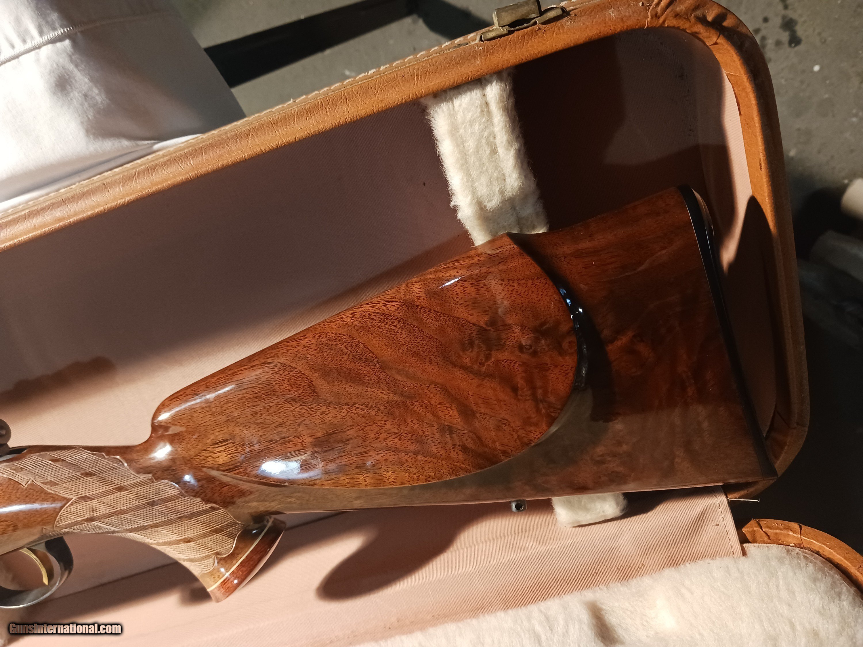 Description: Never liked writing ad that blows smoke up someones butt like some guys do so I'll get to the heart of hit. A one owner safe queen medallion in 270 with mauser action. Bought new in 1970 added a scope put it in the safe and there it sat except for the annual cleaning routine, Has some minor marks when held just right in the light. Hard butt plate superb blue extra nice wood work on it. Compare others on GI that have use marks and pads and if you're looking at this you're probably buying it. Not 4995 not 4895 or even 4795. Plus shipping of course SOLD |