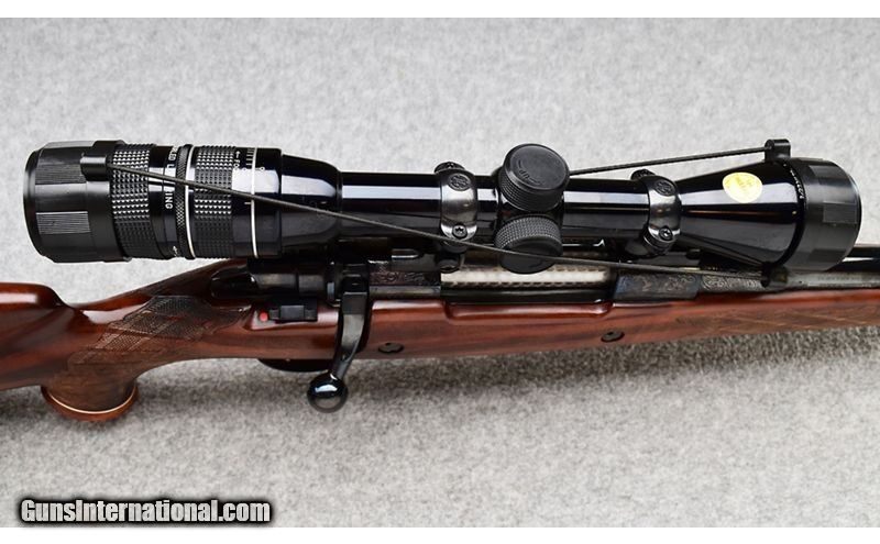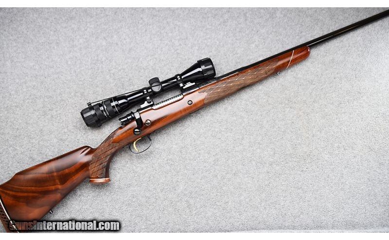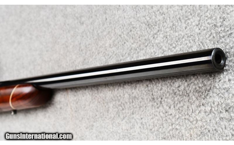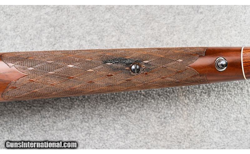 Description: This Salt Era gun has been professionally restored and remains in excellent condition. Wood is beautifully figured and wonderfully skip line checkered. Bottom Forend has a large area around screw that has been damaged and turned black. There is a small v shaped scratch on bottom left buttstock behind sling swivel stud. Blue retains its luster but there are a few places where you can see where salt damage has been repaired. Bore is excellent. Complete with a Weatherby Premier 4X40 Scope. Beautiful gun! 7mm Remington Magnum SOLD Metal Condition: Excellent Wood Condition: Excellent Bore Condition: Excellent Barrels: 24 Triggers: 3 LB Trigger Pull Stock Dimensions: 13 5/8" LOP Fore End: Double Skip Line Checkered High Grade Walnut with Rosewood Pistol Grip Cap and Forend Butt Pad: Browning Vent Rib Butt Pad Weight: 10lbs Sights: Weatherby Premier 4X40 Scope Item Location: Wheeling |