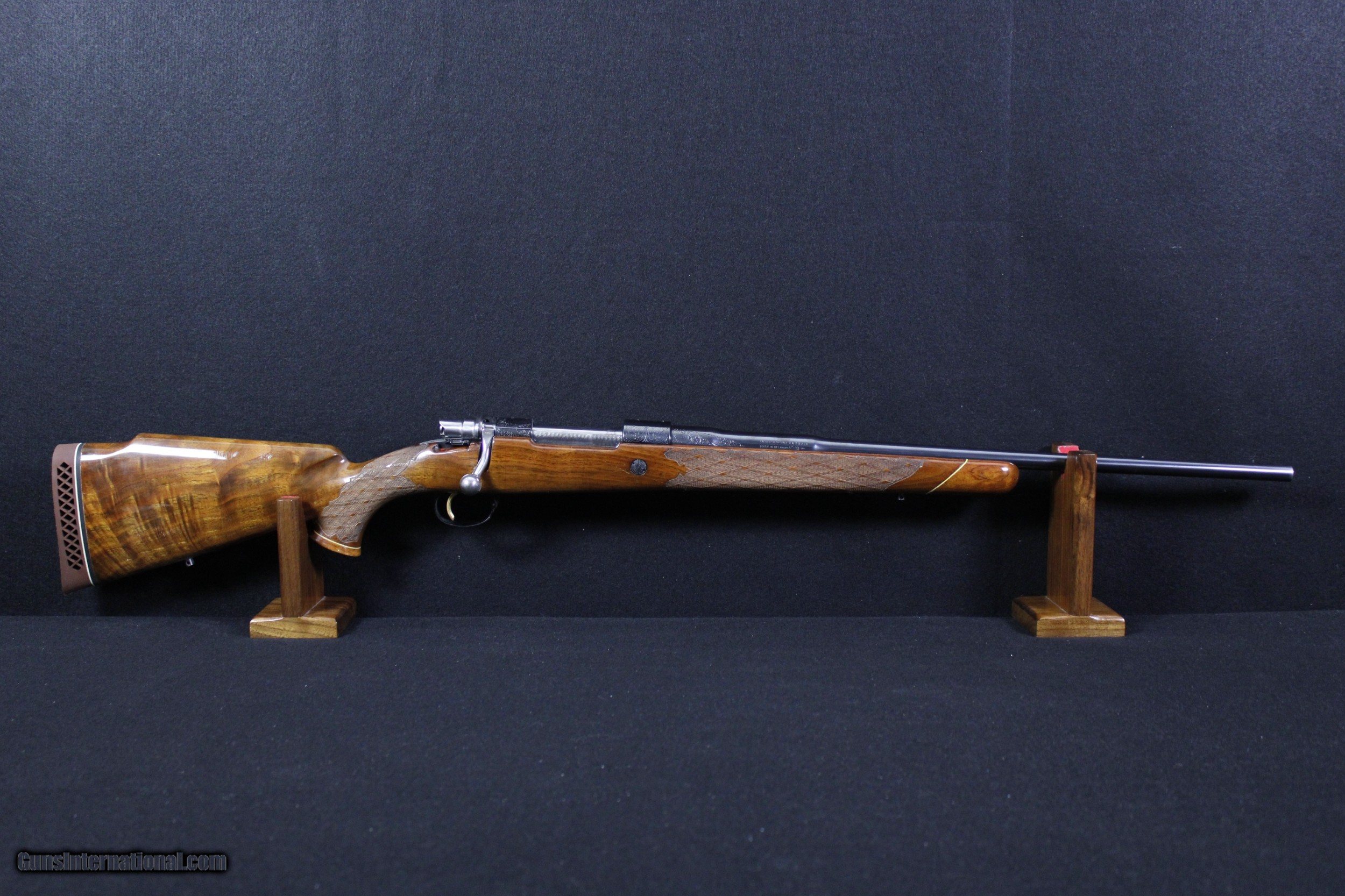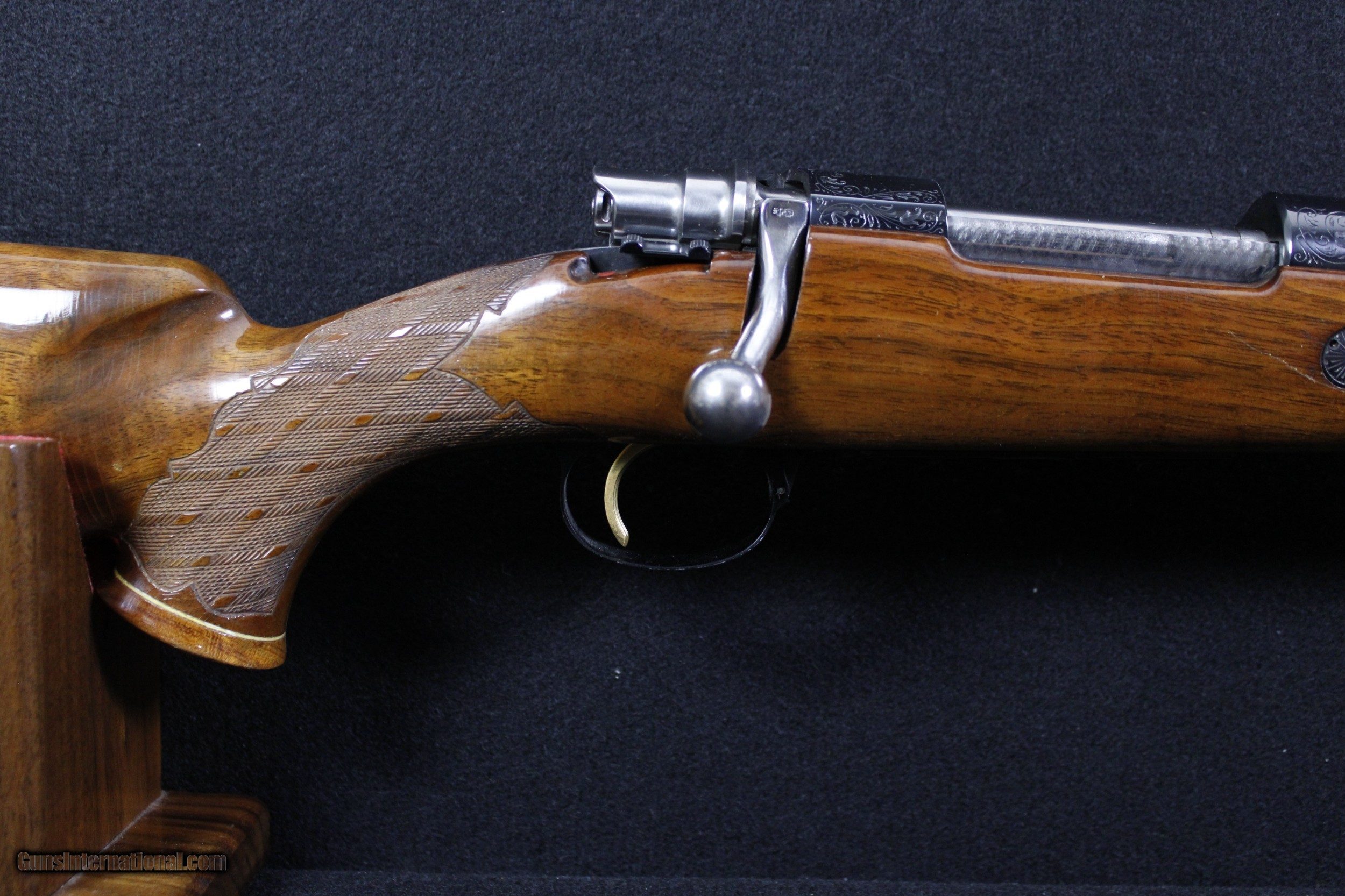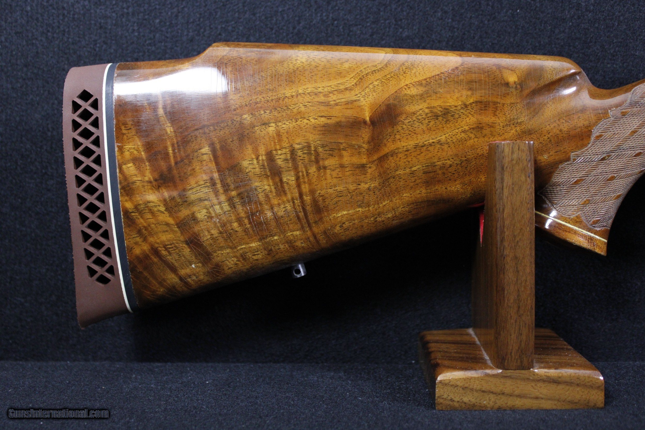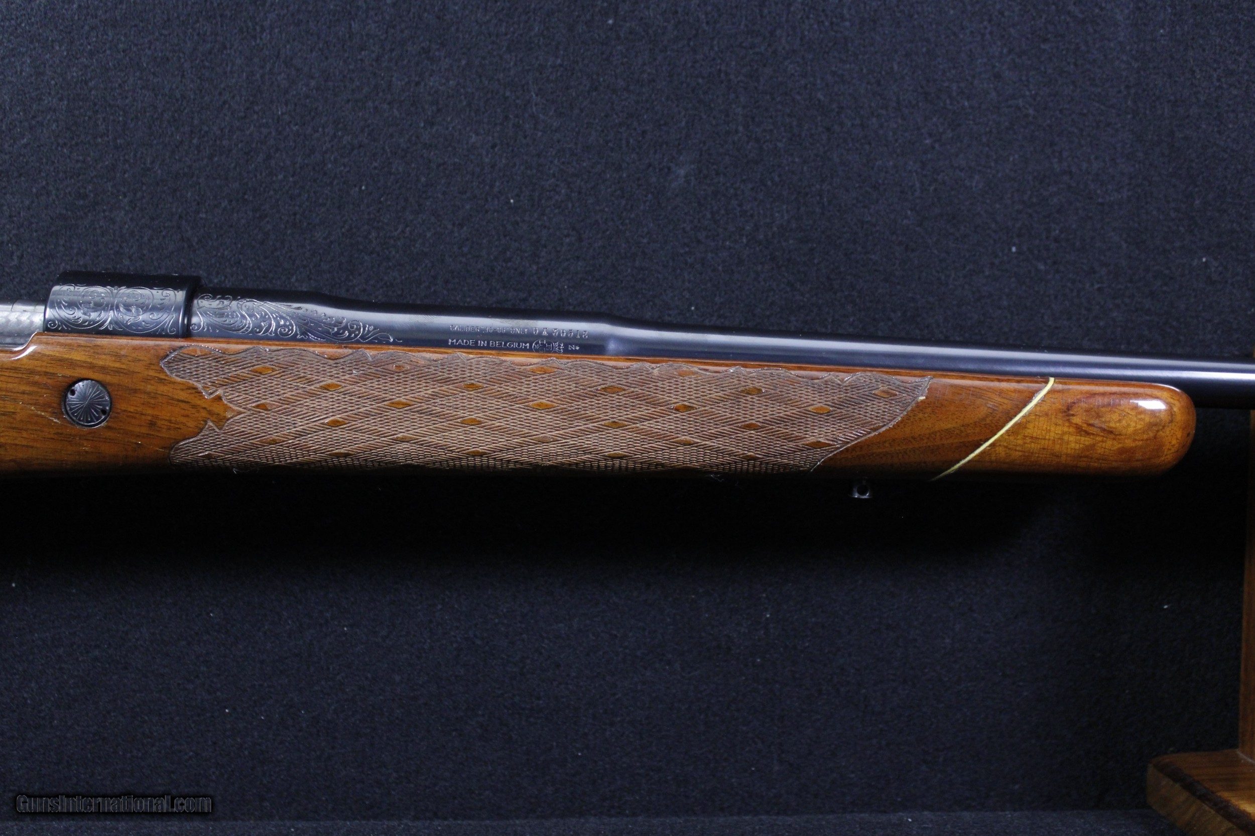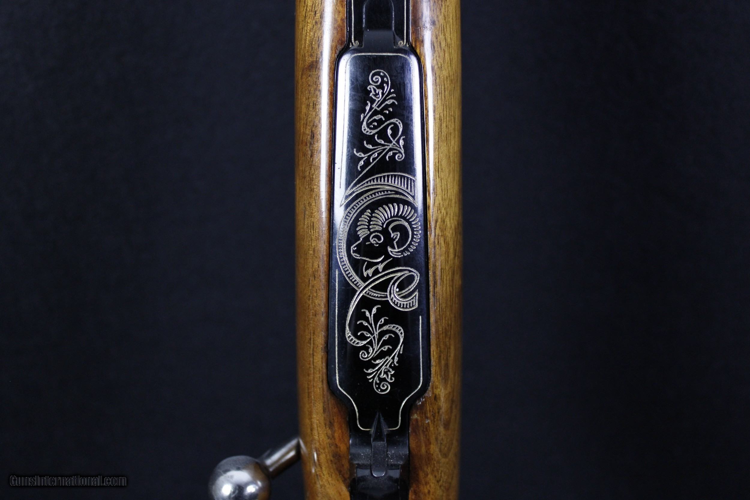 Description: Absolutely beautiful Browning Medallion chambered in 30-06. Manufactured in 1966 this rifle features the classic gold filled ram's head engraving on the floor plate and scroll engraving on the action, with grooved gold plated trigger. Wood stock shows minimal handling marks, no cracks or missing pieces. Bore is bright and clear with sharp rifling. Mechanically excellent. Comes with factory letter. Although in production for 15 years, it is estimated that only 5000-6600 rifles were produced making it a rare and very collectible variation. Dimensions are as follows: 14" L.O.P., 22" barrel and weighs in at 7lbs 14oz. On Sale!! Was $4995 Now $3999.95 SOLD |