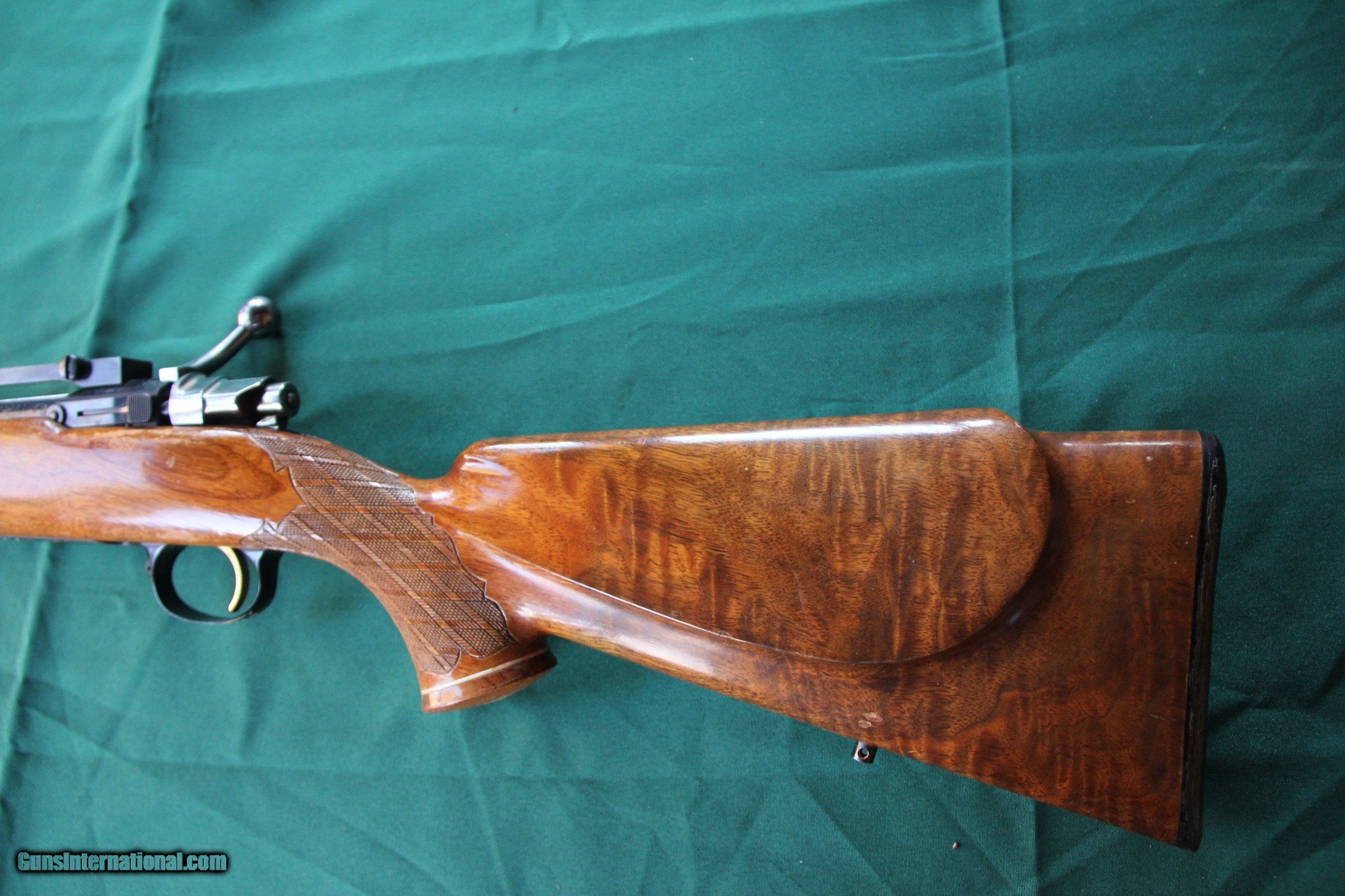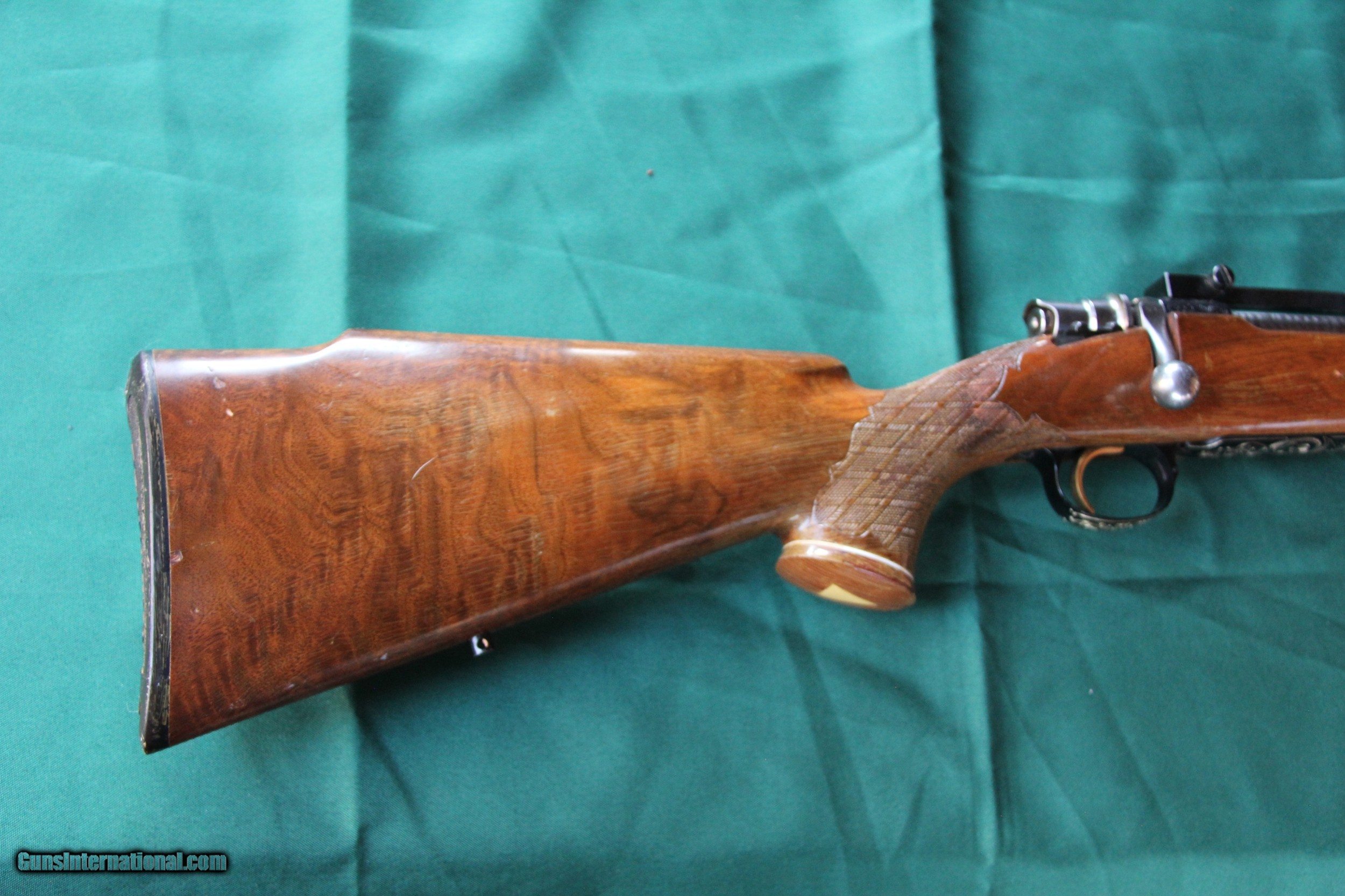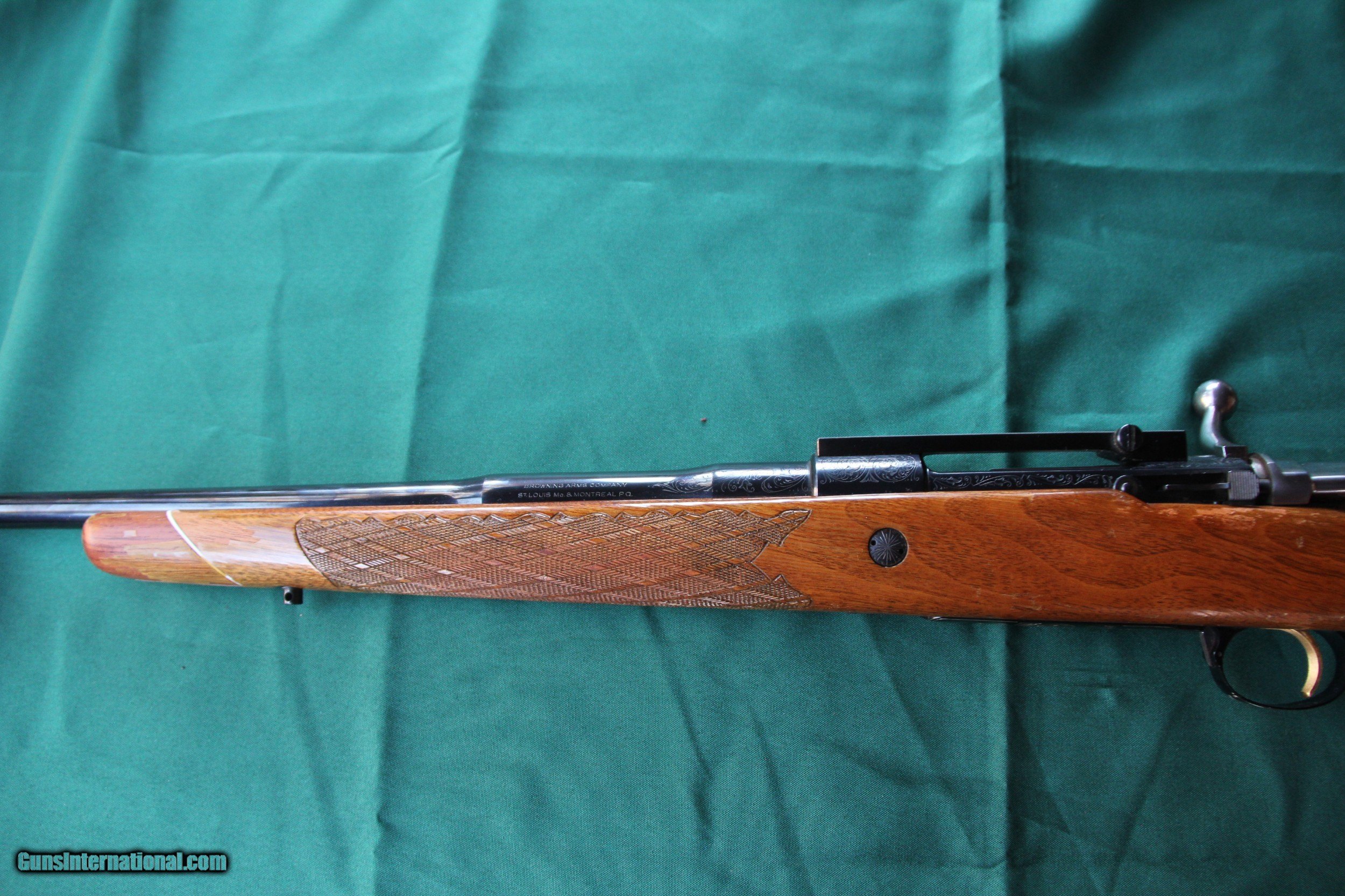 Description: Browning Medallion Belgium FN Action 30-06. The gun has been carried alot and the stock needs refinishing at Art's gunn shop. The metal is excellent encluding the bottom metal. Made before salt era 1X 5223. The bore is as new and the barrel is 23 inches long, possibly cut. I purchased this to ask Art refinish the stock and I was going to have my gun smith send the barrel to copy the barrel contour and have it chambered in 257 Roberts and have the engraving cut on the new barrel. Of course you can hunt with it as is. Shipping in a hard case $95.00 insured. SOLD Rifle Caliber: .30-06 Springfield Manufacturer: Browning Model: Medallion Serial Number: 1X 5223 Barrel Length: 23 Condition: Very Good Metal Condition: Excellent Wood Condition: Good Bore Condition: As new Triggers: Adjustable Sights: None |