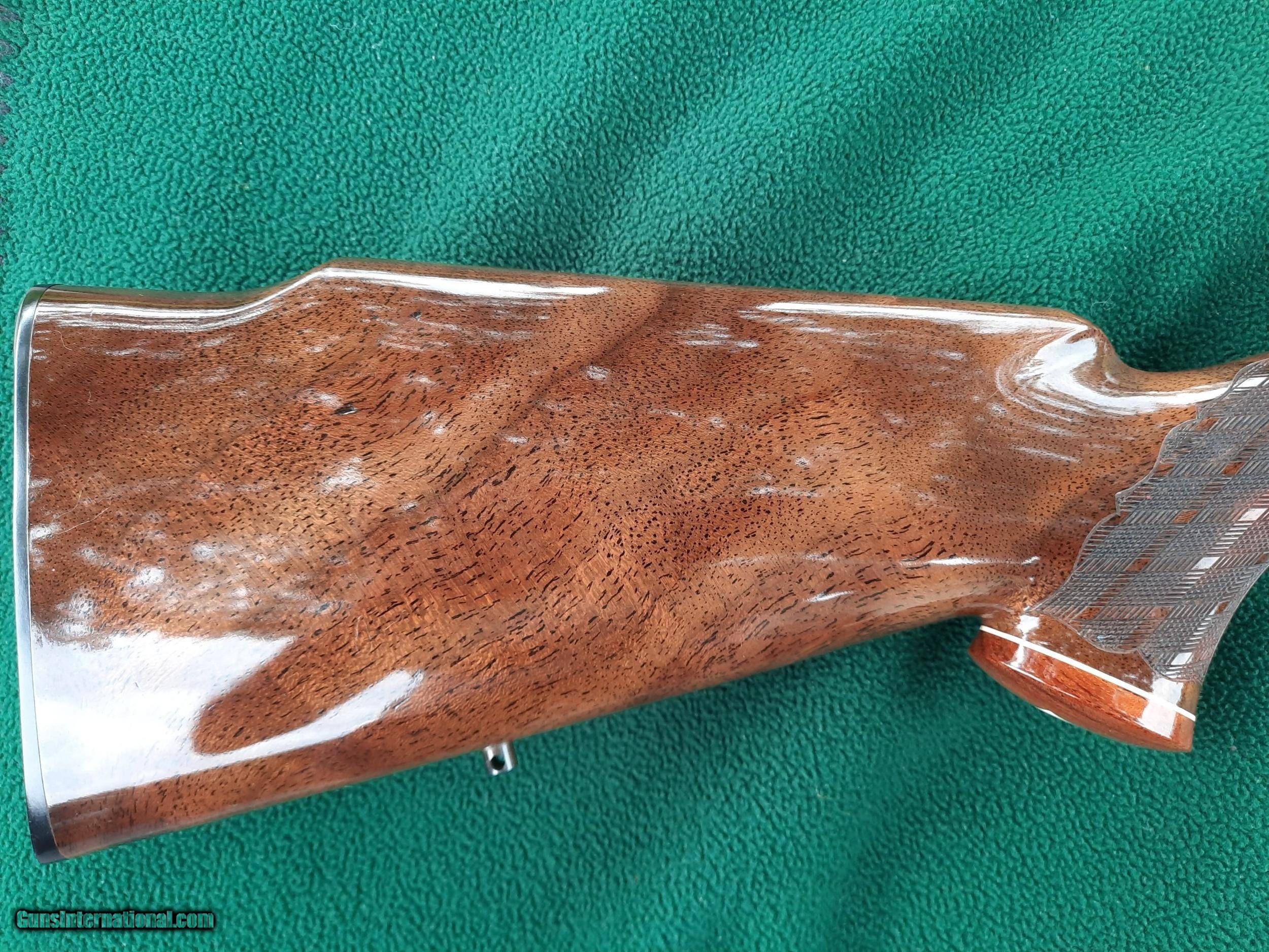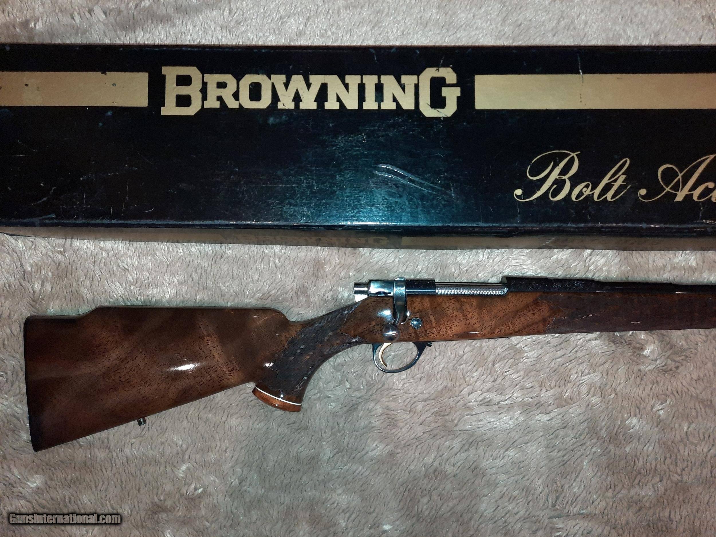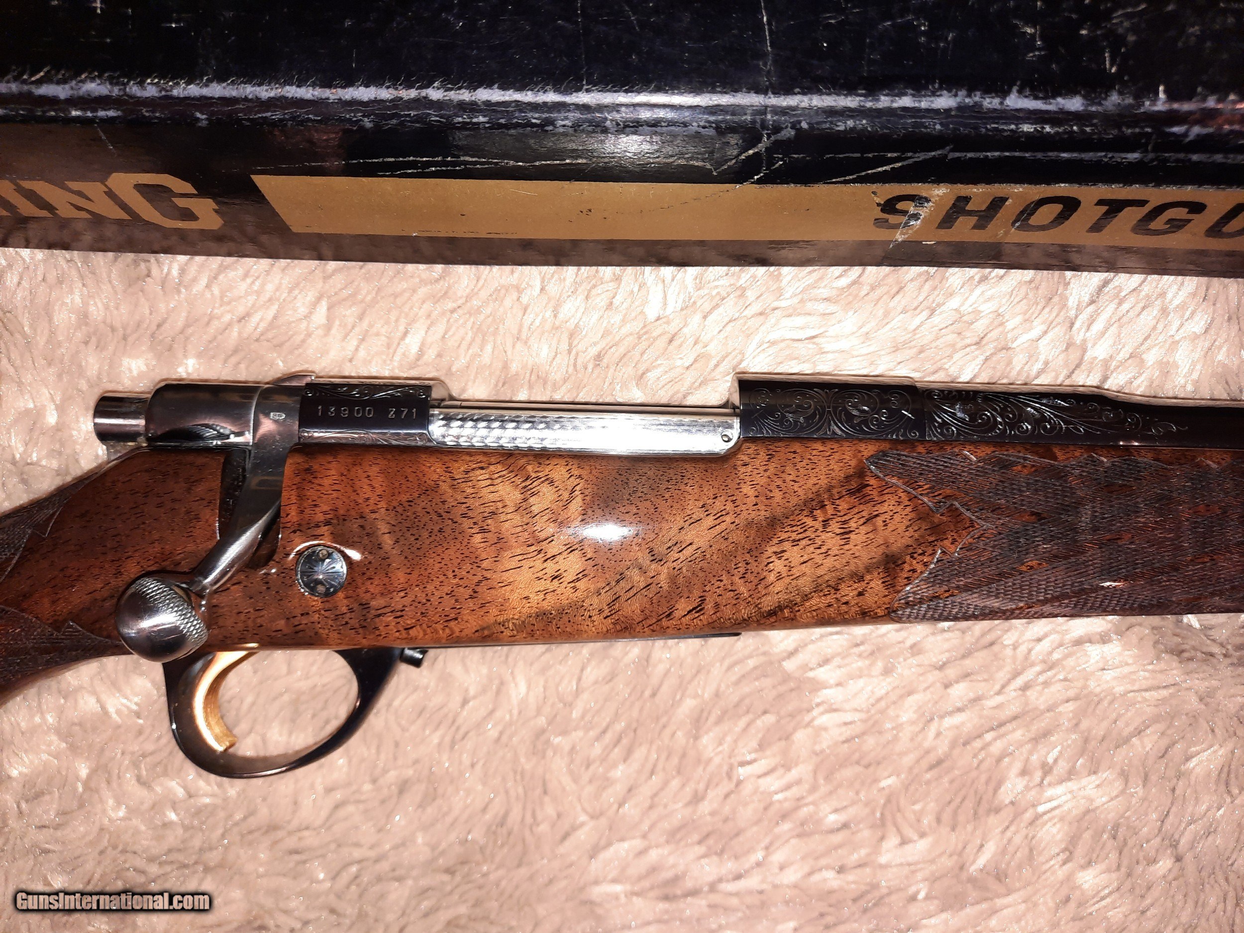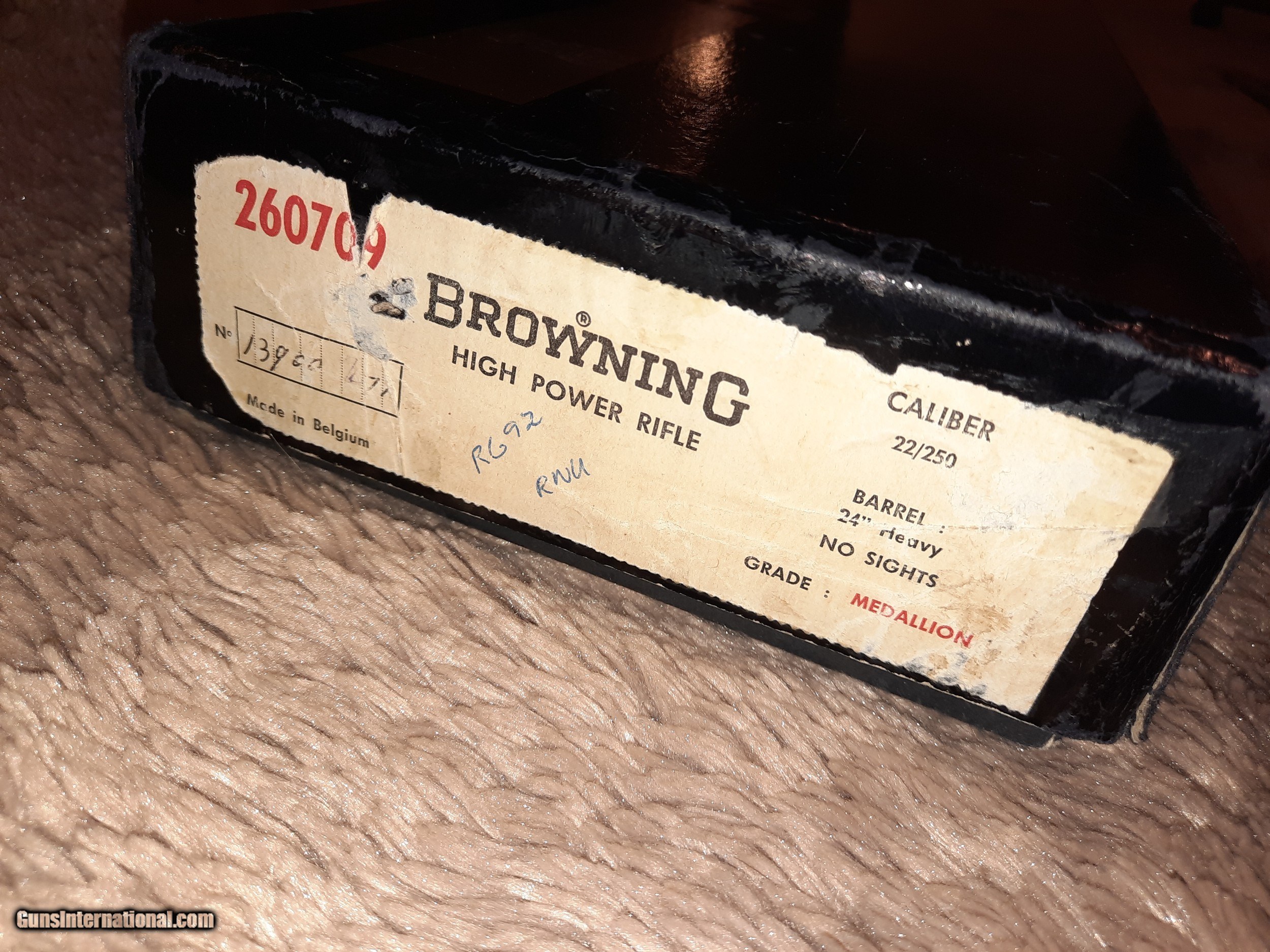 Description: Browning Medallion Grade 22-250 Heavy Barrel. 1971. Sako action, never been scoped, all original. This gun is mint with the exception if 2 small marks on the stock and a speck on the top of the barrel that will not photograph. Correct box. Beautiful rare gun. SOLD |