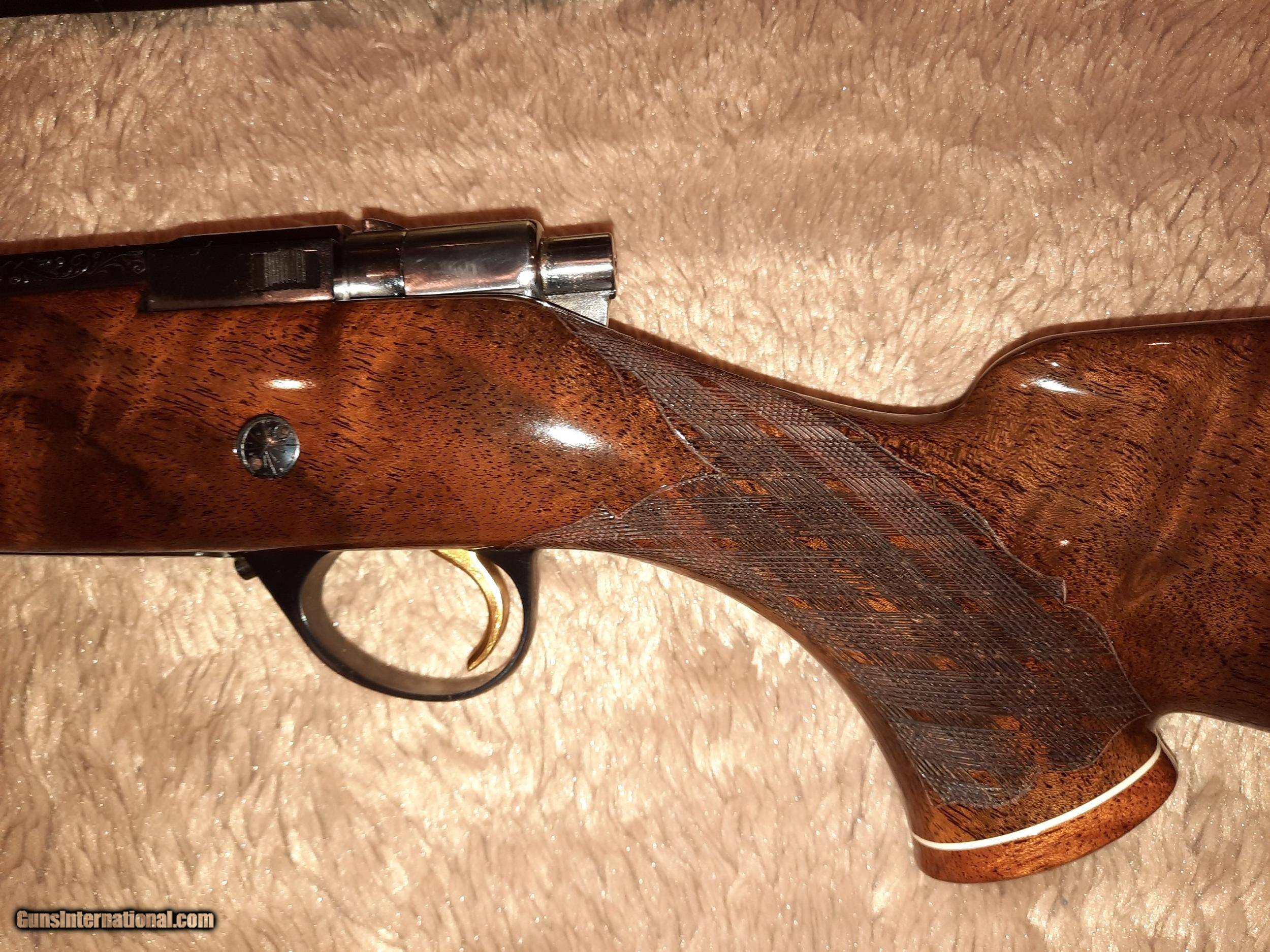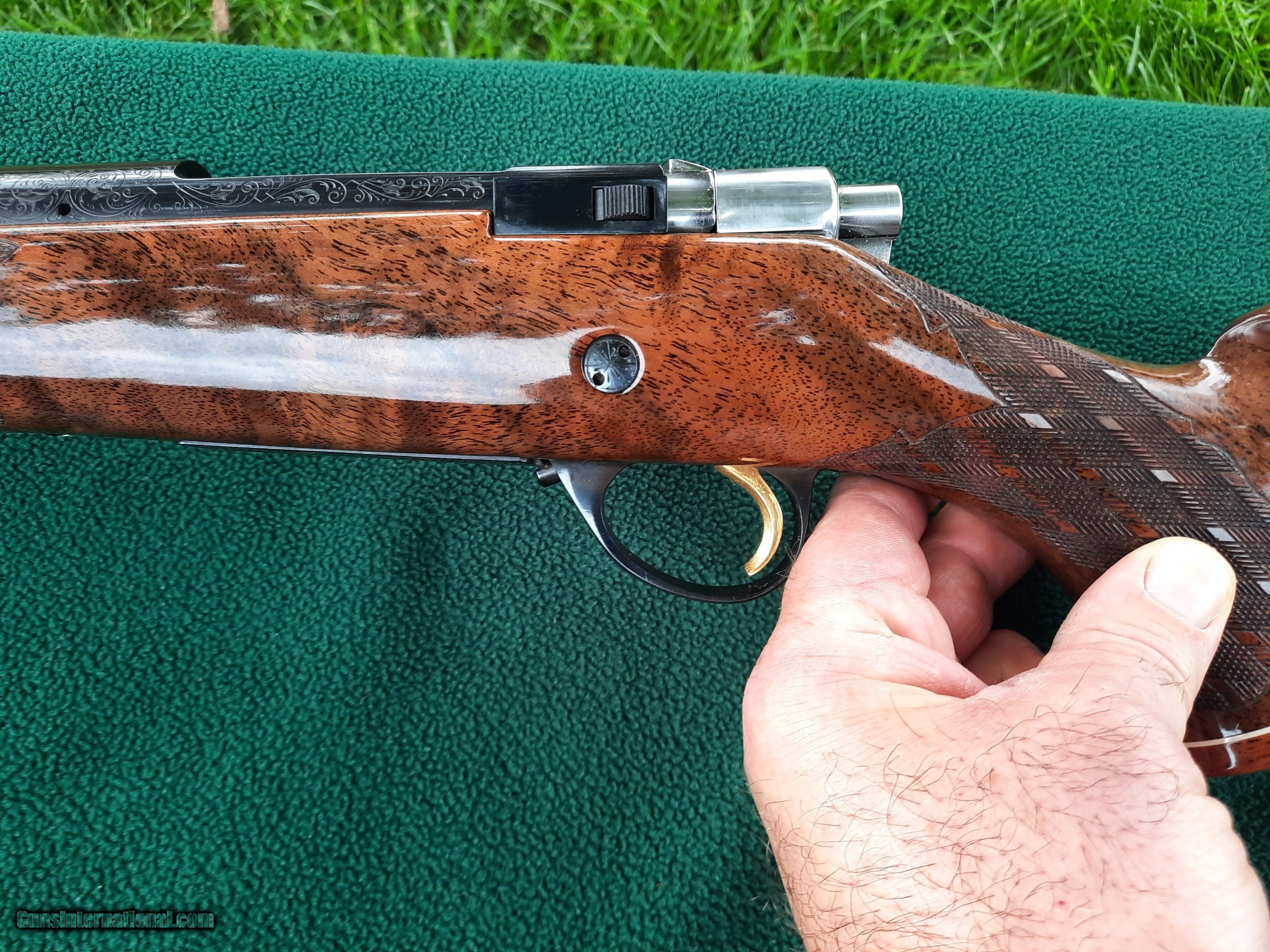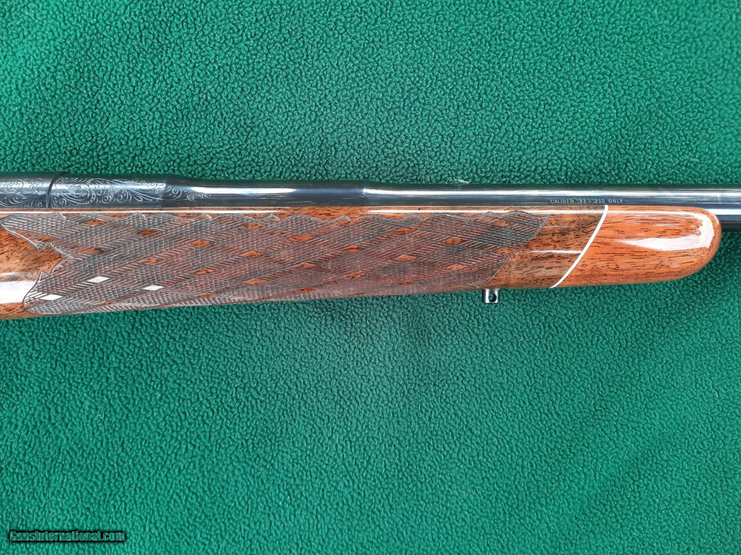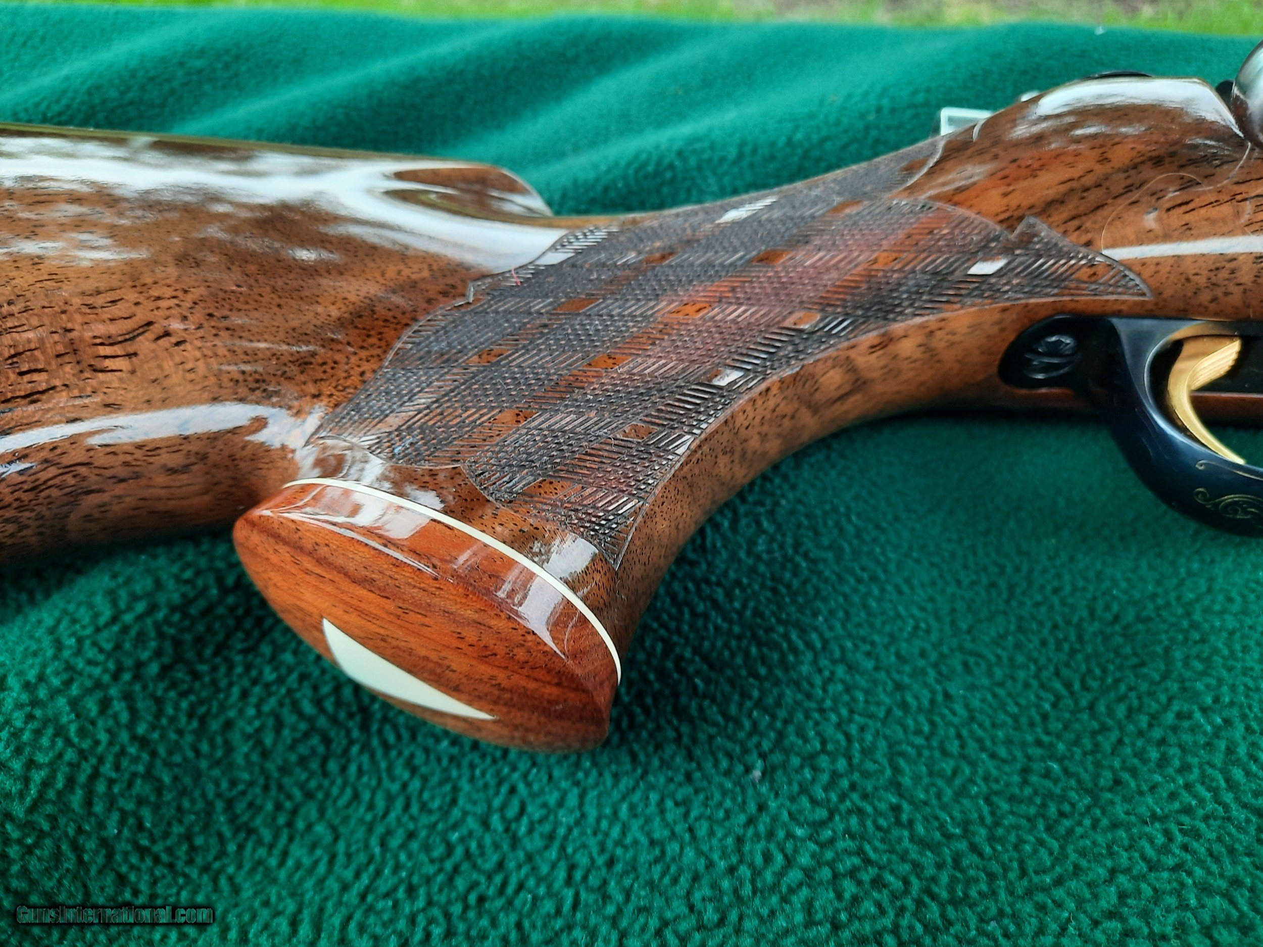 Description: Browning Medallion Grade 22-250 Heavy Barrel. 1971. Sako action, never been scoped, all original. This gun is mint with the exception if 2 small marks on the stock and a speck on the top of the barrel that will not photograph. Correct box. Beautiful rare gun. SOLD |