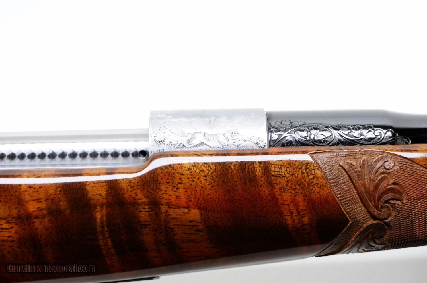 Description: Browning Belgium Olympian .22-250. NO SALT! Mint Condition In Original Box. DOM 1968 AVAILABLE FOR PURCHASE AT OUR ON-LINE STORE This Browning Belgium Olympian .22-250 Is In Mint-Collector Condition. Features The Finest Figured Walnut Stock, Hand Checkered 32-Line Pattern. Hand Carved Scroll. Rosewood Grip Cap fitted With 18-Carat Gold Medallion. Barrel Is Hand-Engraved Forward Of The Receiver And Magnificently Polished And Blued. Chrome Plated Receiver, Floor Plate And Trigger Guard In Satin Finish. Hand Engraved With Fox And Rabbit On Receiver By R. Grecco. Floor Plate Prairie Dogs And Trigger Guard Grouse Engraved By A.M. Gold Plated Trigger. With Original Box And Shipping Box SPECIFICATIONS