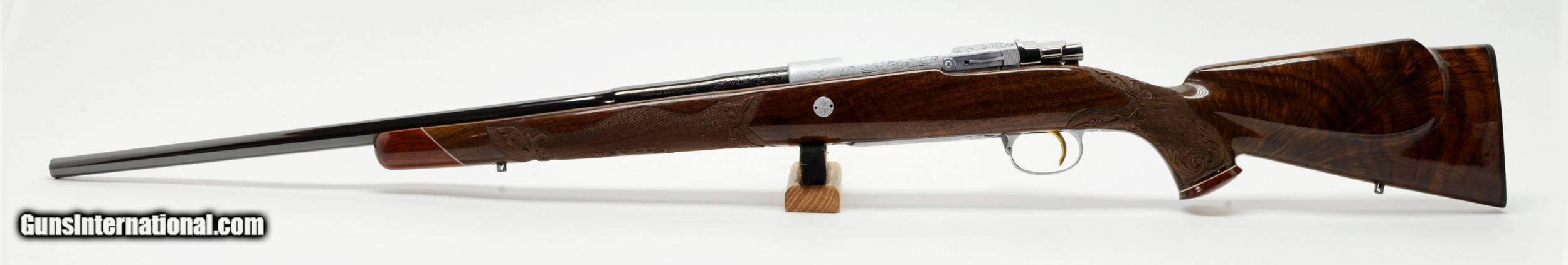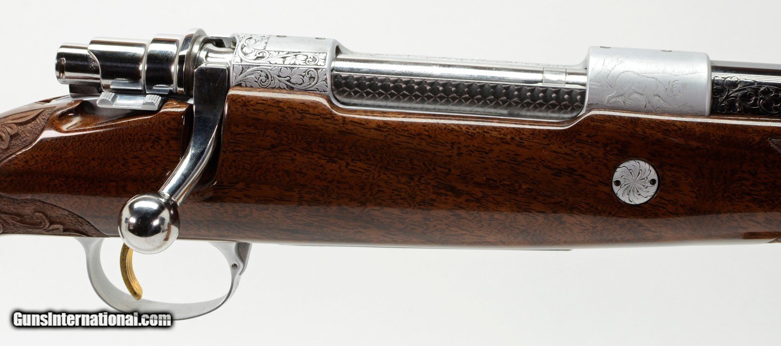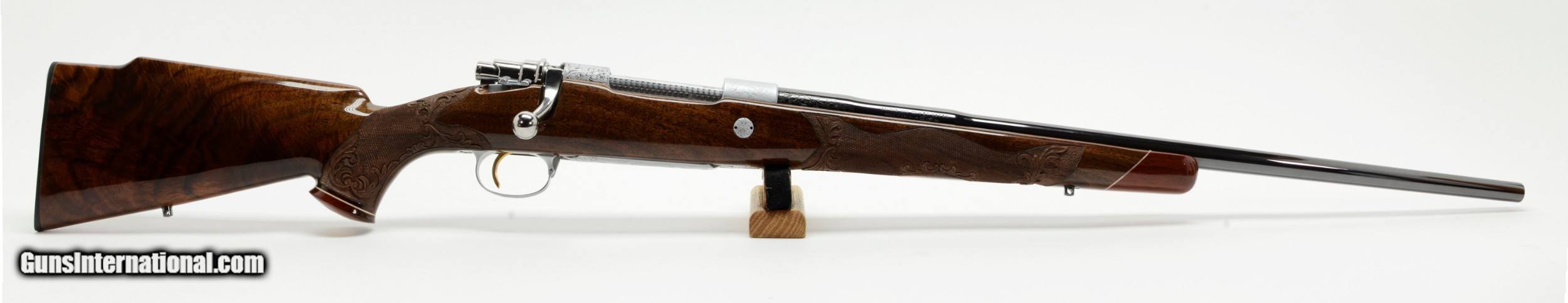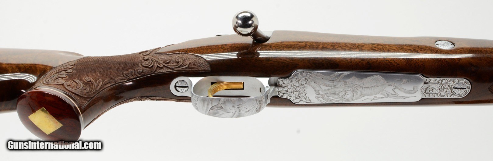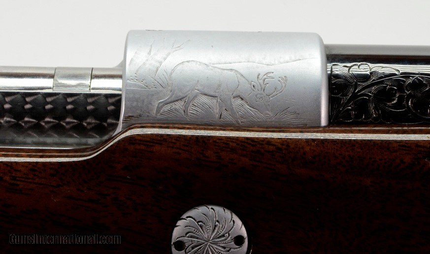 Description: Browning Belgium Olympian .243 Small Ring Mauser. Very Rare! Excellent Condition. DOM 1964 AVAILABLE FOR PURCHASE AT OUR ON-LINE STORE This Browning Belgium Olympian .243 Is In Excellent-Collector Condition. Features The Finest Figured Walnut Stock, Hand Checkered 32-Line Pattern. Hand Carved Scroll. Rosewood Grip Cap Fitted With 18-Carat Gold Medallion. Barrel Is Hand-Engraved Forward Of The Receiver And Magnificently Polished And Blued. Chrome Plated Receiver, Floor Plate And Trigger Guard In Satin Finish. Hand Engraved With Deer And Antelope On Receiver By LeGiers. Floor Plate Mountain Lion By R. Risack, Trigger Guard Mountain Goat Unsigned. Gold Plated Trigger. Jeweled Bolt.