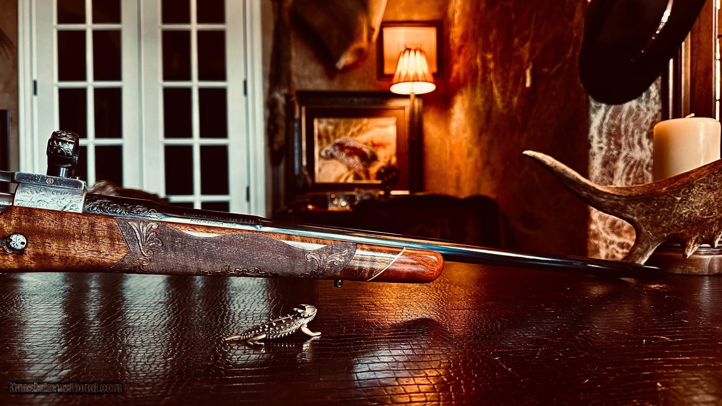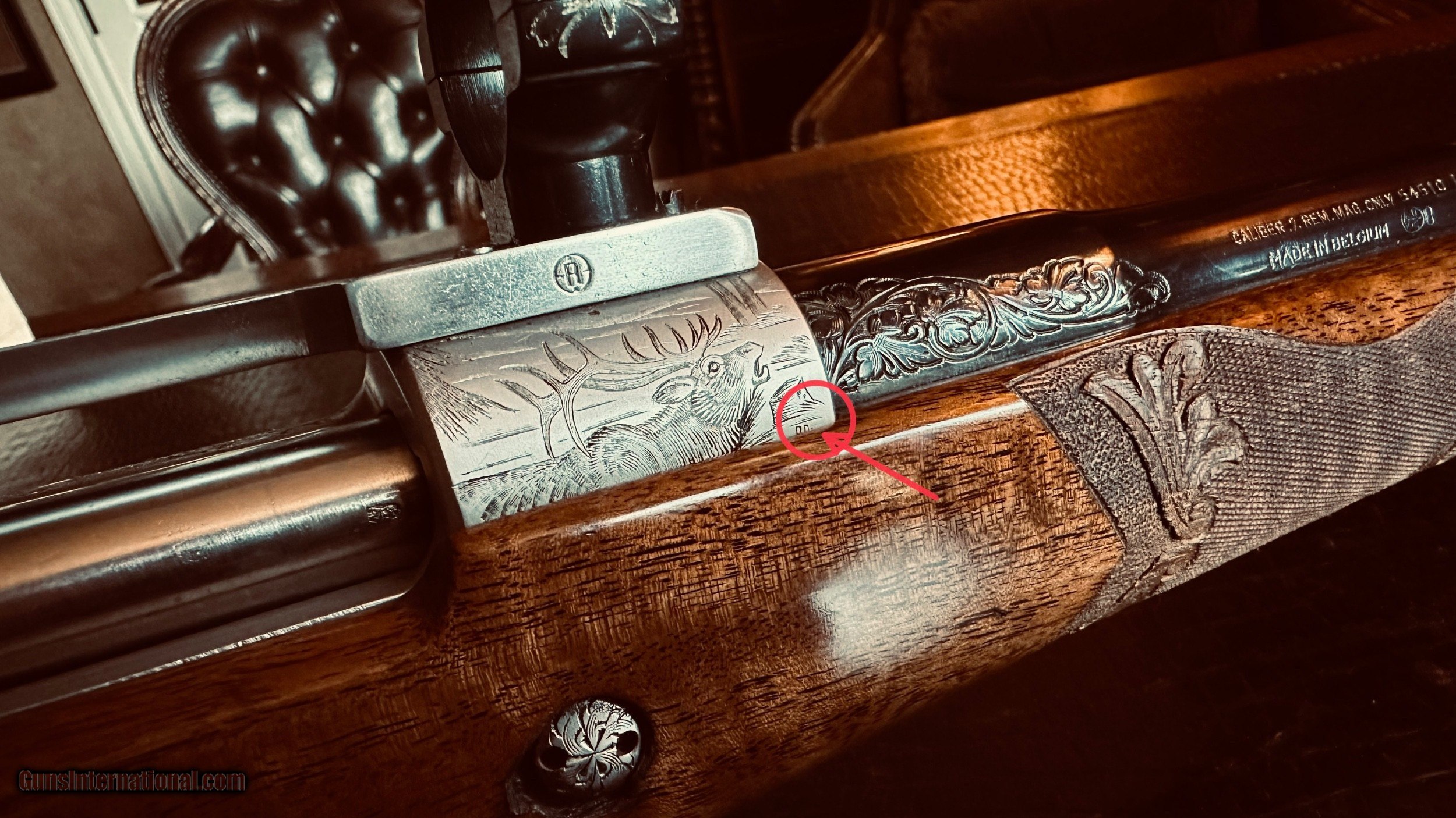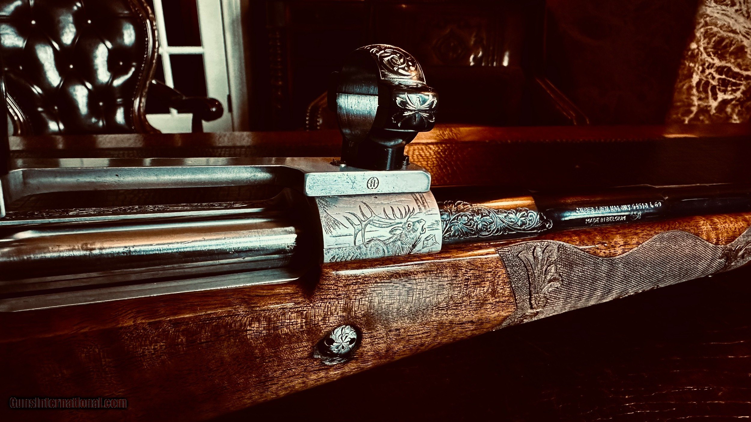Browning Olympian 7MM REM MAG - Angelo Bee and D. Dewil Engraved - Salt Era Rifle Visible Salt on Screws and Wood
