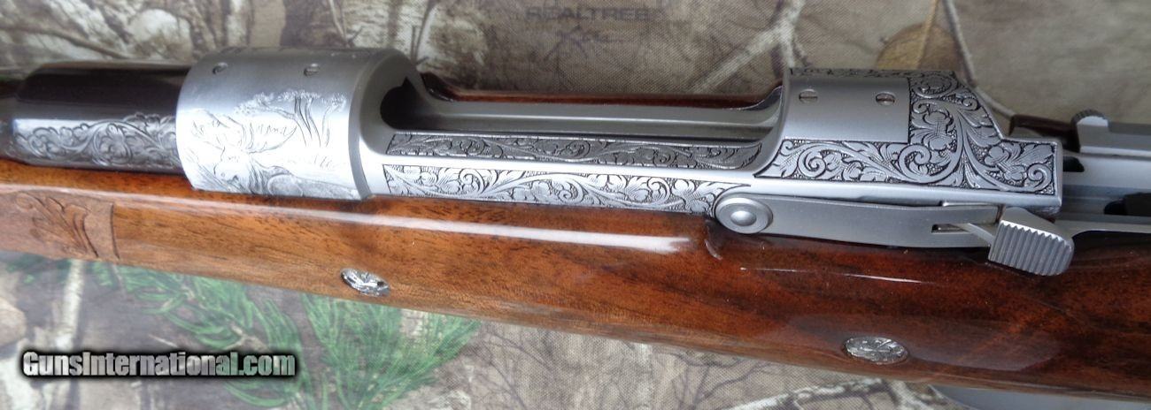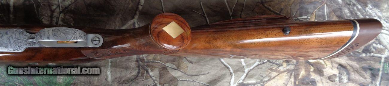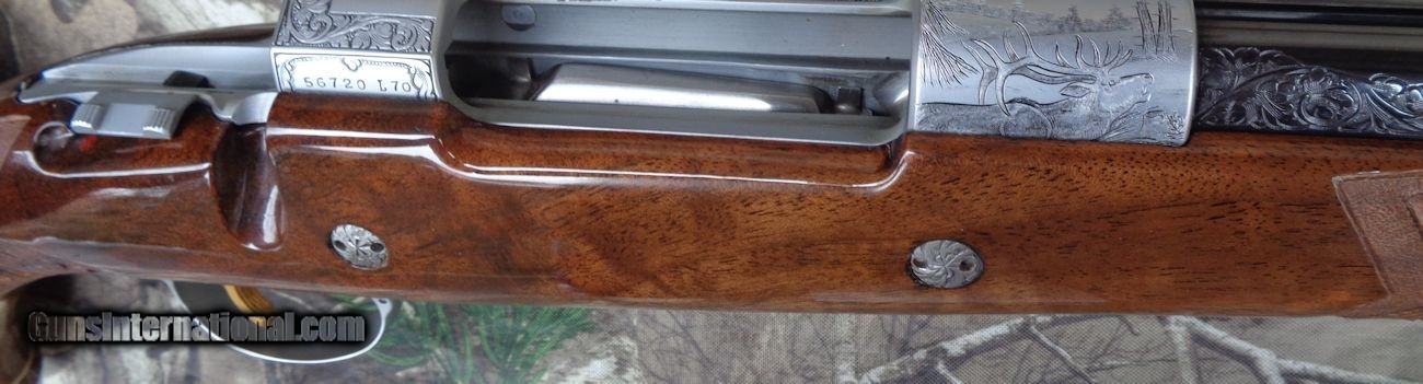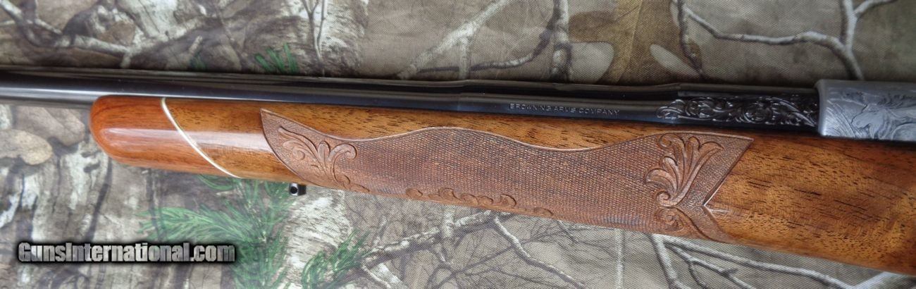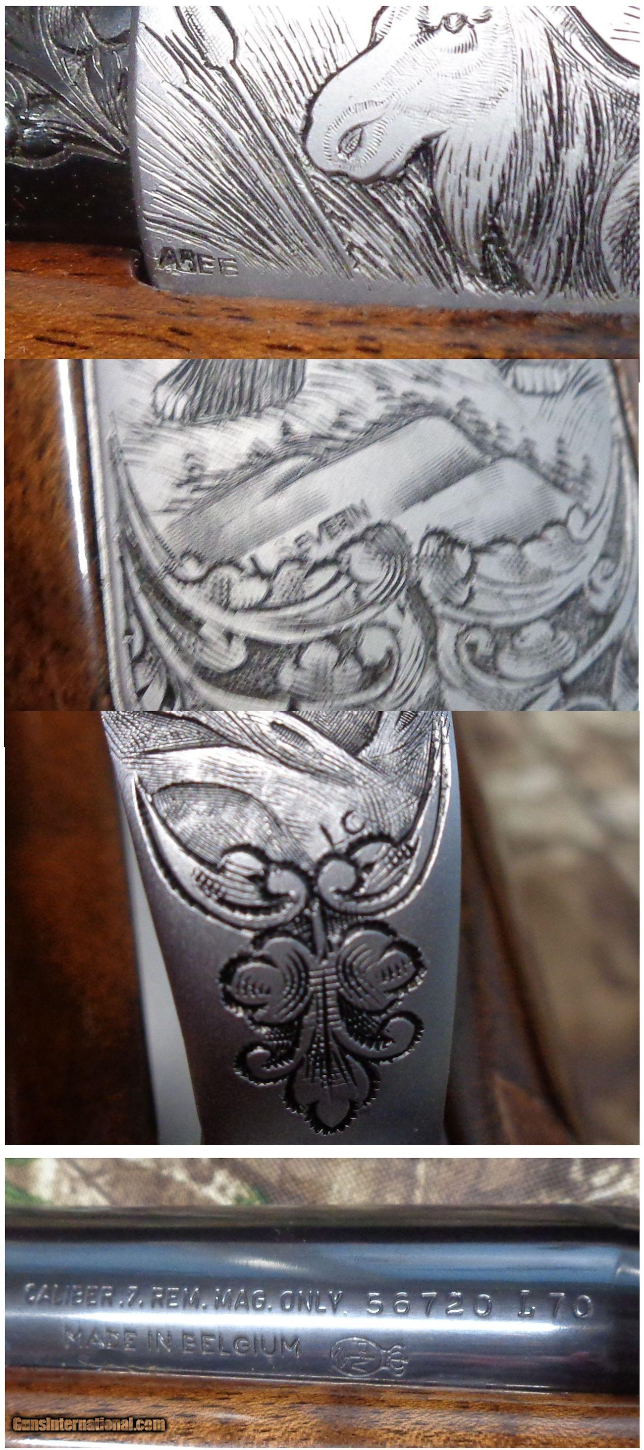 Description: Absolutely gorgeous 1970 (serial # 56720L70) Browning Olympian high grade, triple signed engraved (Angelo Bee, L. Severin, L. Cortis) Belgium bolt action rifle in 7mm Rem Mag with 24" sporter barrel remaining in "just about mint" condition with a bright shiny bore, appears unfired, and lived a 53 year salt free life. The Olympian is highly sought after and one of Browning's best creations. The wood is just amazing with tons of grain in it's Monte Carlo stock having a hand checkered wrist and forearm bordered by elaborate floral carving with stippled back. LOOK ! at the many pictures and then call or e-mail to add this beautiful Browning to your collection. Don't let this Browning classic get away. $90 S&H to most of the lower 48. Eight far west states at $100 S&H. Post office money orders preferred for payment, with checks taking 2 or 3 days to clear. No warranty stated or implied by the seller. Consignment gun-no return. Lay-a-way is available! SOLD Rifle Caliber: 7mm Remington Magnum Manufacturer: Browning Model: Olympian Serial Number: 56720L70 Barrel Length: 24 Metal Condition: excellent Wood Condition: excellent Bore Condition: excellent Action: bolt Stock: Monte Carlo pistol grip Manufacture Date: 1970 |
