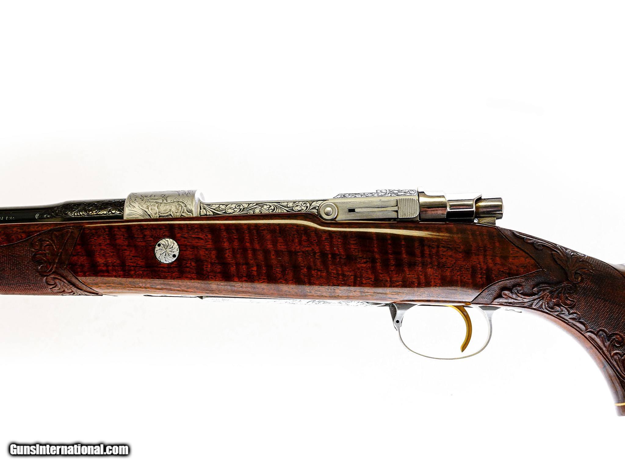 Description: Browning - Olympian, Made In Belgium, .270 Winchester Cal. 22" Barrel. Round barrel, magnificent engraving of Vandersmissen and Marechal, elk, and pronghorn surrounded by scroll. A "DR" on the trigger guard. Perfect checkering and carving, perfect wood finish, perfect metal finishes. Gun is brand new and was made in 1968. This is a rare collector grade gun and of the highest degree of Belgian workmanship seldom found in new condition. Inv: 66561 $14,500.00 SOLD |