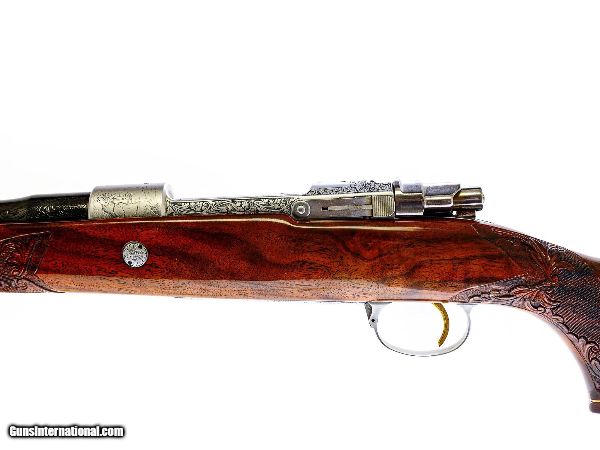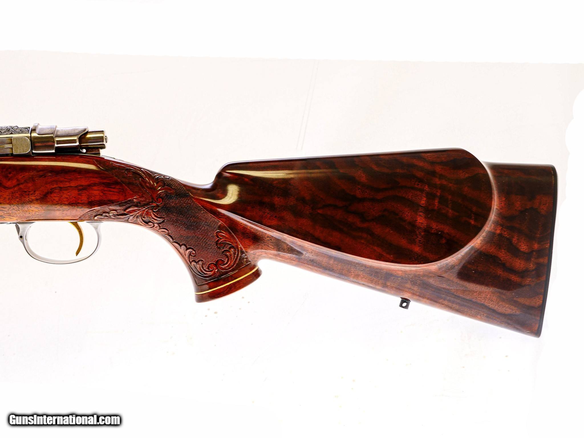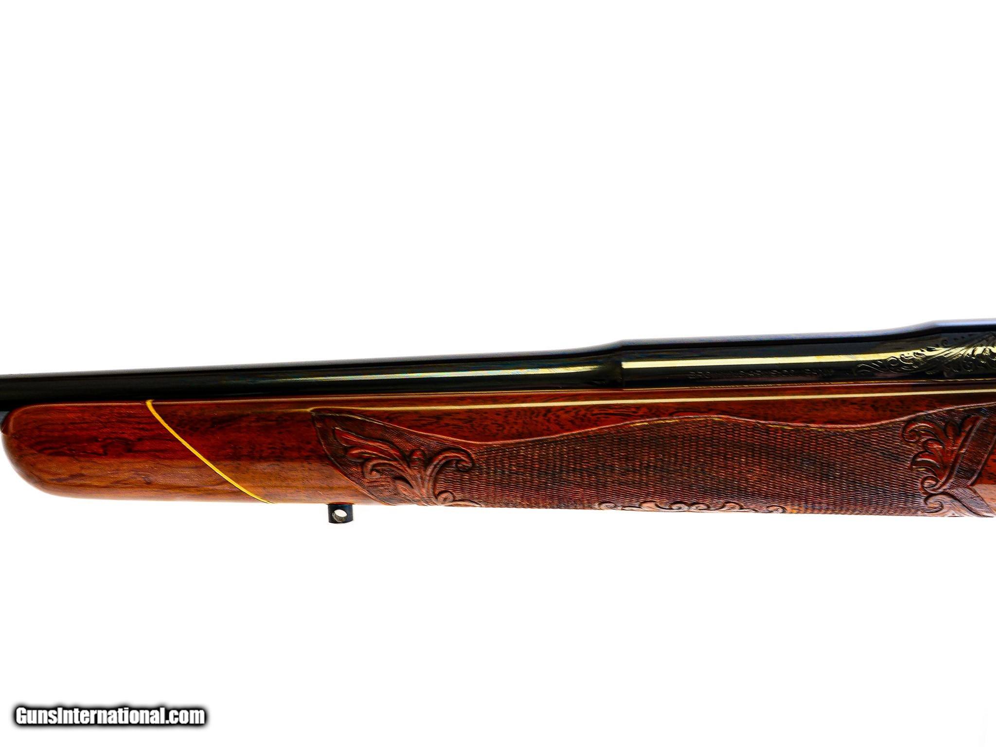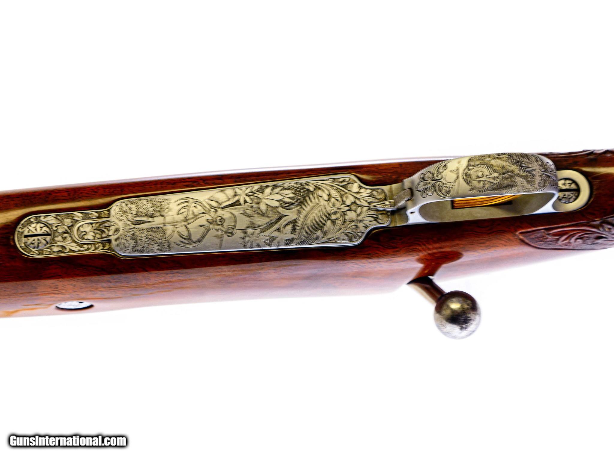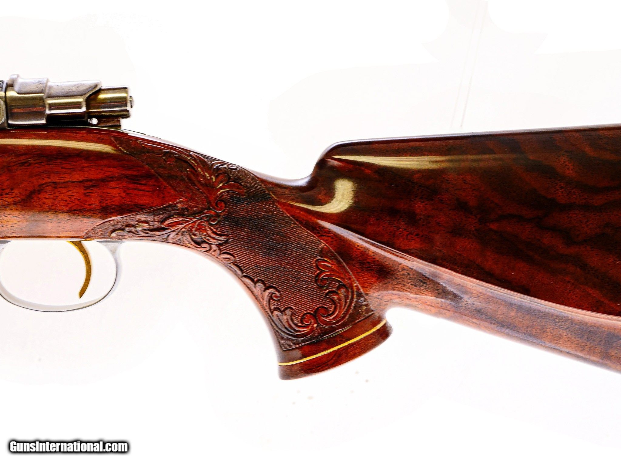 Description: Browning - Olympian, Made In Belgium, .30-06 Springfield. 22" Barrel. Made in 1961, 22" round barrel, butt plate, 100% perfect carving and checkering, as well as engraving of elk, white tail deer, surrounded by scroll. Engraved by L. Lambert and Legiers. Gun is brand new. 100% everything, rare and just an overall outstanding gun. Inv: 66557 $13,995.00 SOLD |