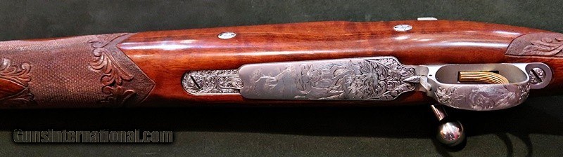 Description: BROWNING OLYMPIAN MAUSER ACTION 458 WIN MAG RIFLE, DEWILL & BAERTEN GAME SCENES, 24 1/2" BBL, EJECTORS, GOLD TRIGGER, HIGHLY FIGURED WALNUT, PISTOL GRIP, ROSEWOOD CAP & TIP, ORNATE CHECKERING, LOP 13 5/8 WITH SPACER, 8LBS 2OZ, HOODED RAMP FRONT, ADJ FOLDING REAR, METAL 99%, WOOD 98%, EXCELLENT BORE ~! SOLD Rifle Caliber: .458 Winchester Magnum Manufacturer: BROWNING Model: OLYMPIAN MAUSER ACTION Barrel Length: 24 1/2" BBL Ejectors: YES Metal Condition: 98% BLUE Wood Condition: 98% WOOD Bore Condition: EXCELLENT BORE ! Triggers: GOLD TRIGGER Stock: HIGHLY FIGURED WALNUT, PISTOL GRIP, ROSEWOOD CAP & TIP, ORNATE CHECKERING LOP: LOP 13 5/8 WITH SPACER Weight: 8LBS 2OZ Sights: HOODED RAMP FRONT, ADJ FOLDING REAR, LEUPOLD COMPACT 3 X 9 SCOPE Manufacture Date: 1967, NO SALT !!!!! Engraving: DEWILL & BACRTEN GAME SCENES Item Location: SAFARI OUTFITTERS LTD. 2517 ROUTE 44 SALT POINT, NY 12578 |