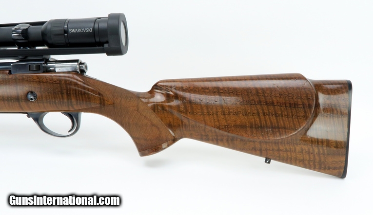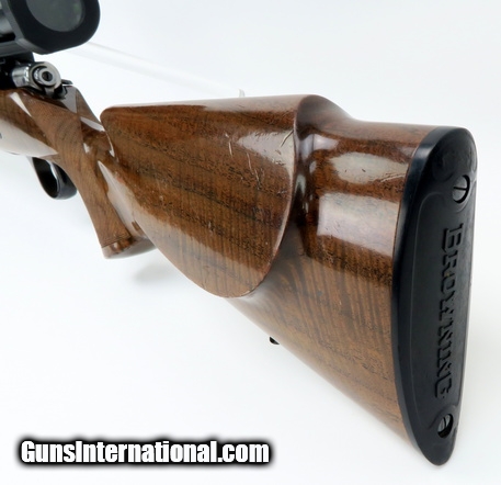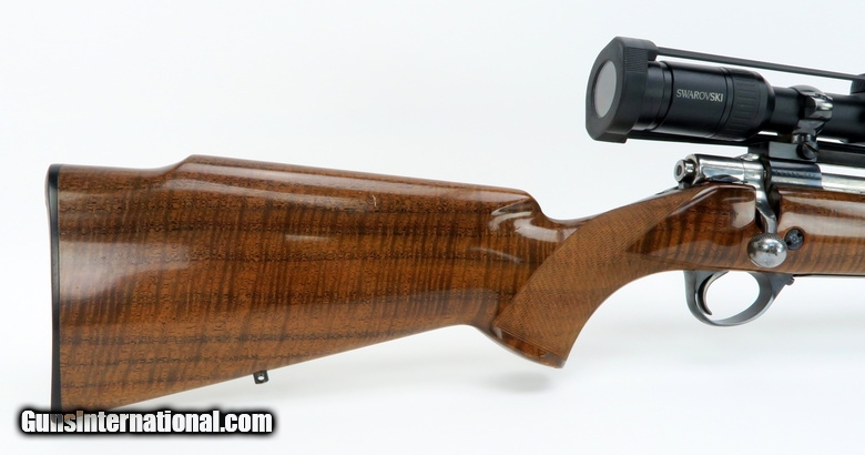 Description: Browning Safari .243 Win caliber rifle. Belgian made Safari on Sako action, made in 1972. Has exceptional figured walnut. The barrel has been Mag-Na-Ported and a Swarovski Z3 3-10 scope is mounted. A great rig, in excellent condition.