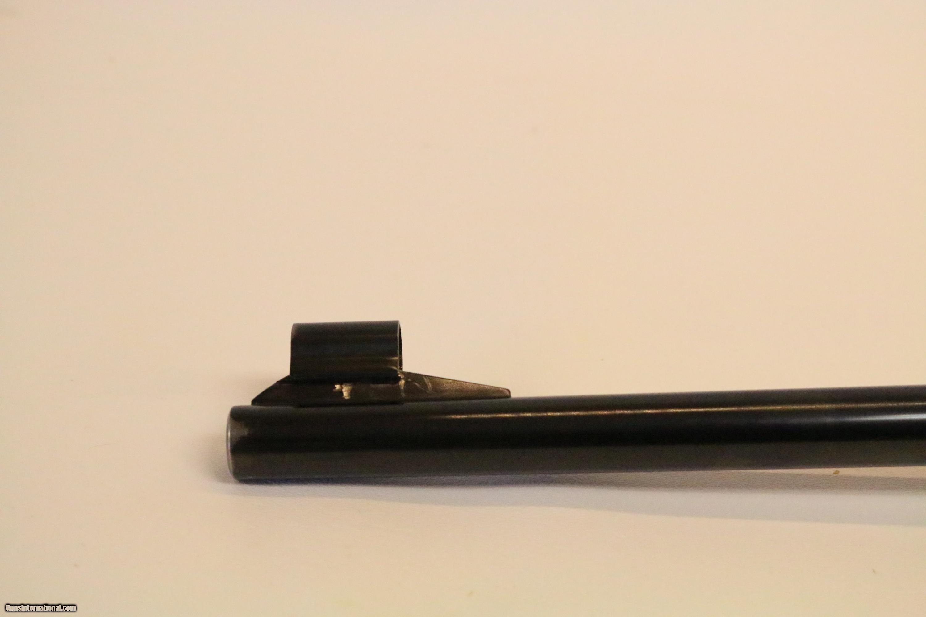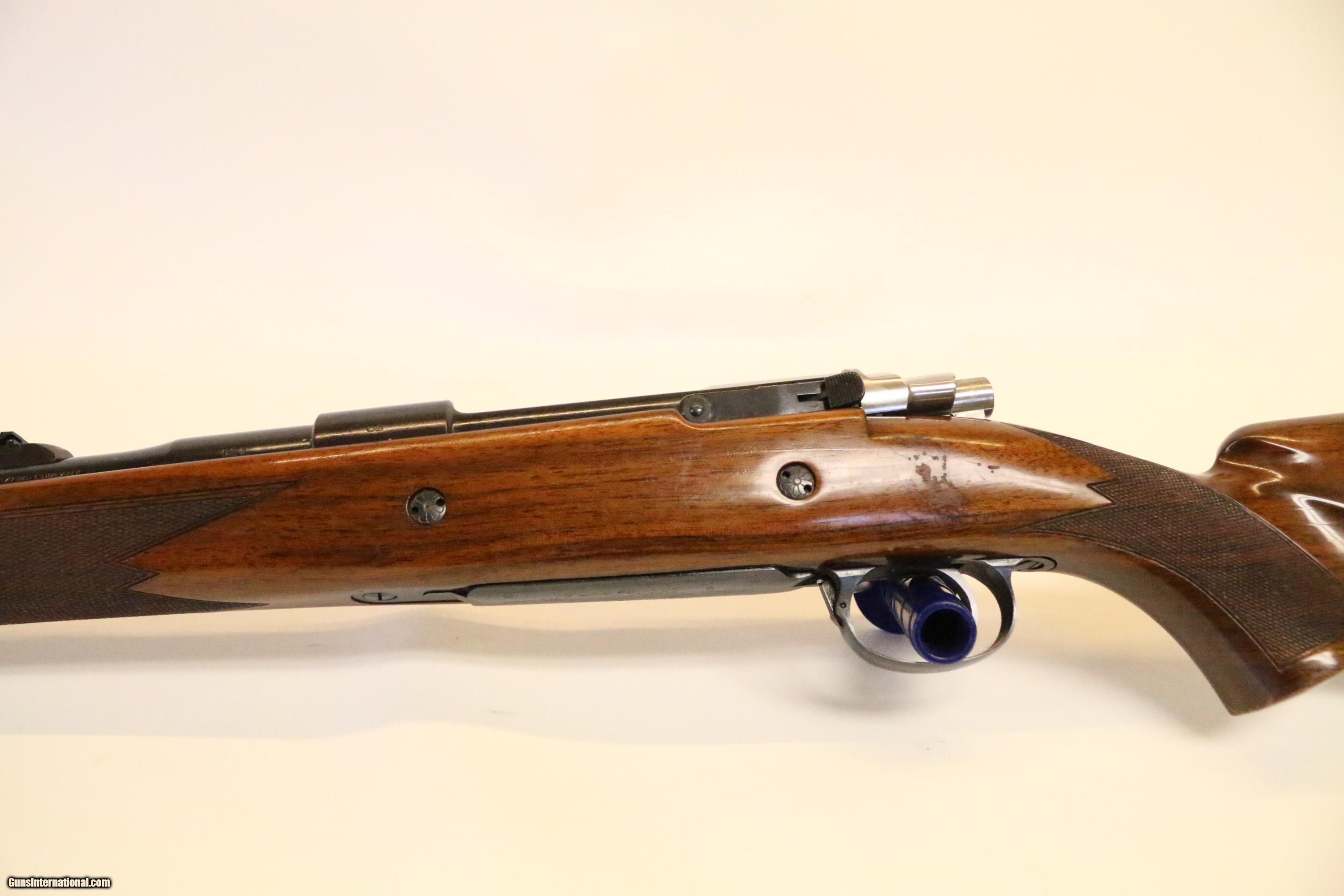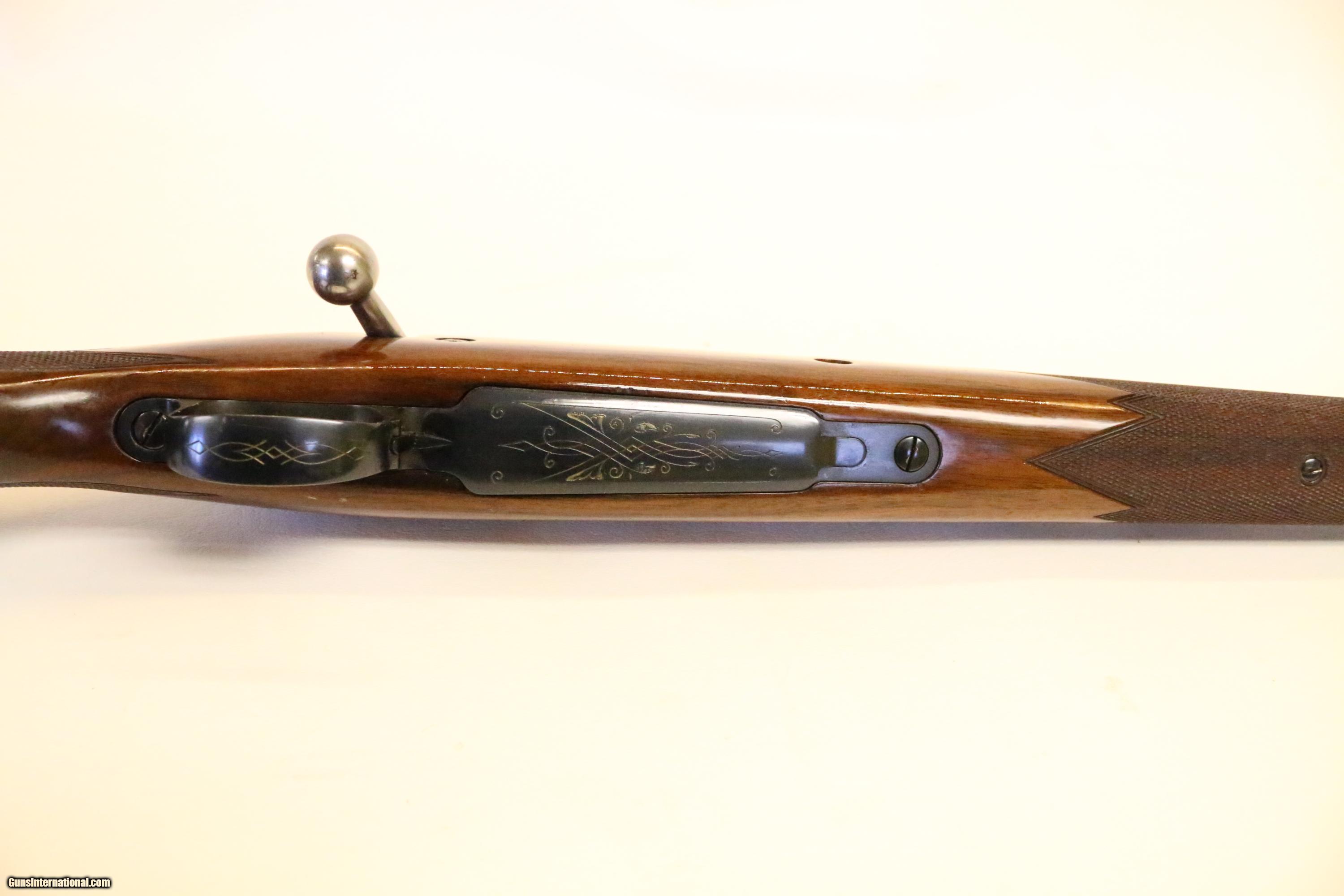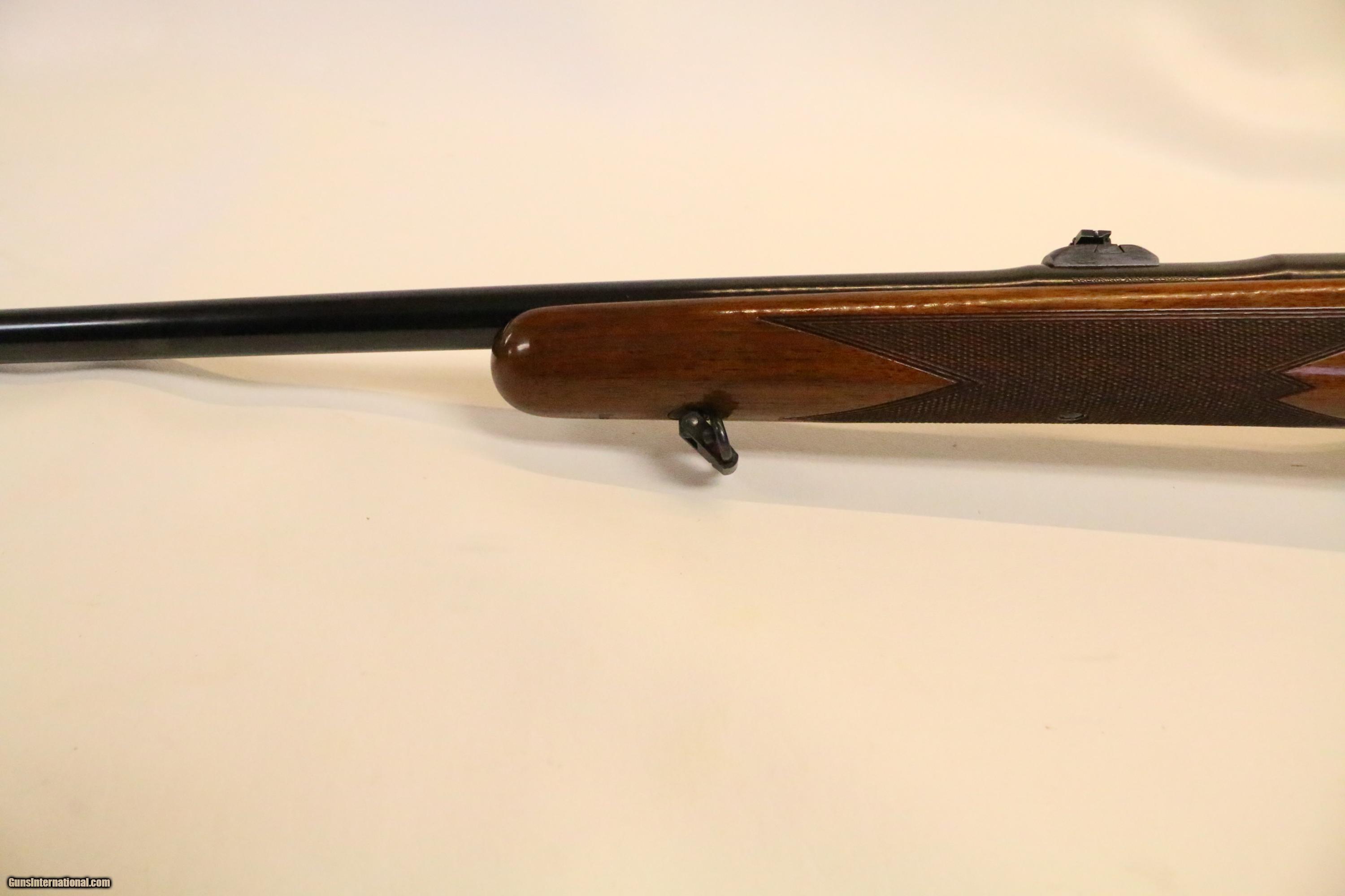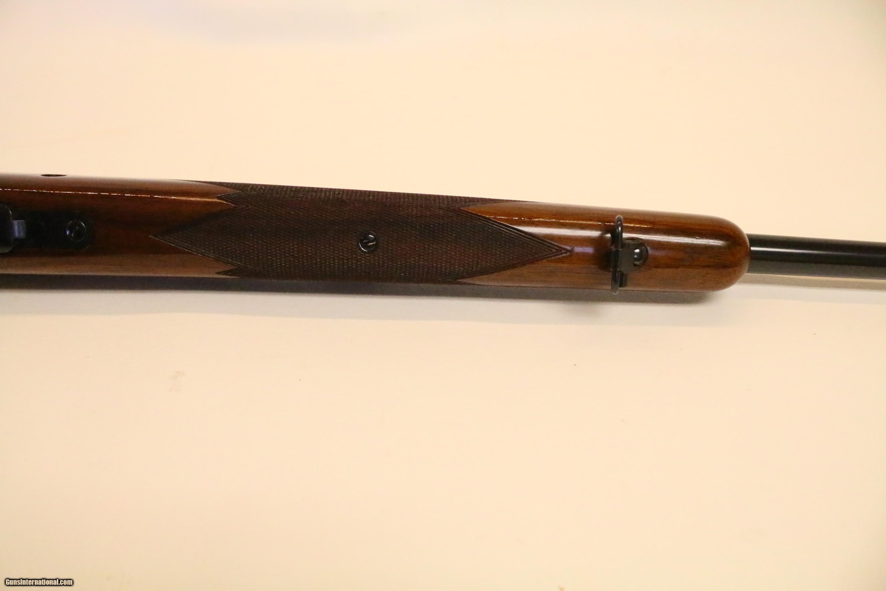 Description: Salt Era gun that shows minimal damage and remains in good condition and very functional. Pristine bore on the 24" barrel chambered in .375 H&H magnum Cal. At some point it had a scope, it retains its original rear and front sights with the front ramp hood., original blue, original recoil pad and sling swivels. The wood finish is showing some grain checking which is to be expected at 47 years of age. There is one blemish left side that is pictured. this is a gun that was hunted with but taken care of Not perfect but a very nice affordable Browning safari in the scare .375 Cal. SOLD |