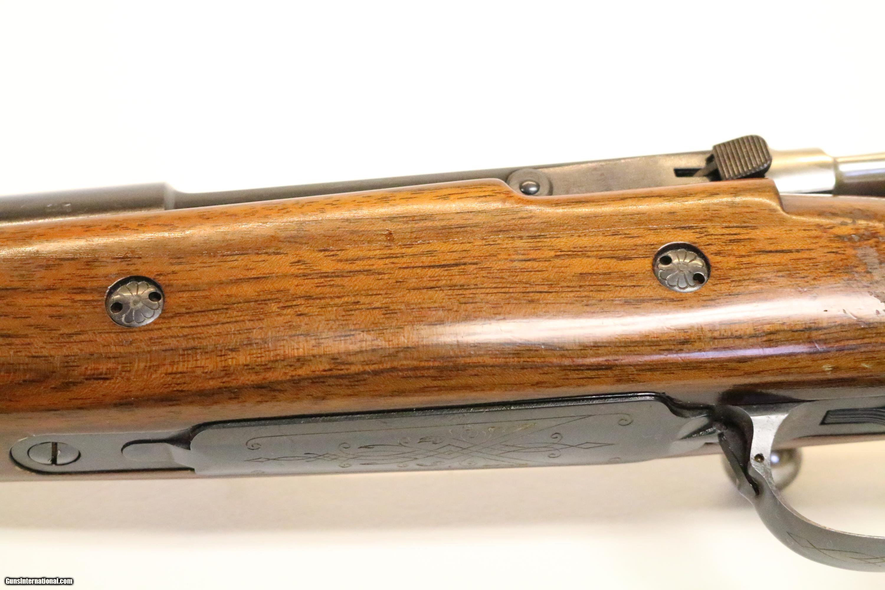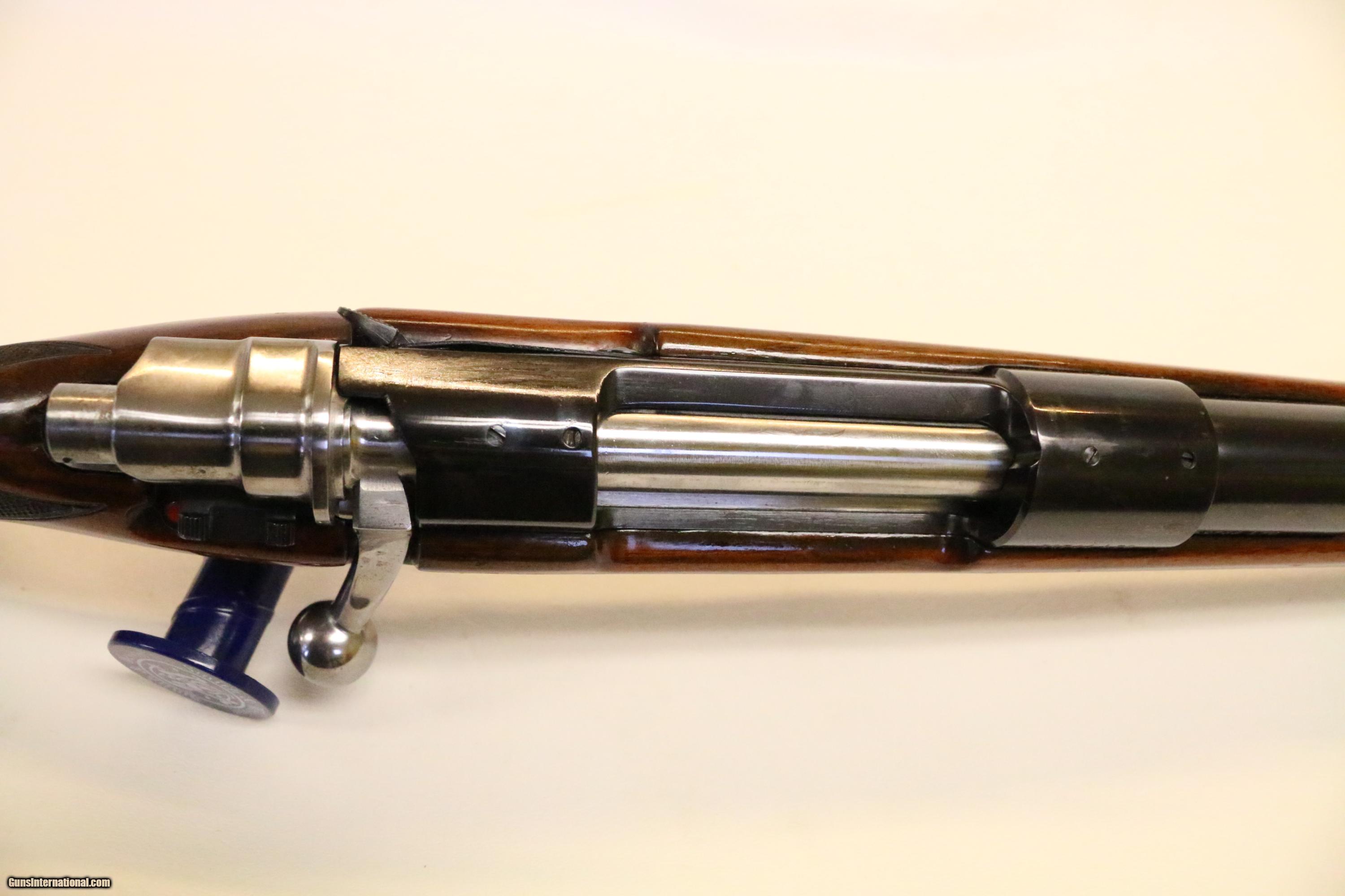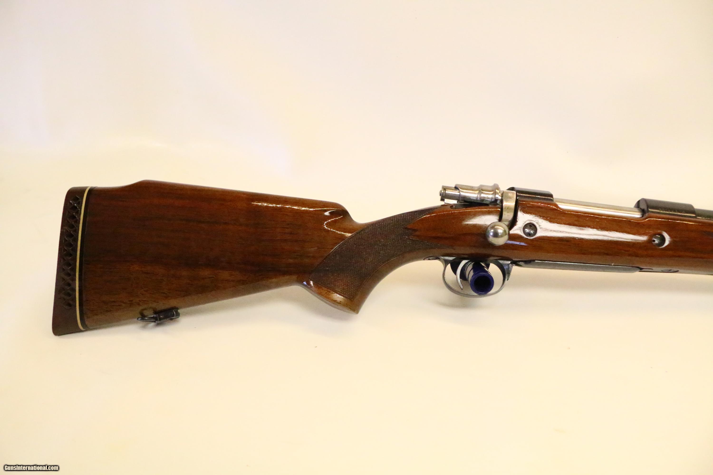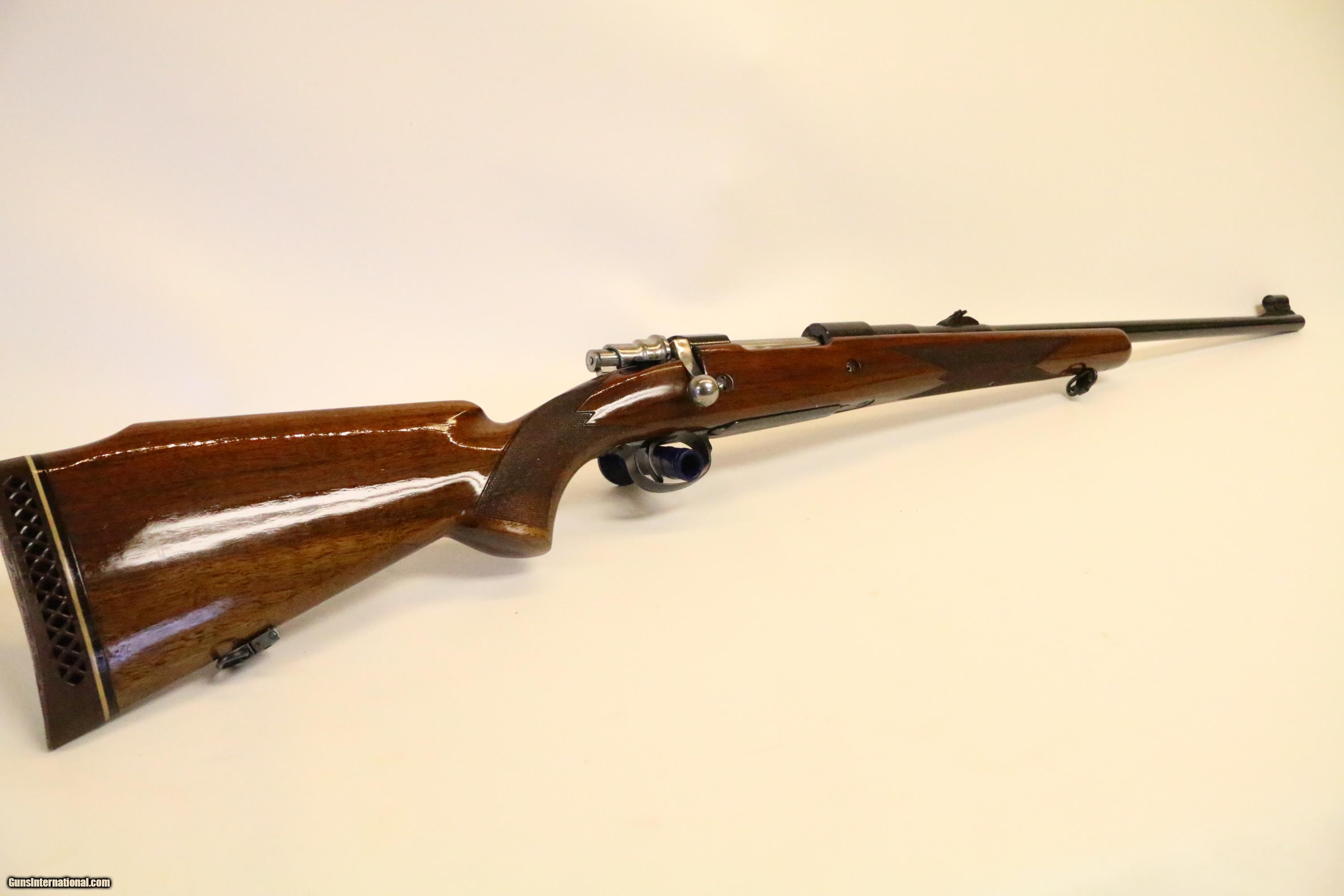 Description: Salt Era gun that shows minimal damage and remains in good condition and very functional. Pristine bore on the 24" barrel chambered in .375 H&H magnum Cal. At some point it had a scope, it retains its original rear and front sights with the front ramp hood., original blue, original recoil pad and sling swivels. The wood finish is showing some grain checking which is to be expected at 47 years of age. There is one blemish left side that is pictured. this is a gun that was hunted with but taken care of Not perfect but a very nice affordable Browning safari in the scare .375 Cal. SOLD |