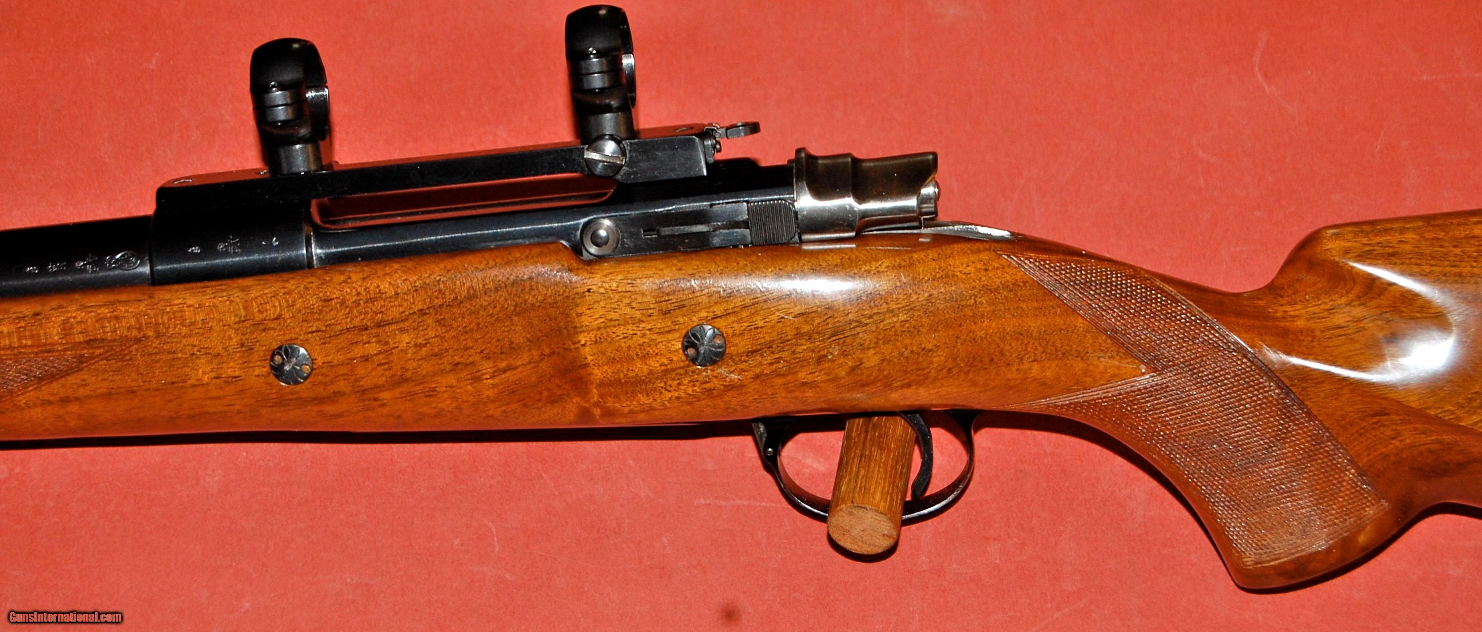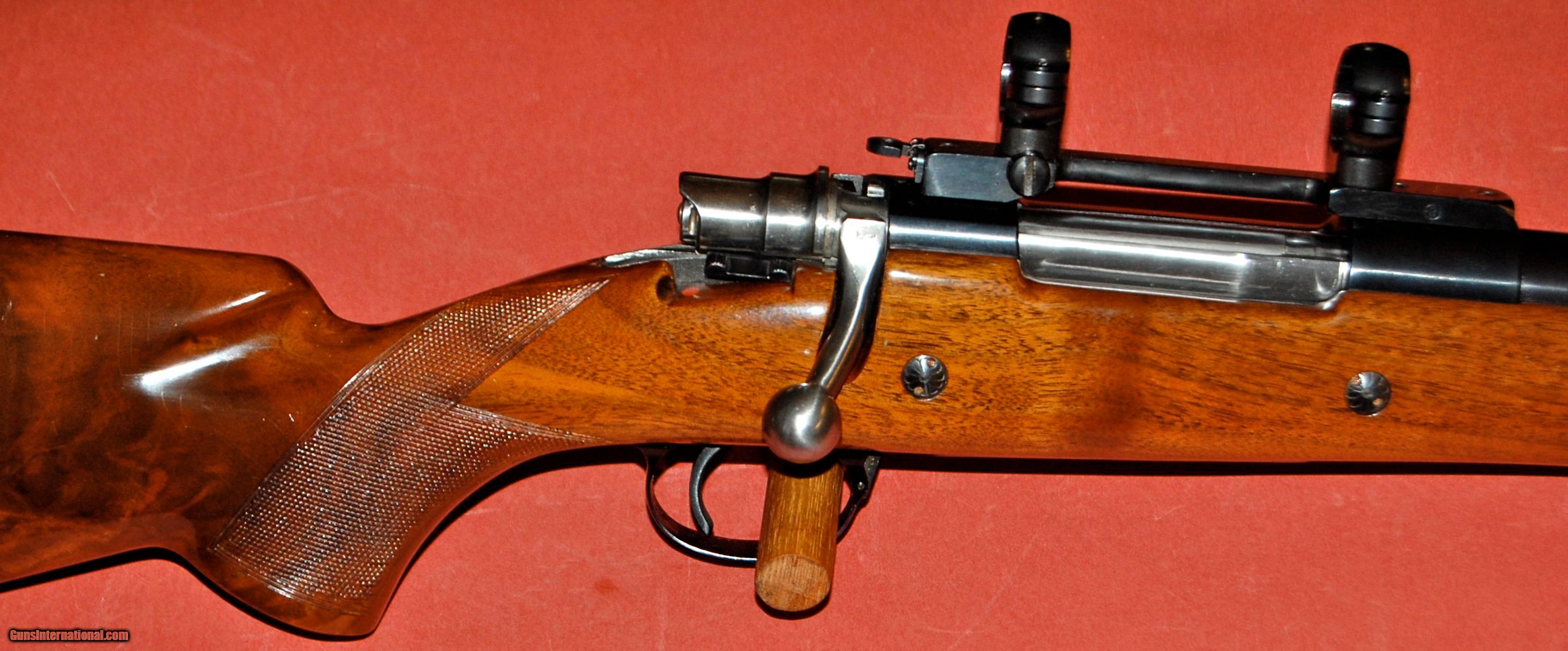 Description: Belgian Browning Safari grade in 300 Win mag.Built in 1965,this rifle has the control feed long extractor.Other features include double recoil lugs,factory installed Browning recoil pad,factory front and rear sights.The rifle is in mint condition retaining 100% of the original blue and wood finish.It comes with Redfield one piece base and 1" rings installed.A very high condition magnum Safari grade for the shooter or collector.C&R eligible. SOLD Curio/Relic: Yes Manufacturer: Browning (FN) Model: Safari Serial Number: 5L33484 Caliber Info: 300 Winchester magnum Metal Condition: mint Wood Condition: mint Bore Condition: mint Action: bolt Manufacture Date: 1965 |