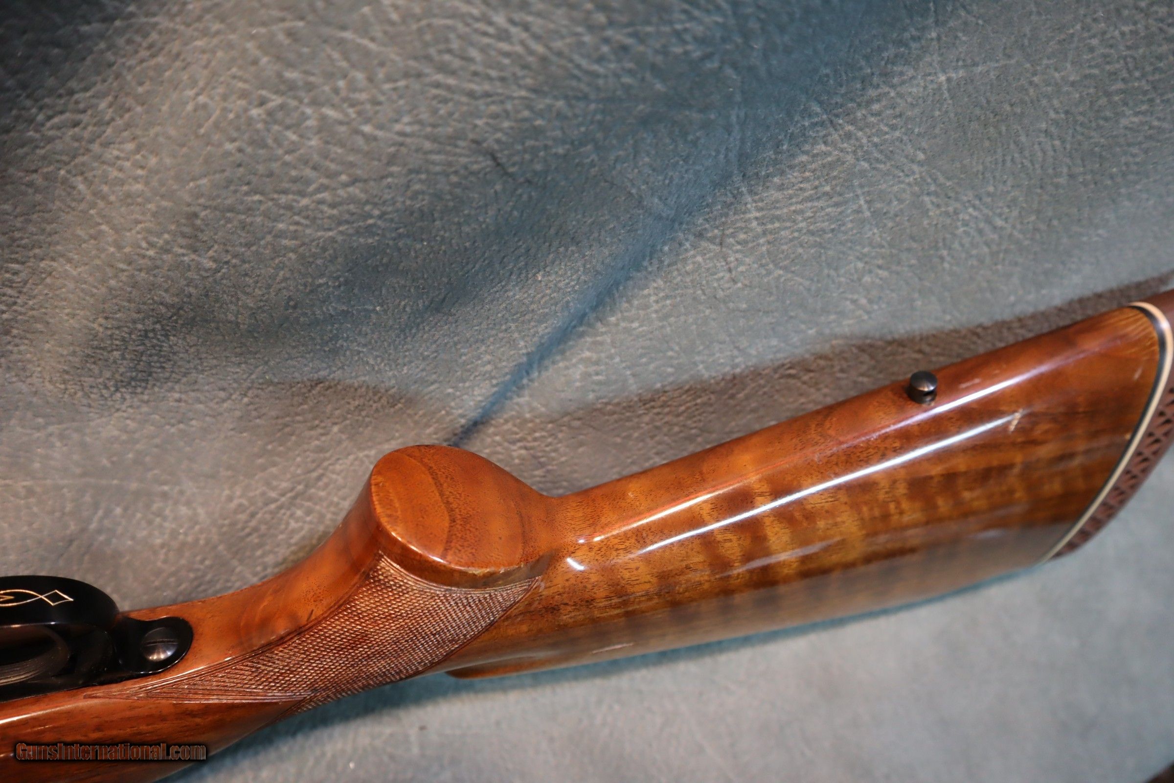 Description: Belgium Browning Safari Grade 375H+H 24" barrel with sights,pretty wood with figure,long extractor,made in 1965,hardly used,98% bluing. GUN COLLECTIONS WANTED FOR CASH! We buy, sell, consign and trade new and used firearms. This is our 48th year in business. We offer 90 day layaways with 20% down. No return on layaways. Firearms will need to be transferred through a FFL dealer. Prices reflect a cash discount. There will be 3% added to credit card sales. We trade for gold and silver. THANK YOU! SOLD |
